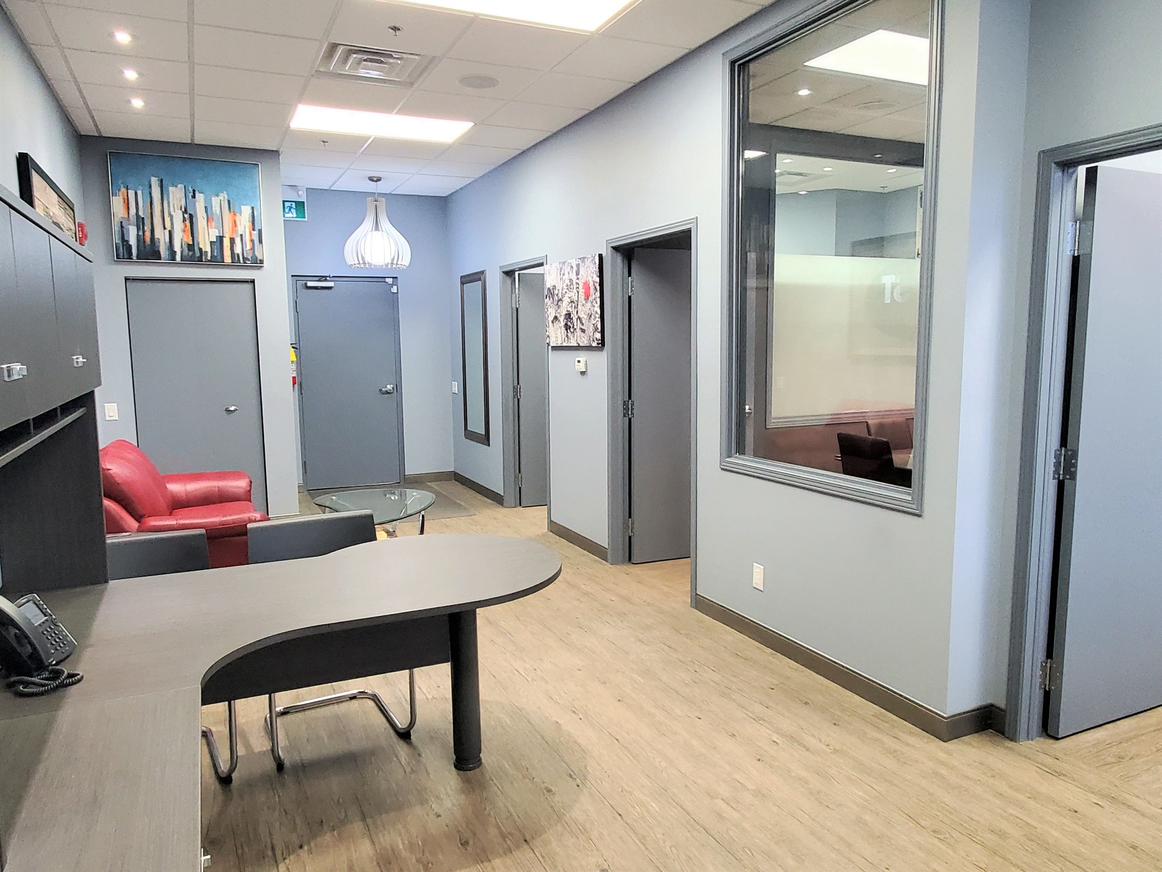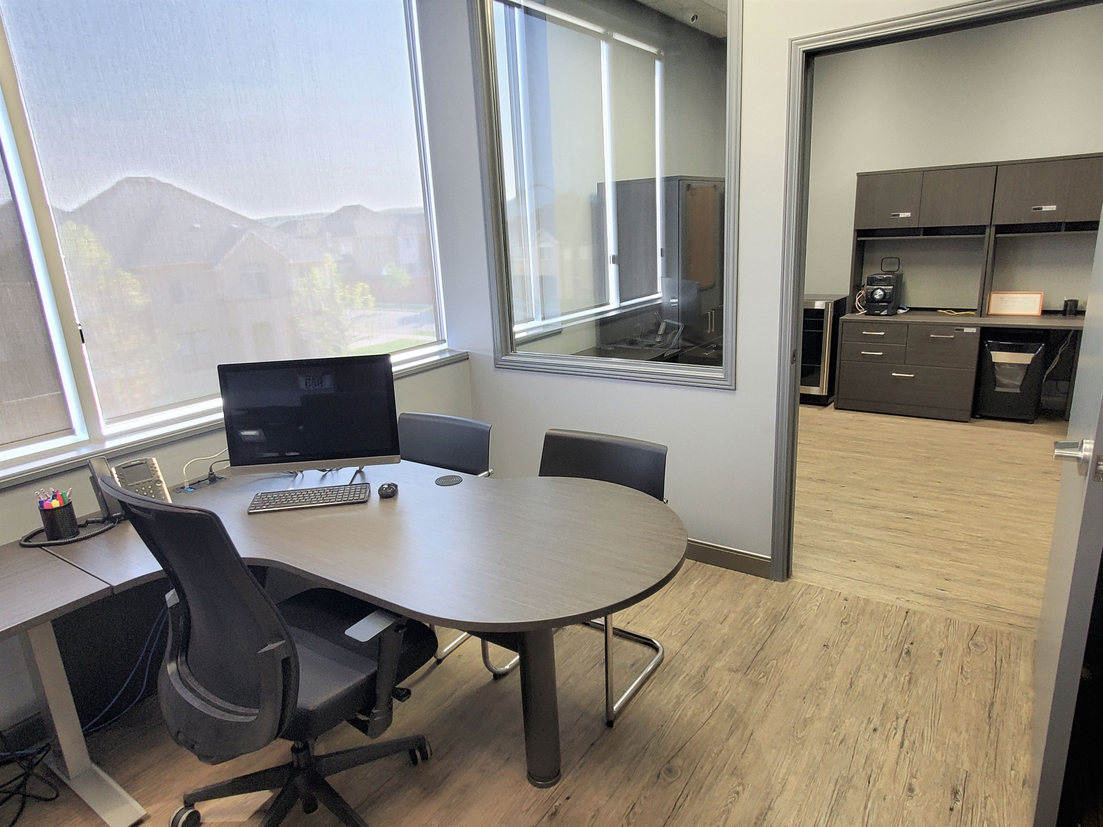 • Bright, modern space with sound-insulated private offices.