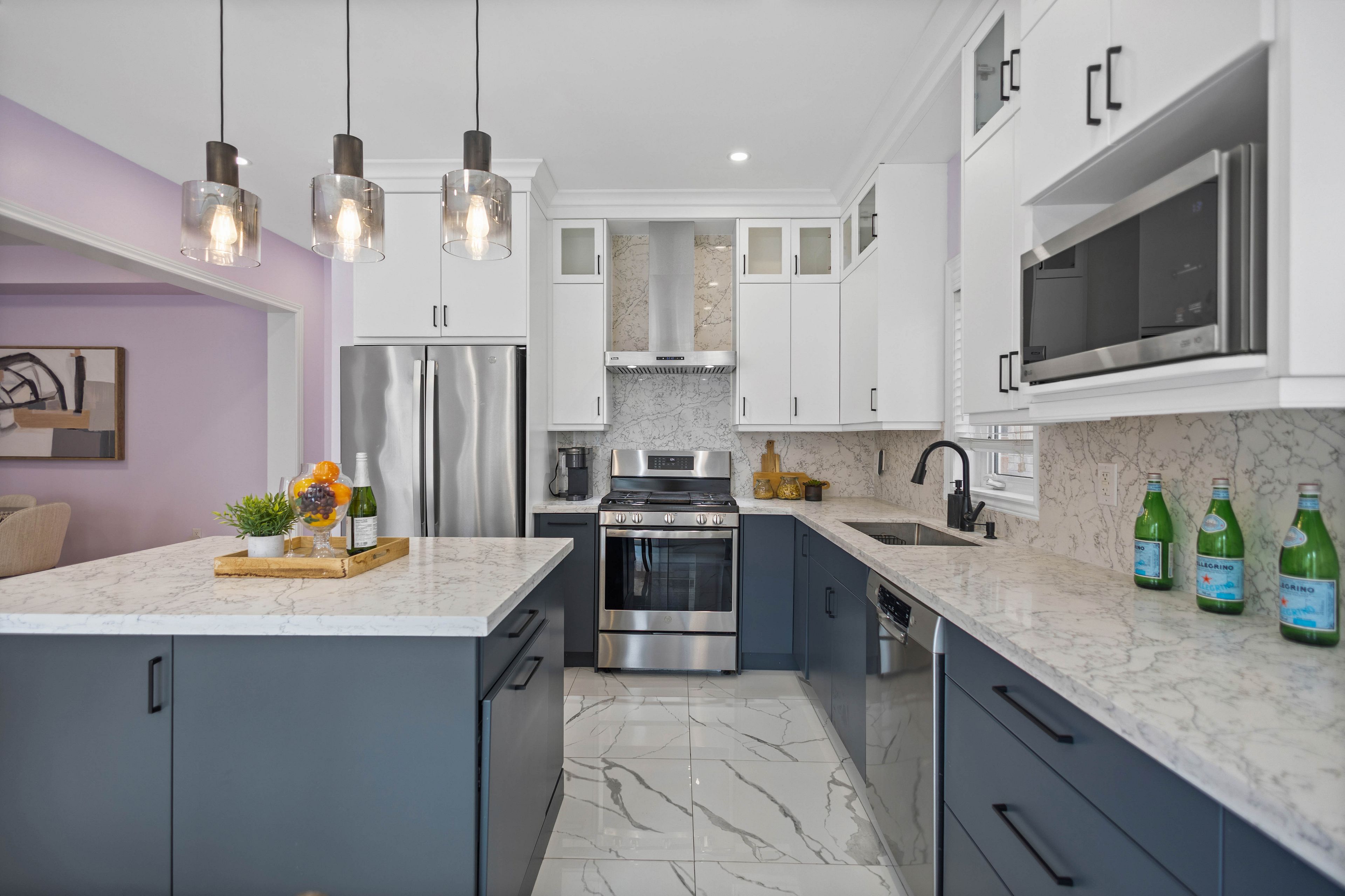 • Updated gourmet kitchen with quartz countertops and stainless steel appliances.