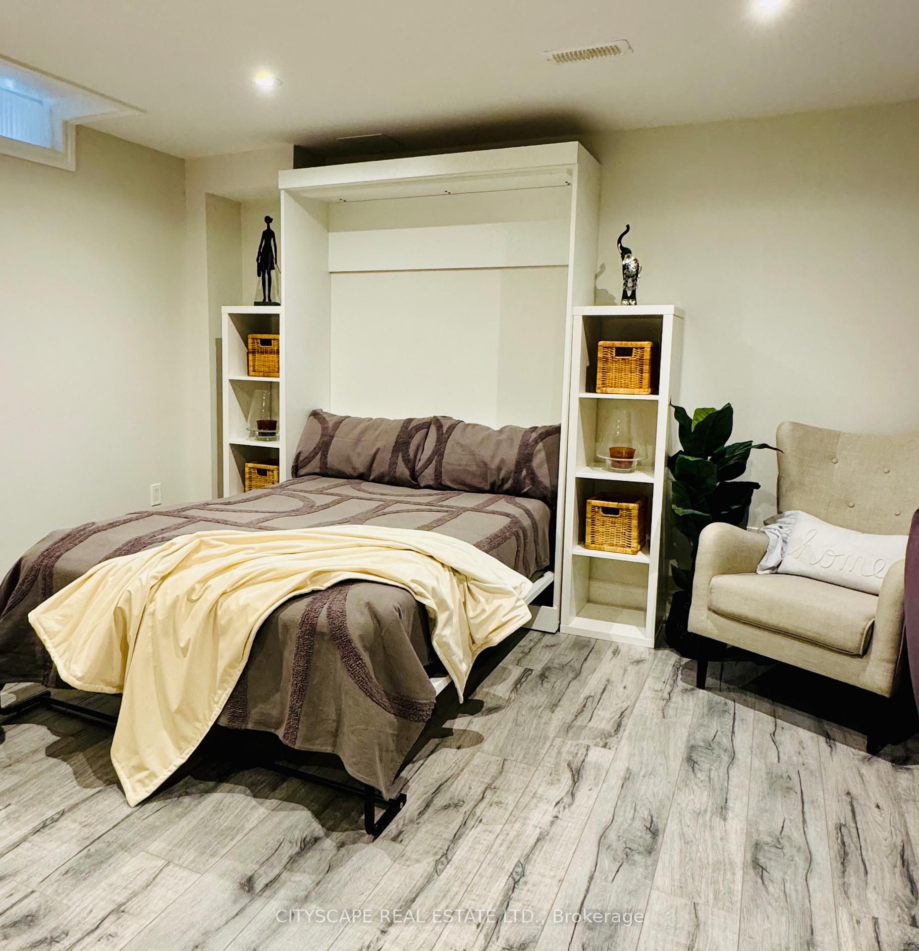• Finished basement featuring a wet bar and Murphy bed for guests.