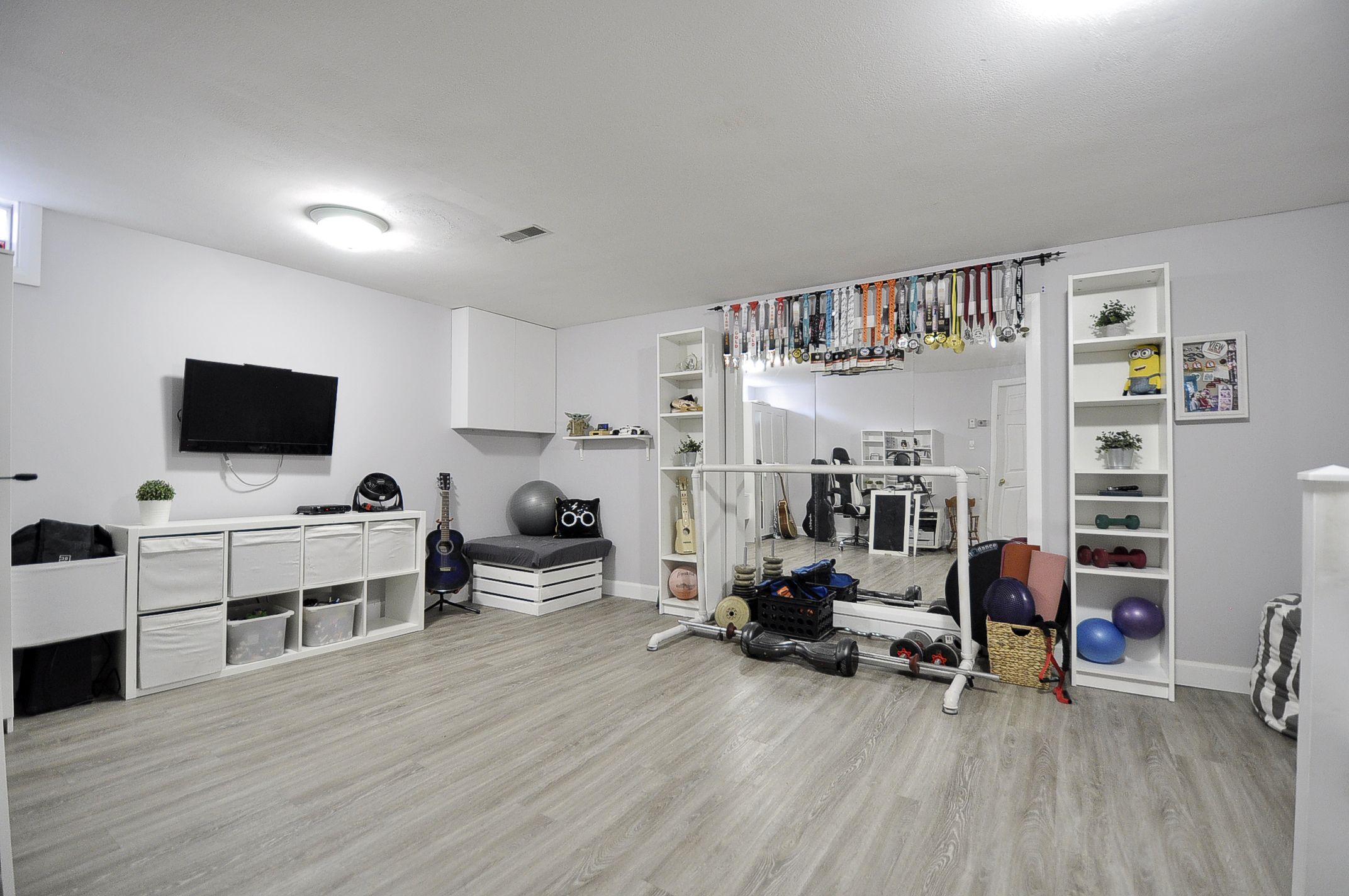• Cozy finished rec room with gas fireplace for relaxation.