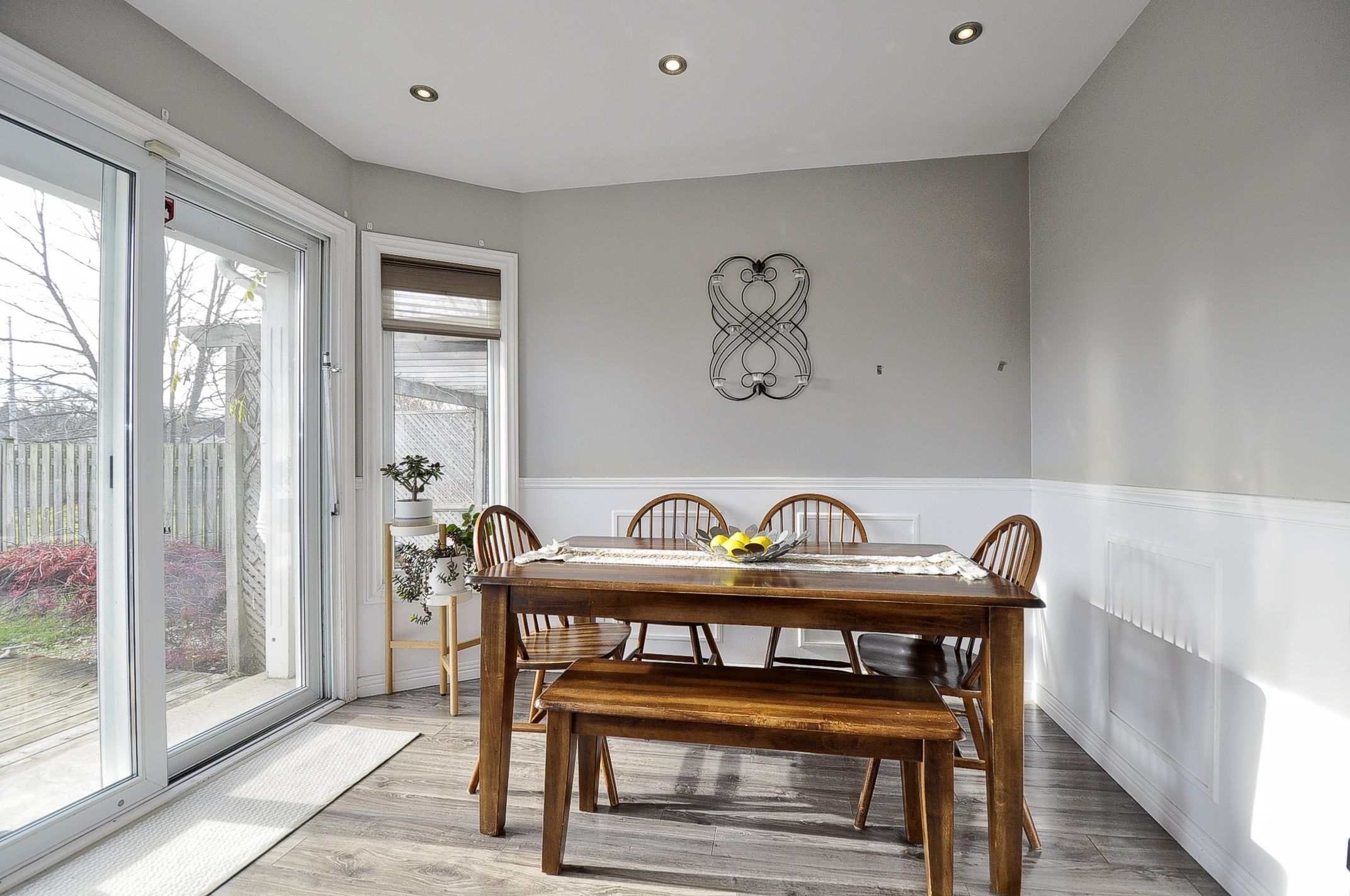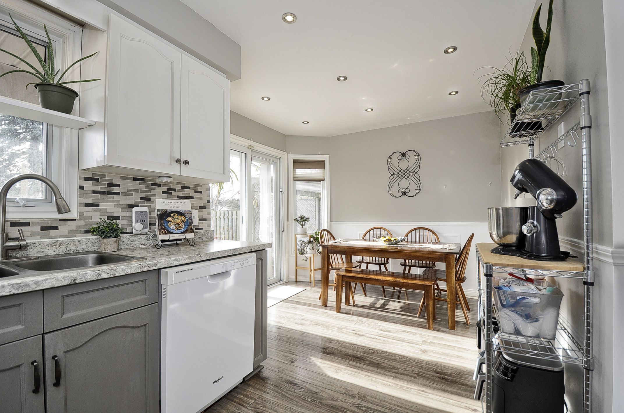 Welcome to this bright and spacious 3-bedroom, 2-bathroom semi-detached home nestled in one of kitchener's sought-after neighbourhoods! From the moment you step inside, you'll appreciate the warm, inviting atmosphere and thoughtful layout perfect for family living. The main floor features durable laminate flooring throughout, leading you to a generous eat-in kitchen complete with modern look 2 tone cabinets, ample counter space, complimenting backsplash, a handy pantry, stylish pot lighting, and sliding patio doors that open onto a large deck-ideal for family meals, summer bbqs, and easy indoor-outdoor entertaining. A convenient 2-piece bathroom and side entrance complete this level. Upstairs, you'll find three comfortable bedrooms, including a spacious primary suite with plenty of closet space for all your storage needs. The finished rec room offers a cozy retreat with its gas fireplace, making it a perfect spot to relax, watch movies, or unwind after a long day. Step outside to discover a beautifully landscaped, fully fenced backyard-the perfect haven for kids, pets, gardening, or simply enjoying peaceful moments in the fresh air. Move-in ready and located in a fantastic community, this home is the complete package. Don't miss your chance to make it yours!