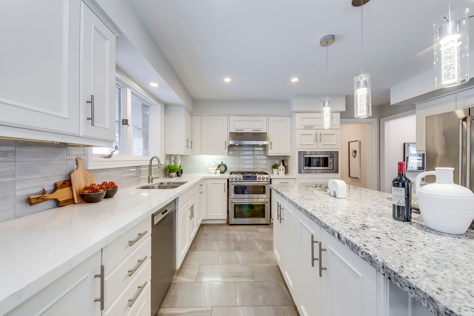 • Open-concept kitchen with stainless steel appliances and abundant natural light.