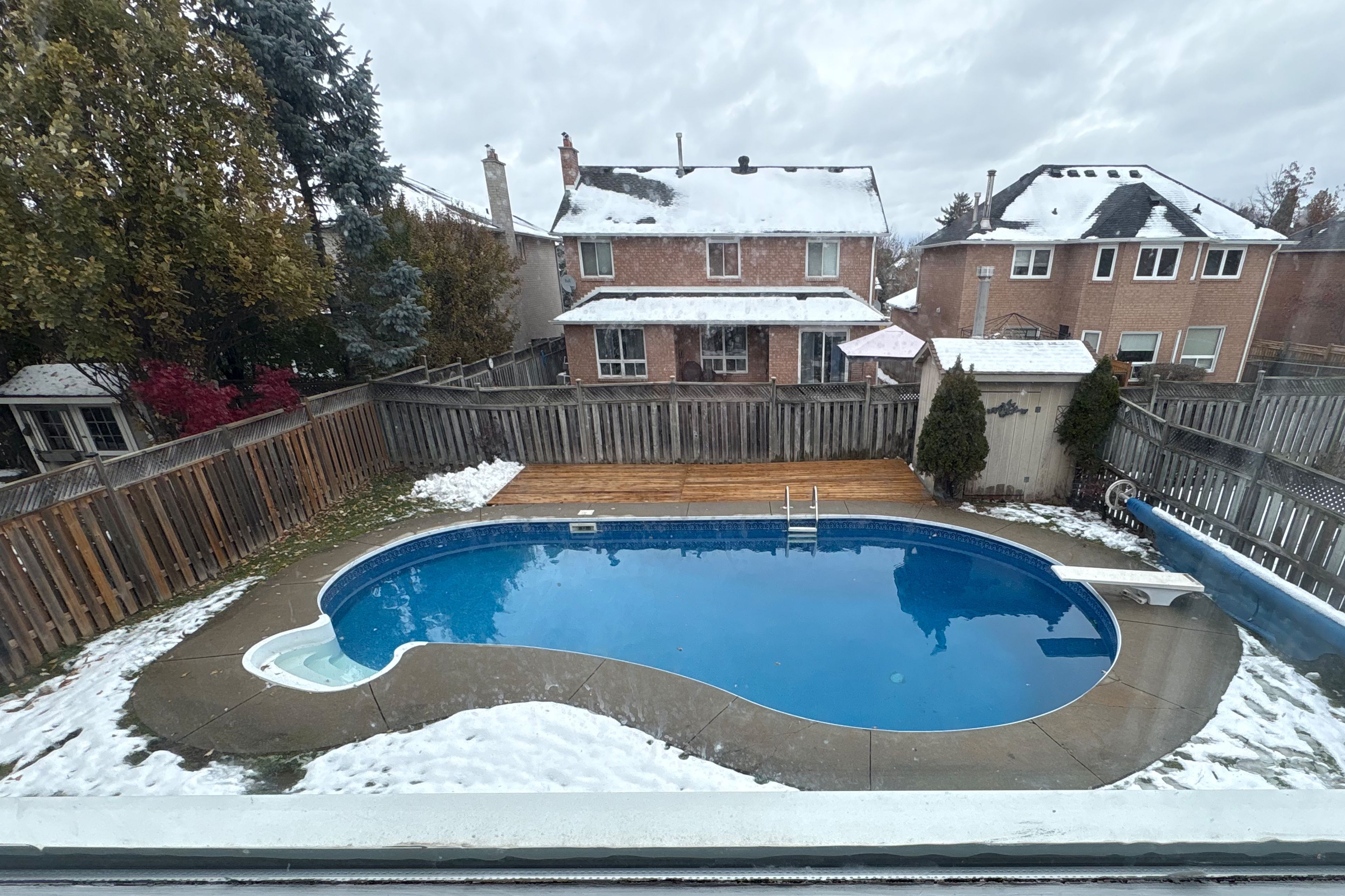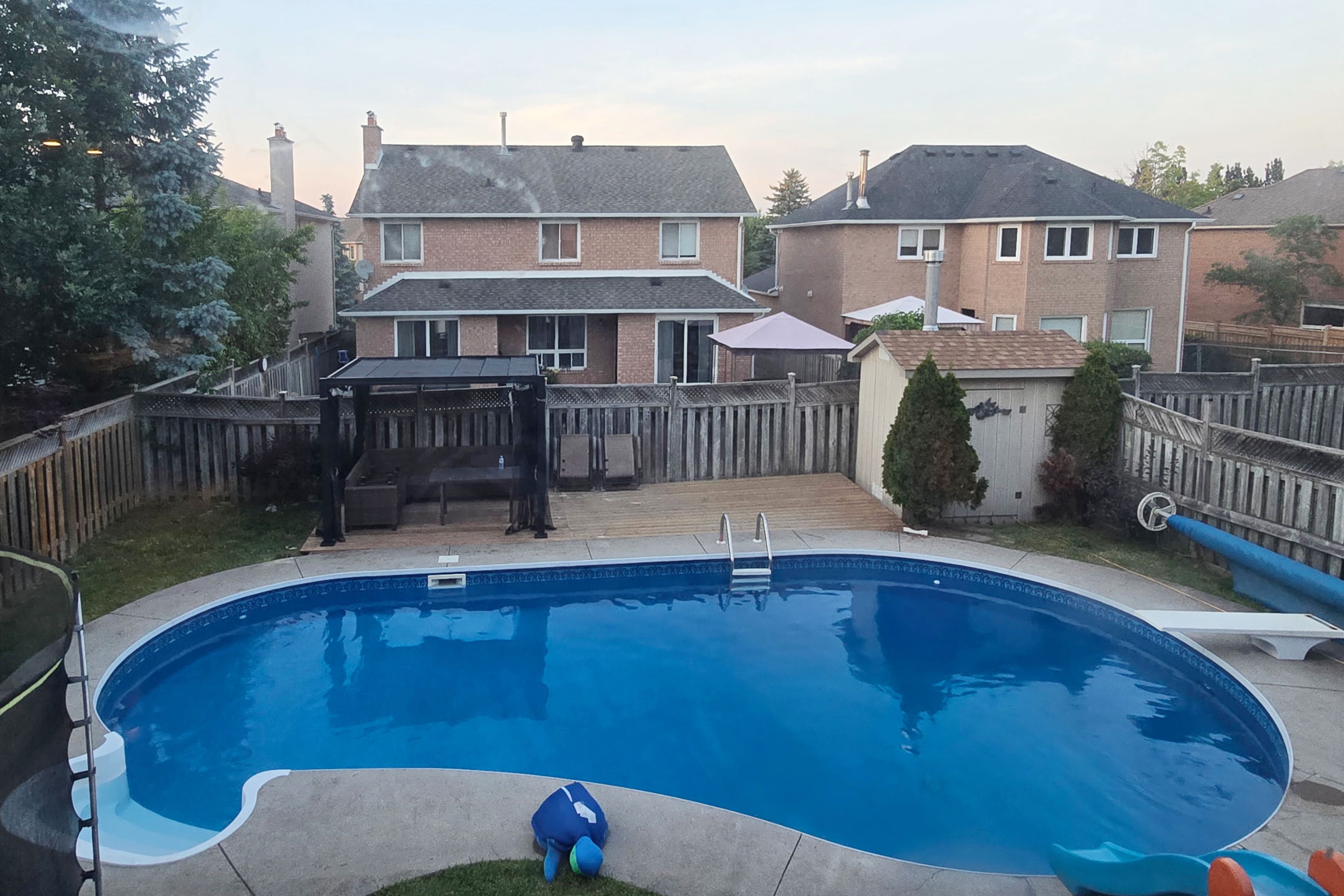 • Large yard with kidney-shaped pool, perfect for guests or family.