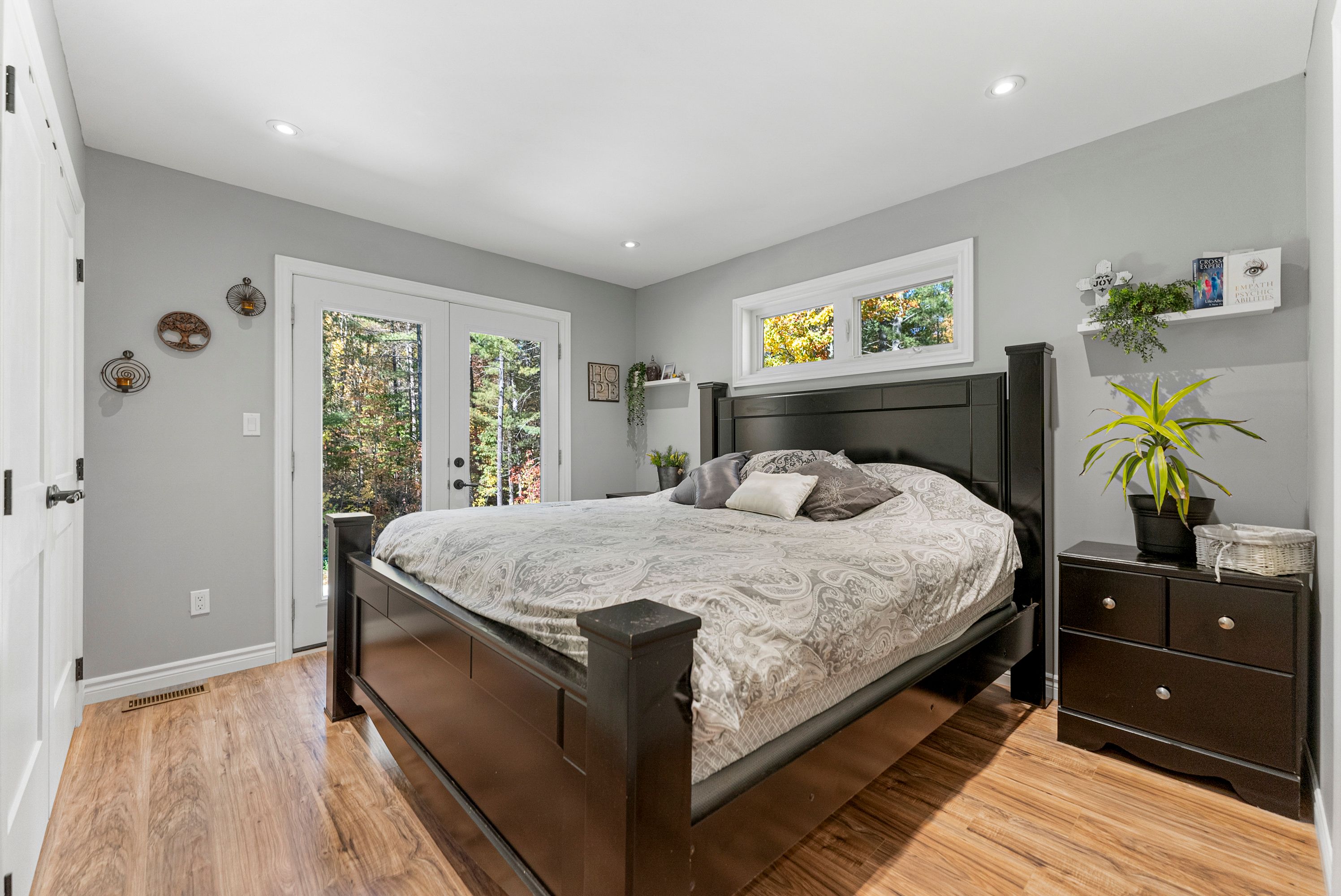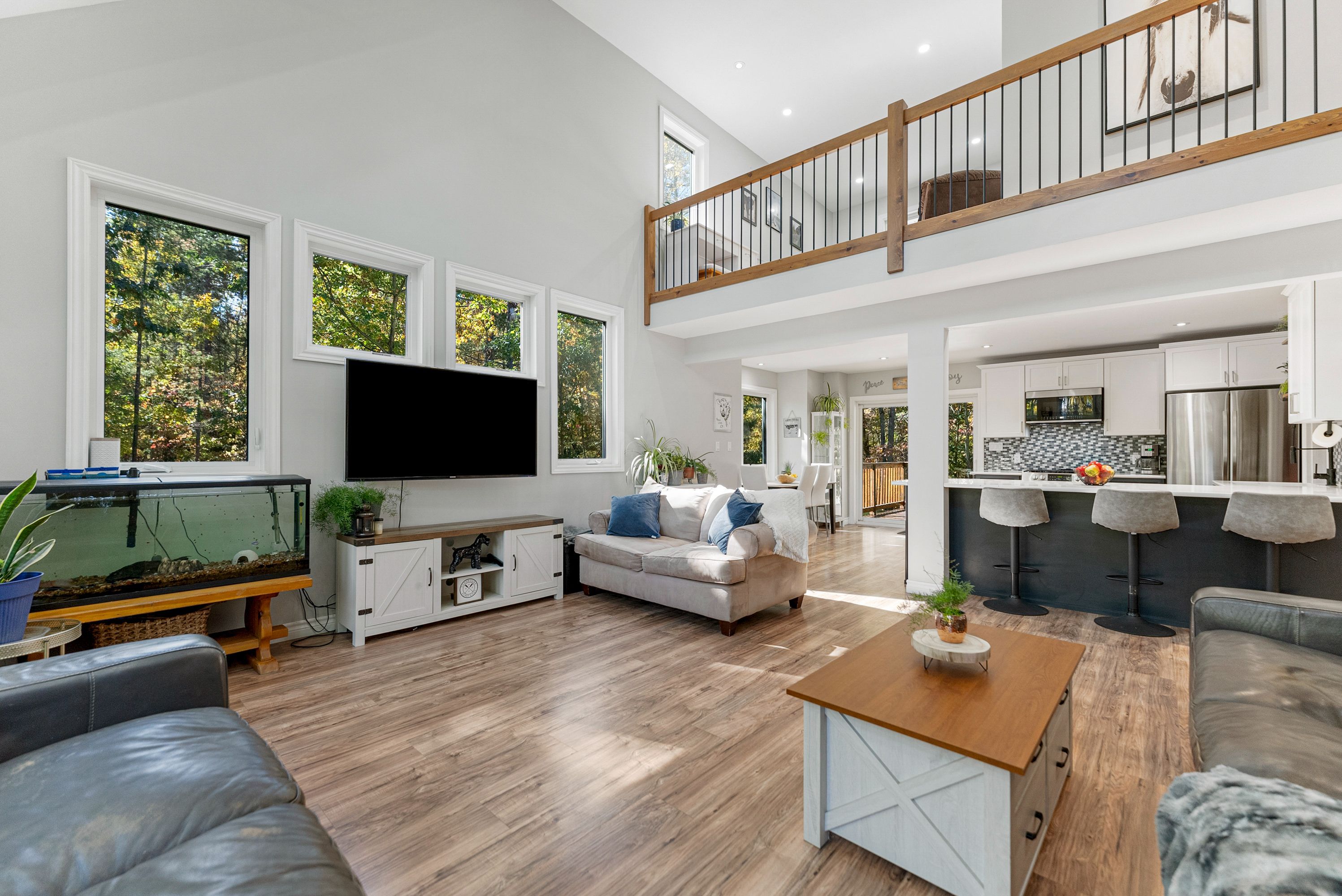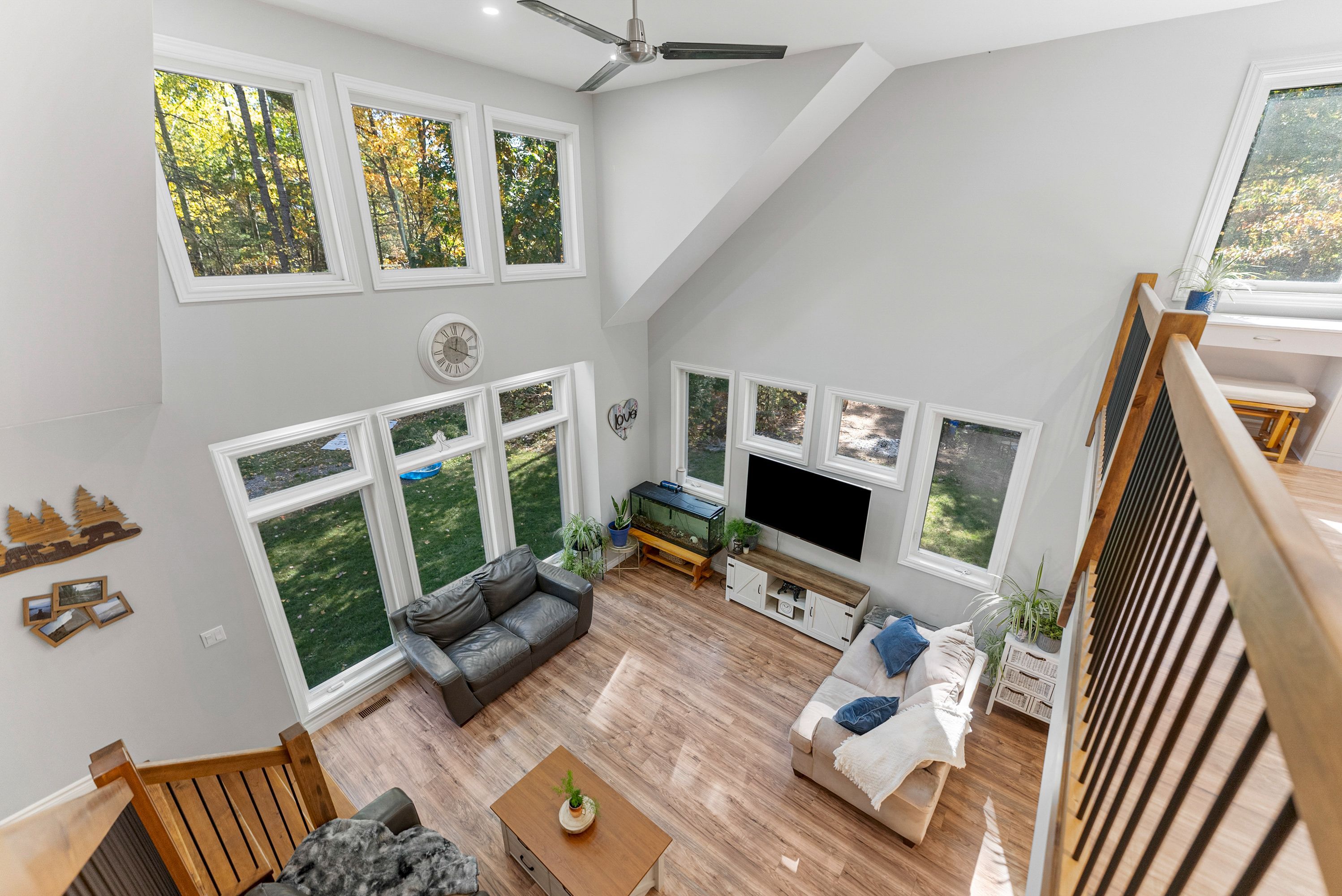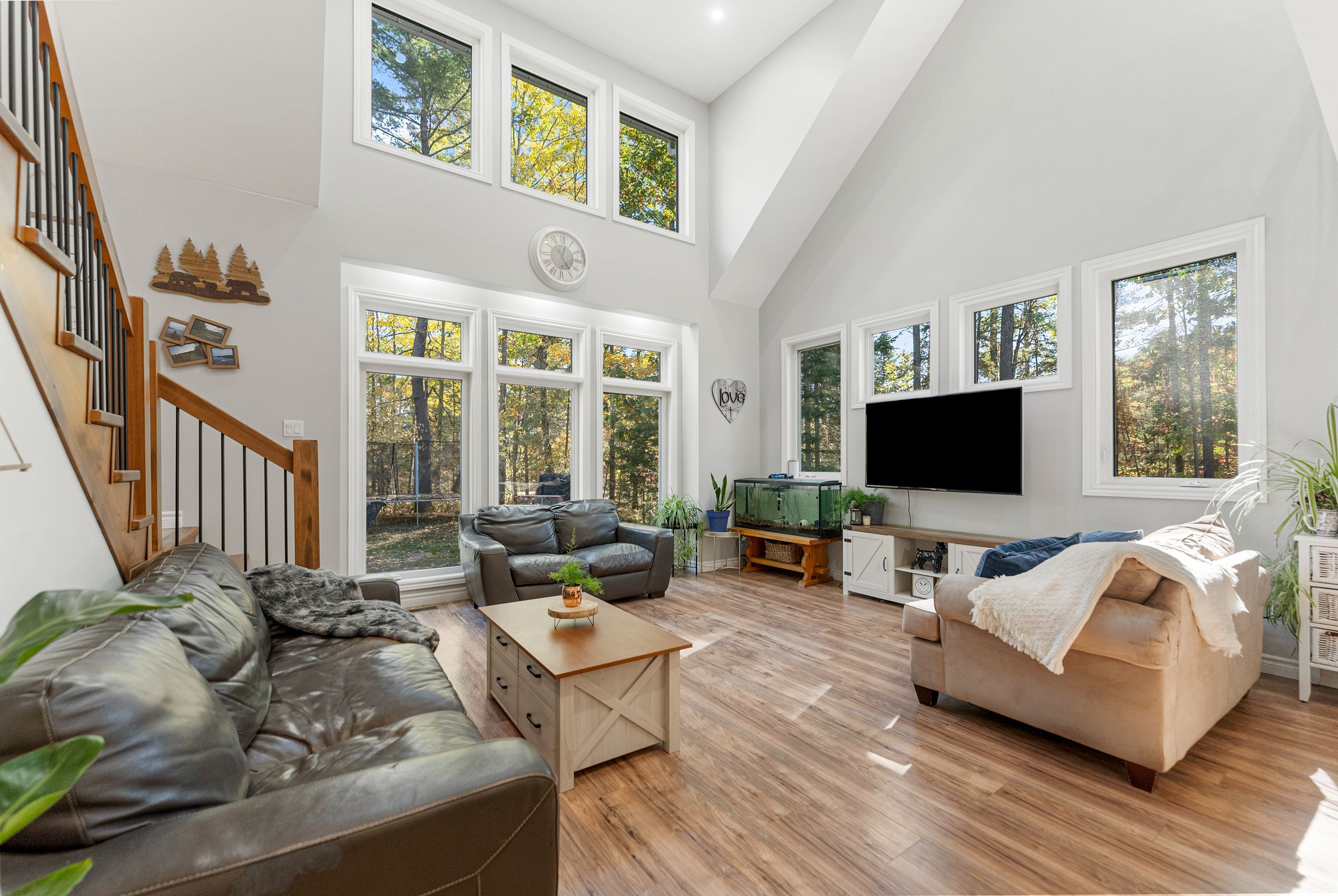 If you've been searching for a true turn-key home, look no further. This exceptionally well-built and beautifully finished 3-bedroom, 2-bath home offers a variety of luxury touches that help it stand out from the rest. The open-concept kitchen, living, and dining area provides the perfect setting for entertaining or enjoying time with family. Soaring vaulted ceilings and wall-to-wall triple-pane windows fill the home with natural light and create a warm, inviting atmosphere. The main-floor primary bedroom and laundry room offer convenience and comfort, while a sliding glass door opens to your private backyard oasis. Upstairs, you'll find two generous bedrooms and a thoughtfully designed bathroom that allows for multiple users - ideal for families or guests. The loft area overlooking the main floor offers additional living space, perfect for a home office, reading nook, or play area. The unfinished basement awaits your personal touch, whether you're envisioning extra bedrooms, a rec room, or a workshop. In-floor heating can easily be connected for year-round comfort, and there's also an optional generator hookup for added peace of mind. Outside, enjoy a nicely landscaped yard with room to add a garage, plus covered front and rear patios overlooking a serene wooded area. A propane bbq hookup makes outdoor cooking effortless. Located just minutes from town, you'll appreciate the proximity to schools, hospital, shopping, and amenities - everything you need is close at hand. Don't let this opportunity pass you by - this move-in-ready home is the one you've been waiting for!