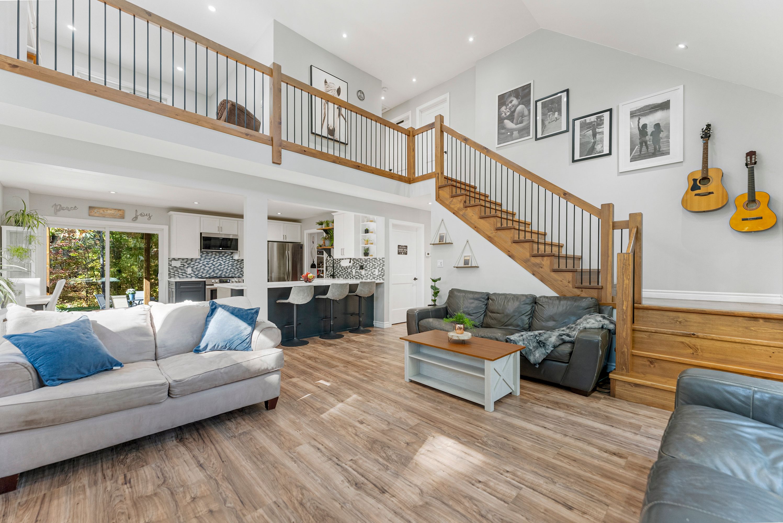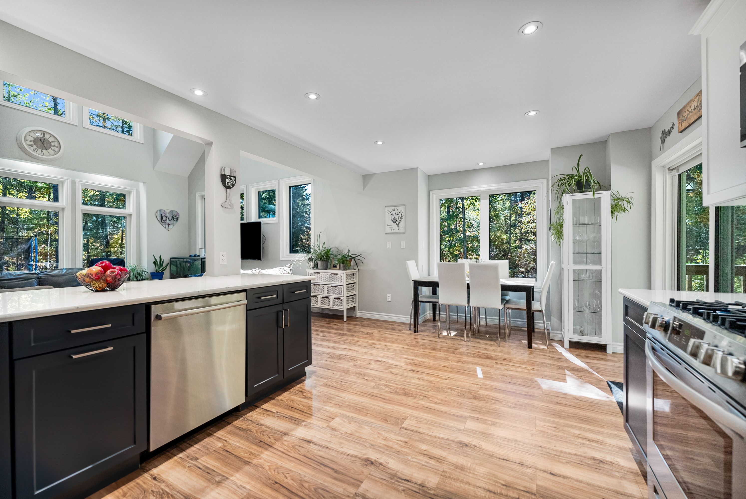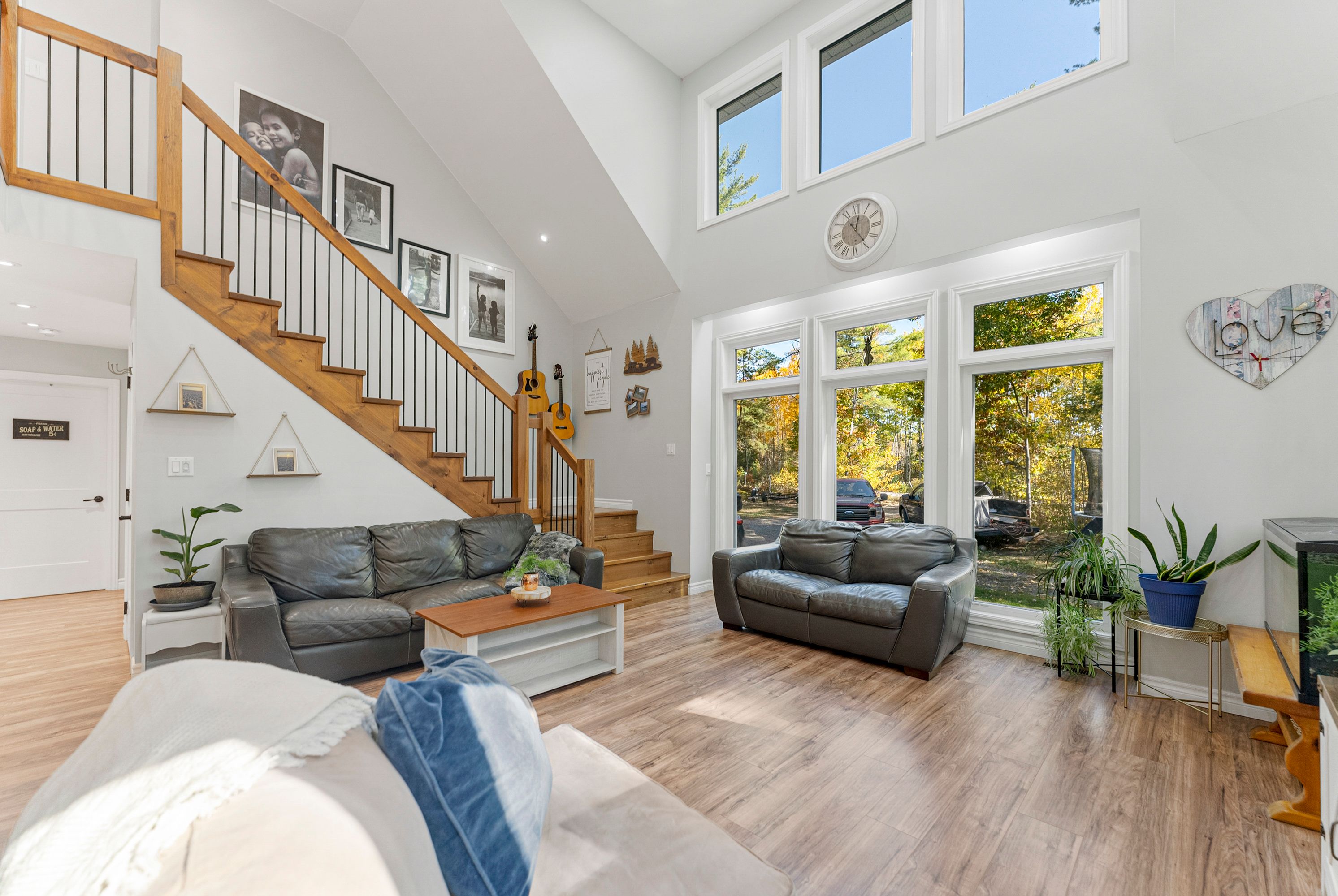 If you've been searching for a true turn-key home, look no further. This exceptionally well-built and beautifully finished 3-bedroom, 2-bath home offers a variety of luxury touches that help it stand out from the rest. The open-concept kitchen, living, and dining area provides the perfect setting for entertaining or enjoying time with family. Soaring vaulted ceilings and wall-to-wall triple-pane windows fill the home with natural light and create a warm, inviting atmosphere. The main-floor primary bedroom and laundry room offer convenience and comfort, while a sliding glass door opens to your private backyard oasis. Upstairs, you'll find two generous bedrooms and a thoughtfully designed bathroom that allows for multiple users - ideal for families or guests. The loft area overlooking the main floor offers additional living space, perfect for a home office, reading nook, or play area. The unfinished basement awaits your personal touch, whether you're envisioning extra bedrooms, a rec room, or a workshop. In-floor heating can easily be connected for year-round comfort, and there's also an optional generator hookup for added peace of mind. Outside, enjoy a nicely landscaped yard with room to add a garage, plus covered front and rear patios overlooking a serene wooded area. A propane bbq hookup makes outdoor cooking effortless. Located just minutes from town, you'll appreciate the proximity to schools, hospital, shopping, and amenities - everything you need is close at hand. Don't let this opportunity pass you by - this move-in-ready home is the one you've been waiting for!