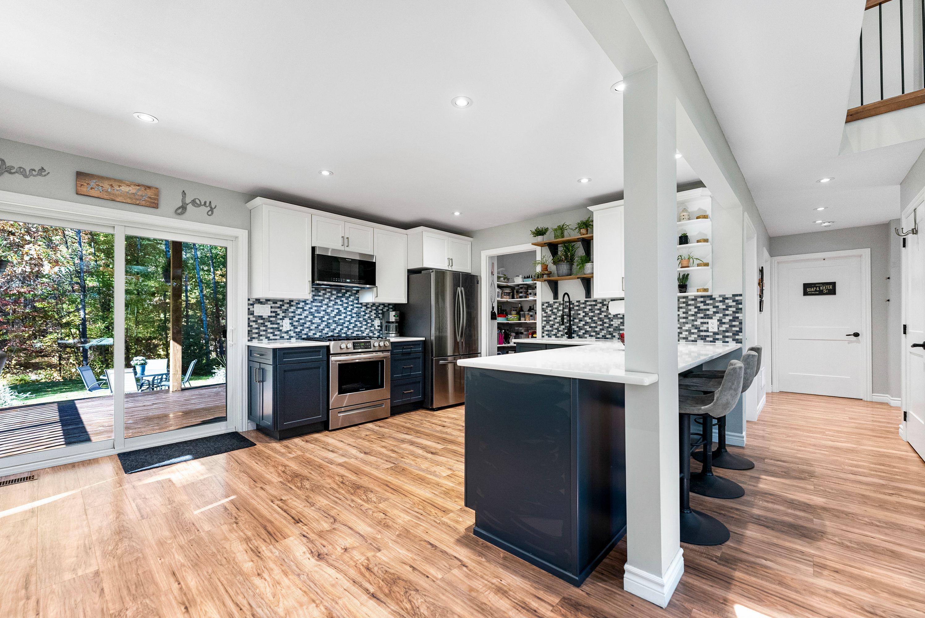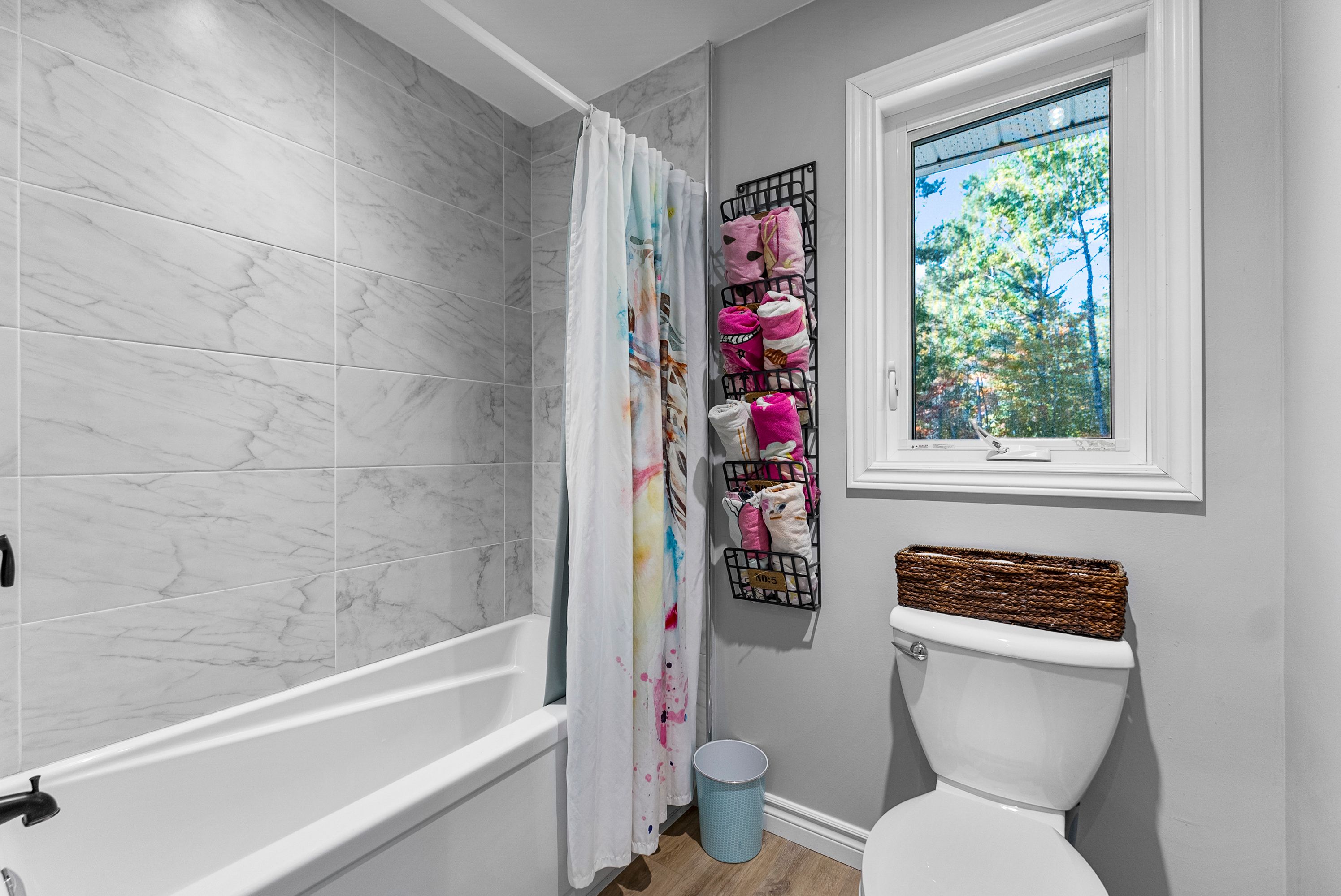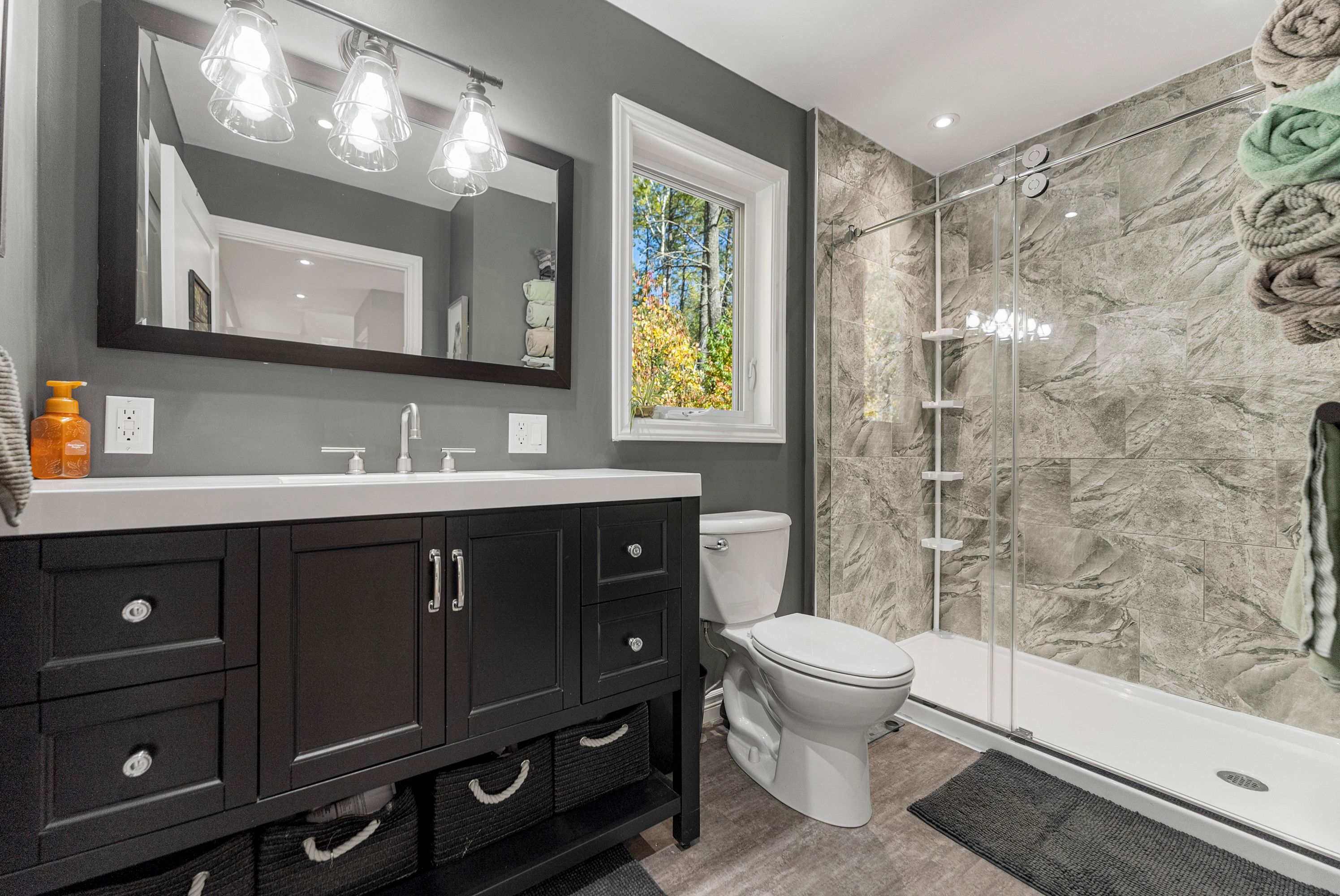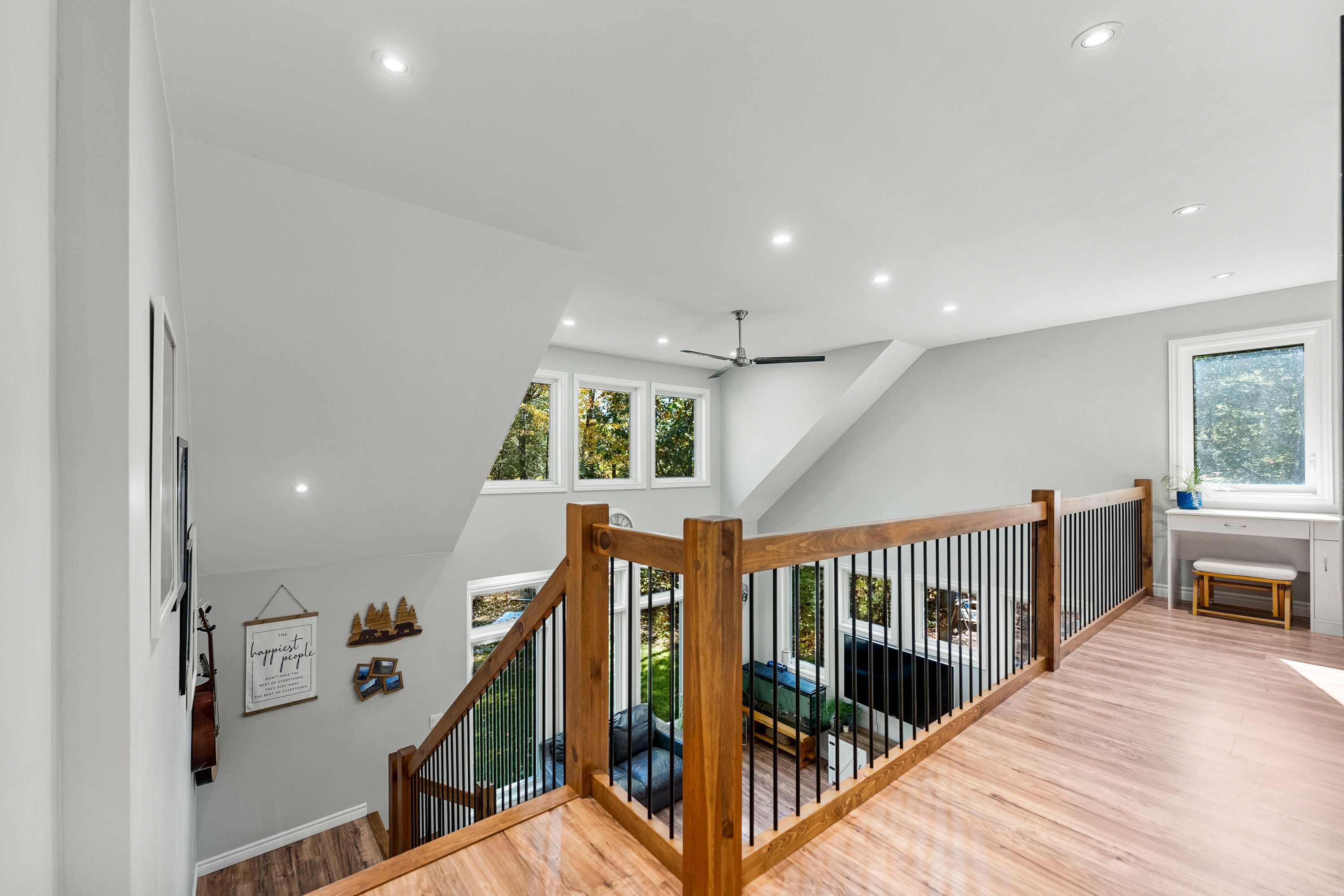 If you've been searching for a true turn-key home, look no further. This exceptionally well-built and beautifully finished 3-bedroom, 2-bath home offers a variety of luxury touches that help it stand out from the rest. The open-concept kitchen, living, and dining area provides the perfect setting for entertaining or enjoying time with family. Soaring vaulted ceilings and wall-to-wall triple-pane windows fill the home with natural light and create a warm, inviting atmosphere. The main-floor primary bedroom and laundry room offer convenience and comfort, while a sliding glass door opens to your private backyard oasis. Upstairs, you'll find two generous bedrooms and a thoughtfully designed bathroom that allows for multiple users - ideal for families or guests. The loft area overlooking the main floor offers additional living space, perfect for a home office, reading nook, or play area. The unfinished basement awaits your personal touch, whether you're envisioning extra bedrooms, a rec room, or a workshop. In-floor heating can easily be connected for year-round comfort, and there's also an optional generator hookup for added peace of mind. Outside, enjoy a nicely landscaped yard with room to add a garage, plus covered front and rear patios overlooking a serene wooded area. A propane bbq hookup makes outdoor cooking effortless. Located just minutes from town, you'll appreciate the proximity to schools, hospital, shopping, and amenities - everything you need is close at hand. Don't let this opportunity pass you by - this move-in-ready home is the one you've been waiting for!