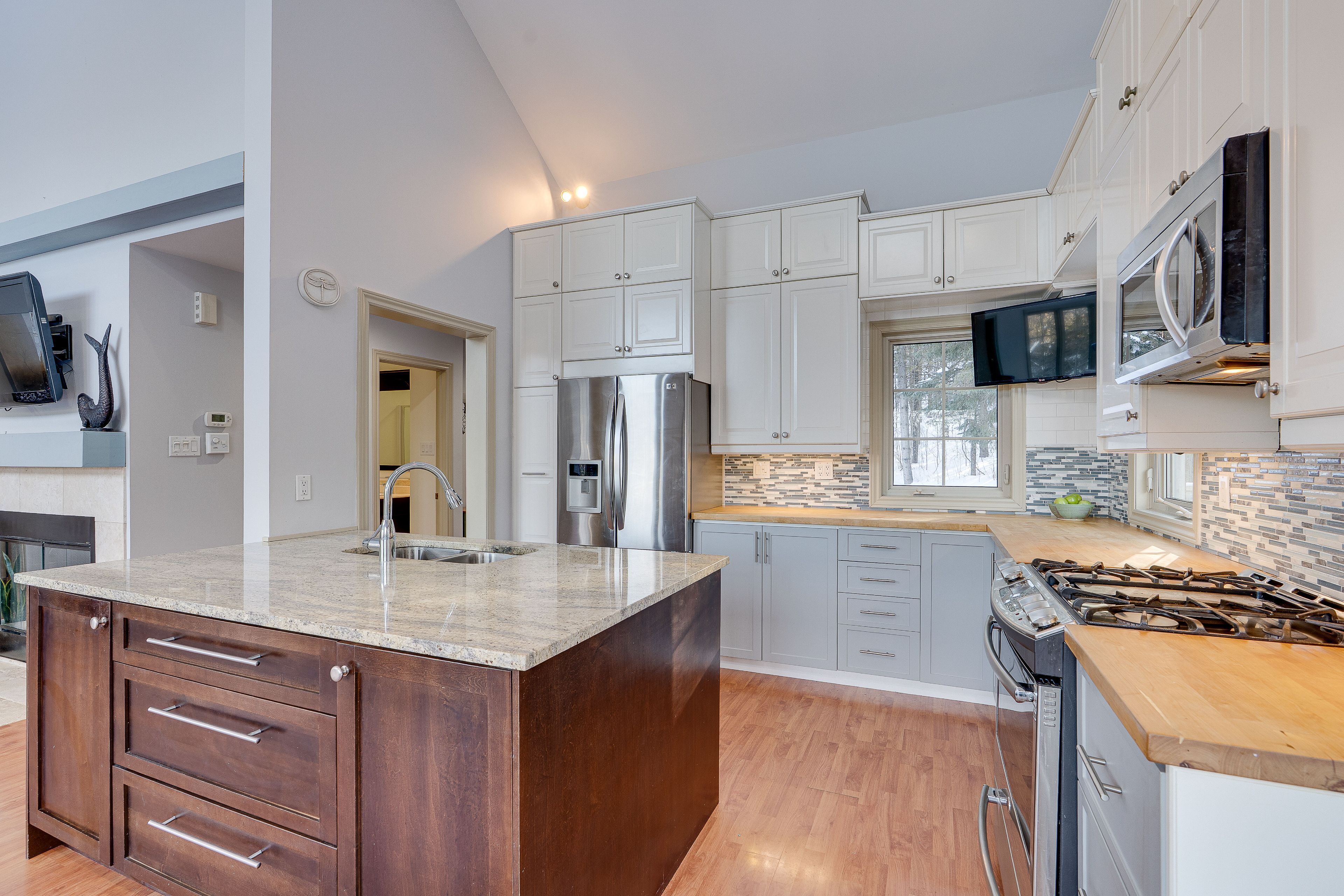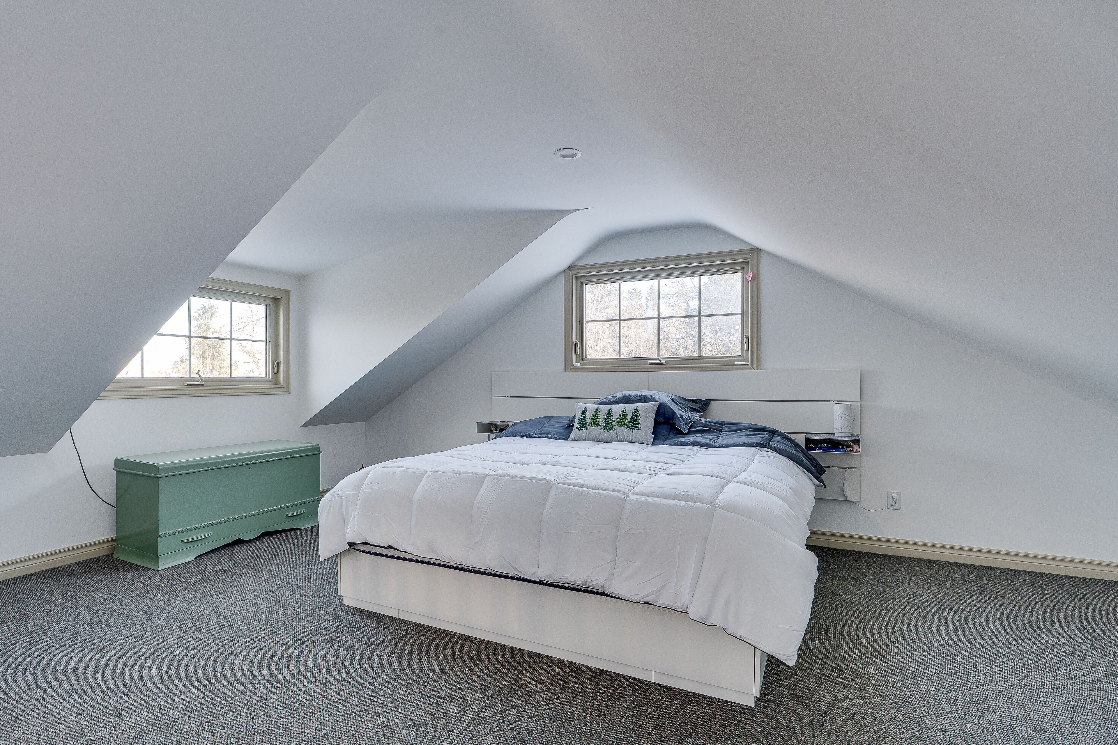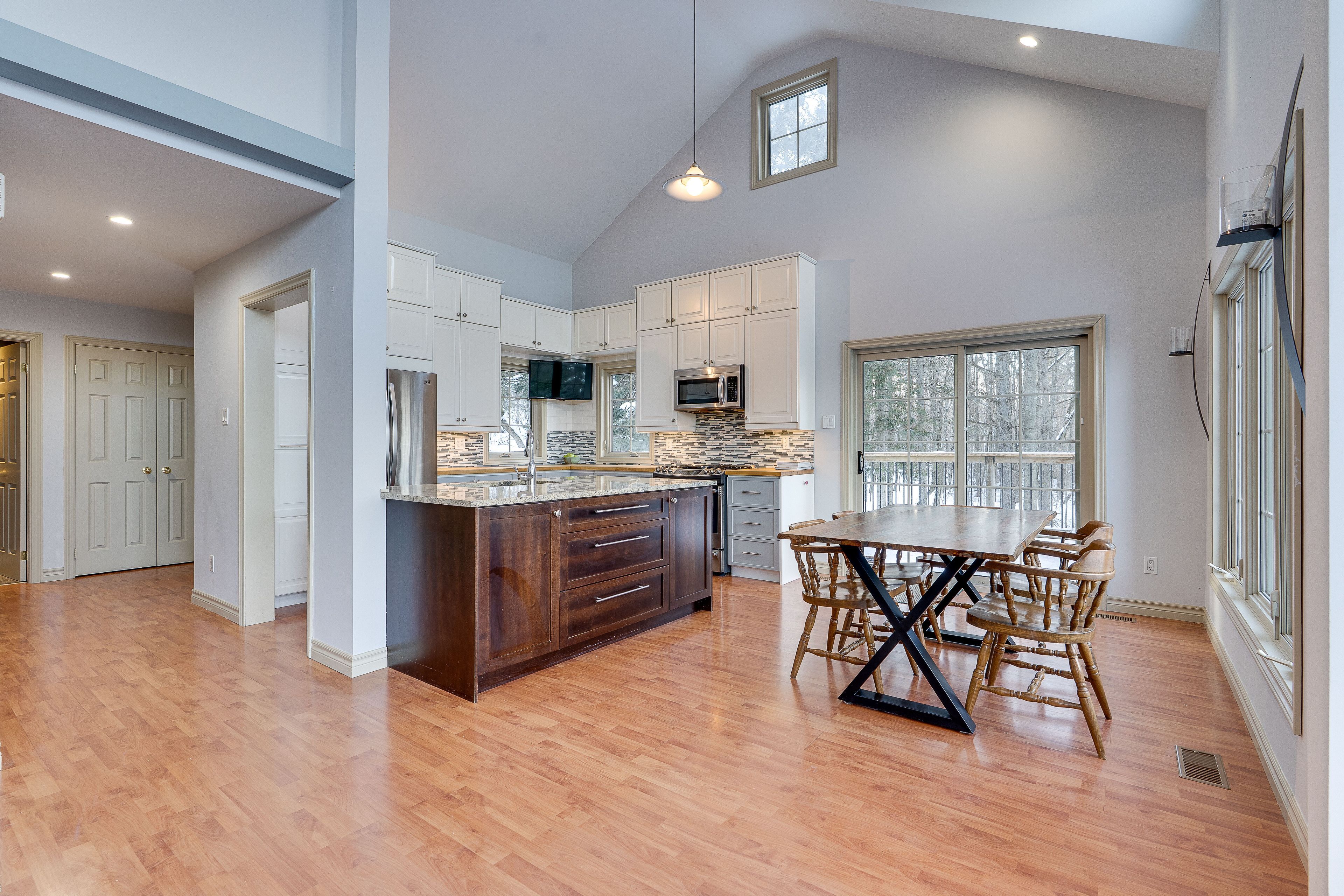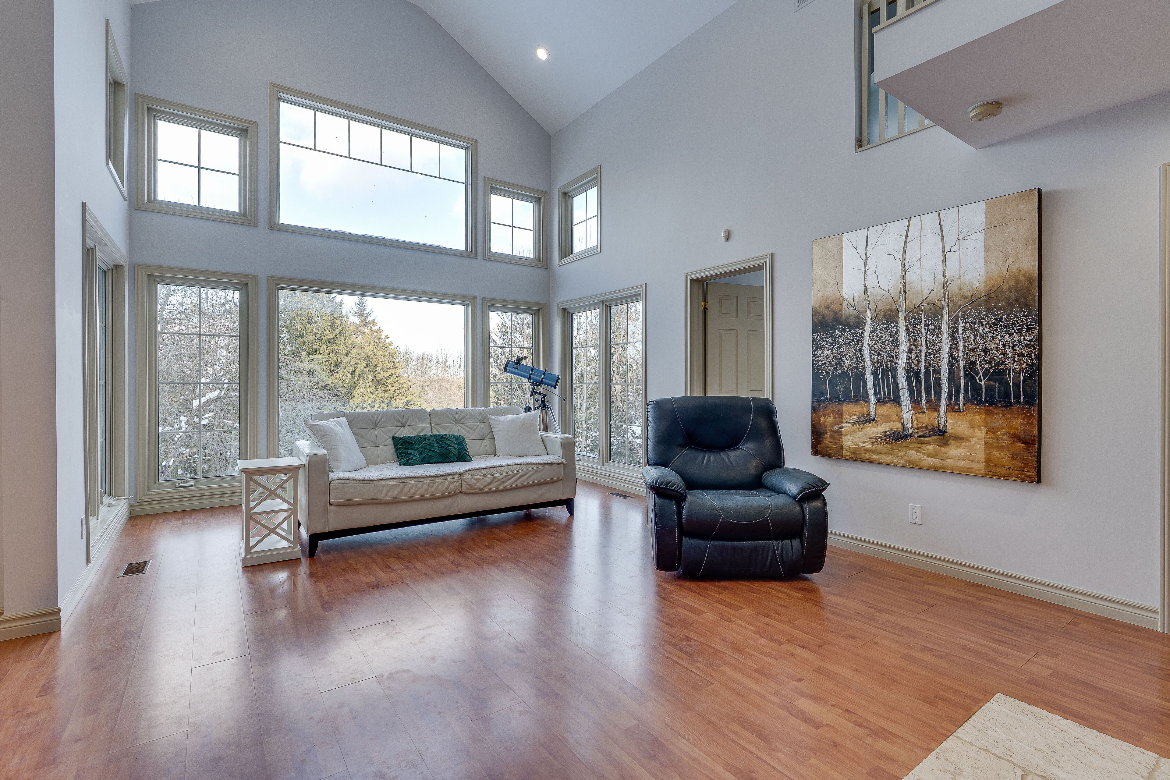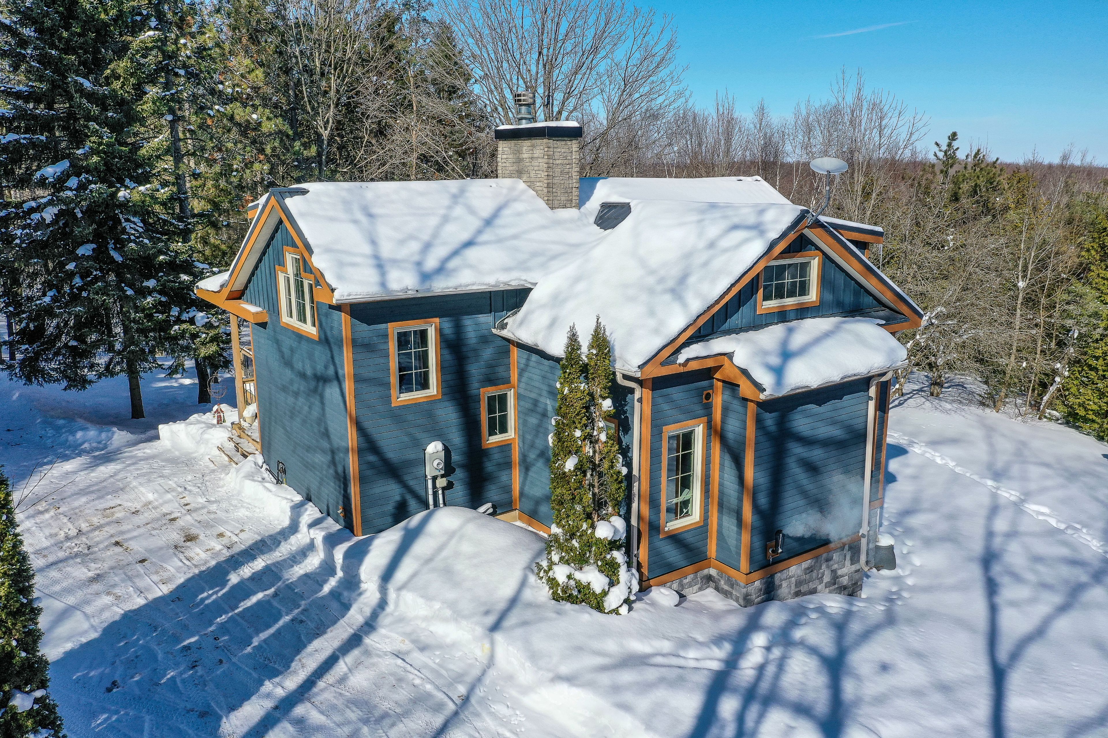 Nestled on 15 private acres in the rolling hills of mono, this custom-built chalet-inspired home offers exceptional privacy, natural beauty, and versatile living space. Scenic woodlands feature established trails winding through mature forest, fruit trees and natural clearings - perfect for hiking, recreation, and enjoying the peaceful countryside setting. Built on a durable icf foundation, the home showcases a bright open-concept great room and kitchen with soaring vaulted ceilings, a central wood-burning fireplace, and expansive windows framing picturesque views while filling the space with natural light. The main floor includes two spacious bedrooms for convenient everyday living. The upper level features a private primary "honeymoon" suite complete with dressing area. A fully finished walkout basement adds two additional bedrooms, a large rec room, and a 4-piece bath - ideal for extended family or guests. Flexible floor plan allows for bungalow-style living if desired, and previously approved plans for a garage addition with bedroom above offer future potential. Enjoy abundant wildlife, relax in the sauna, and explore nearby mono cliffs conservation area (or the delicious mono cliffs inn!) or hockley valley golf and skiing, just minutes away. Conveniently located within easy reach of orangeville and shelburne for shopping, dining, and amenities. A rare opportunity to own a truly private country retreat!