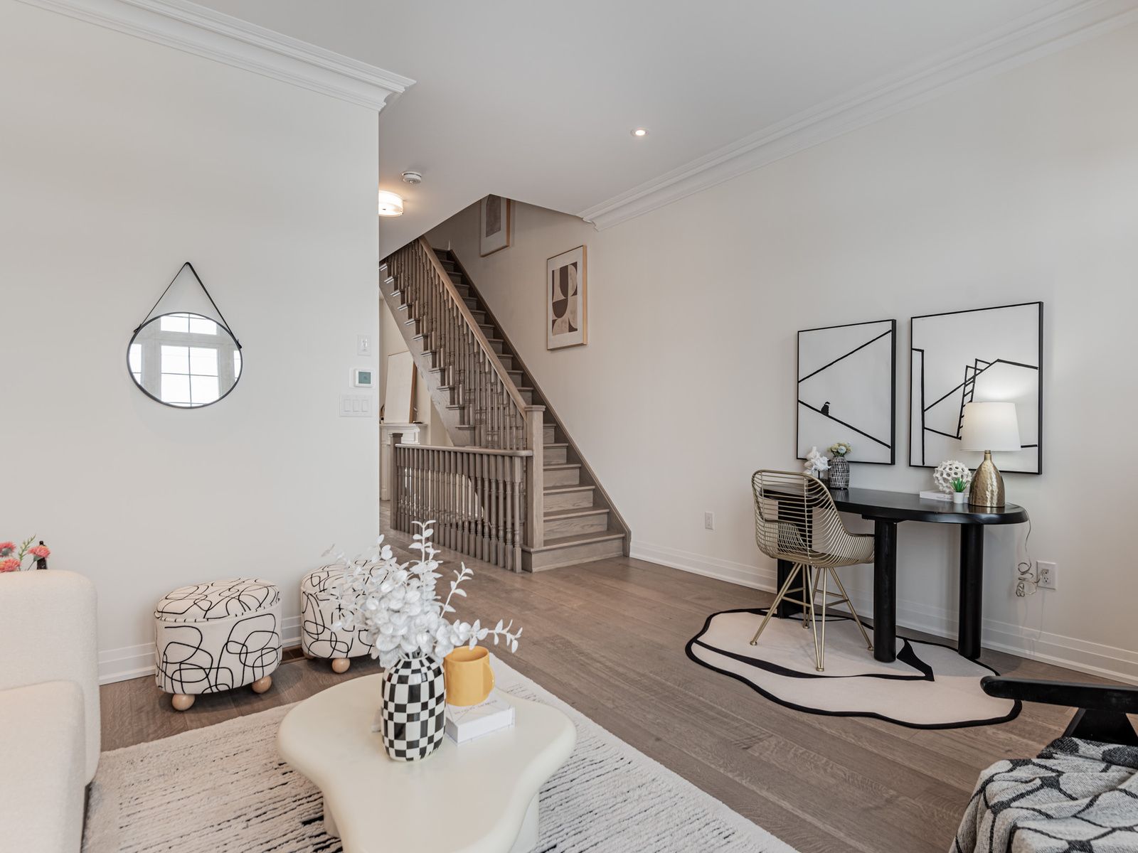 Welcome to 4275 major mackenzie drive e, a spectacular kylemore brownstones townhome nestled in the prestigious angus glen community. This exceptional residence stands apart with thousands spent on premium custom upgrades, offering a rare level of craftsmanship and refined finishes throughout. Step inside to soaring 10 ft smooth ceilings on the main level, complemented by gleaming upgraded hardwood floors, creating a modern and sophisticated living environment. The open-concept gourmet kitchen is a chef's dream, featuring a large centre island with breakfast bar, pot lights, a butler's pantry, and high-end built-in appliances, including a wolf gas range and microwave and a sub-zero refrigerator. Thoughtful enhancements include upgraded stone countertops and custom cabinetry extended to the ceiling, delivering both elegant design and maximized storage. Ascend the oak staircase to the upper level, where 9 ft ceilings and abundant natural light welcome you to three spacious bedrooms, each with large windows. The south-facing primary bedroom offers a luxurious upgraded 3 piece ensuite with a sleek frameless glass shower and a walk-out balcony overlooking the park. Ideally located near top-ranked schools (pierre elliott trudeau high school, st. Augustine catholic high school, and french immersion at sir wilfrid laurier public school), as well as public transit, parks, grocery stores, shops, the angus glen community centre, and the world-class angus glen golf club. With easy access to hwy 404 and 407, this move-in-ready gem delivers an unparalleled lifestyle of luxury, convenience, and academic excellence.