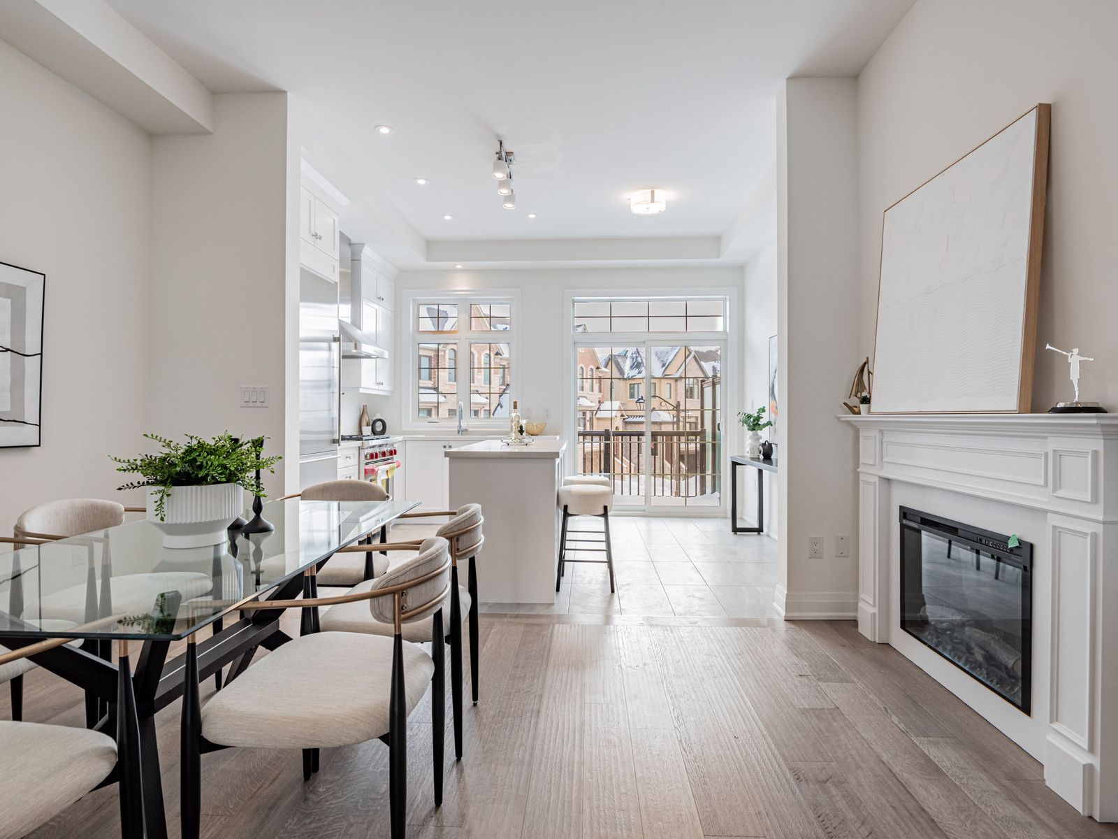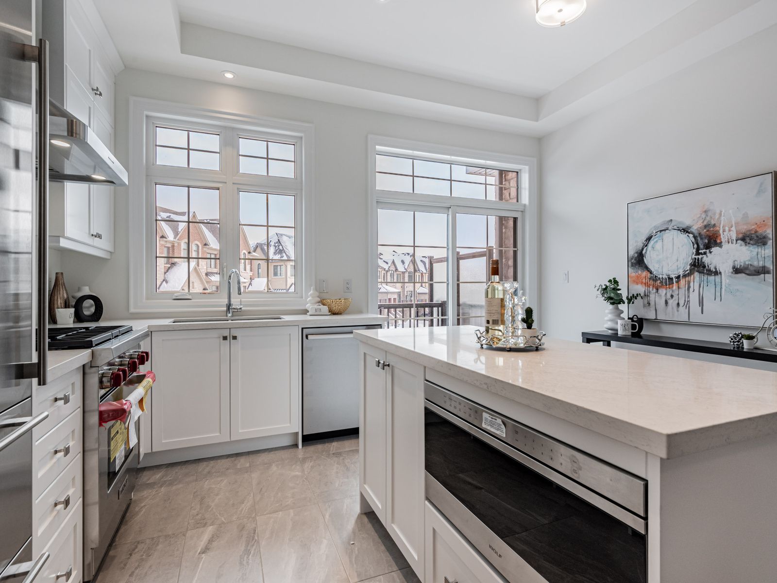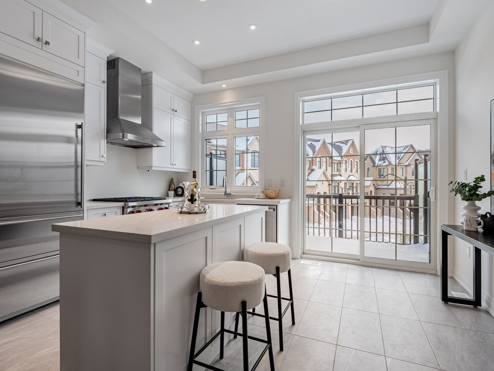 Welcome to 4275 major mackenzie drive e, a spectacular kylemore brownstones townhome nestled in the prestigious angus glen community. This exceptional residence stands apart with thousands spent on premium custom upgrades, offering a rare level of craftsmanship and refined finishes throughout. Step inside to soaring 10 ft smooth ceilings on the main level, complemented by gleaming upgraded hardwood floors, creating a modern and sophisticated living environment. The open-concept gourmet kitchen is a chef's dream, featuring a large centre island with breakfast bar, pot lights, a butler's pantry, and high-end built-in appliances, including a wolf gas range and microwave and a sub-zero refrigerator. Thoughtful enhancements include upgraded stone countertops and custom cabinetry extended to the ceiling, delivering both elegant design and maximized storage. Ascend the oak staircase to the upper level, where 9 ft ceilings and abundant natural light welcome you to three spacious bedrooms, each with large windows. The south-facing primary bedroom offers a luxurious upgraded 3 piece ensuite with a sleek frameless glass shower and a walk-out balcony overlooking the park. Ideally located near top-ranked schools (pierre elliott trudeau high school, st. Augustine catholic high school, and french immersion at sir wilfrid laurier public school), as well as public transit, parks, grocery stores, shops, the angus glen community centre, and the world-class angus glen golf club. With easy access to hwy 404 and 407, this move-in-ready gem delivers an unparalleled lifestyle of luxury, convenience, and academic excellence.