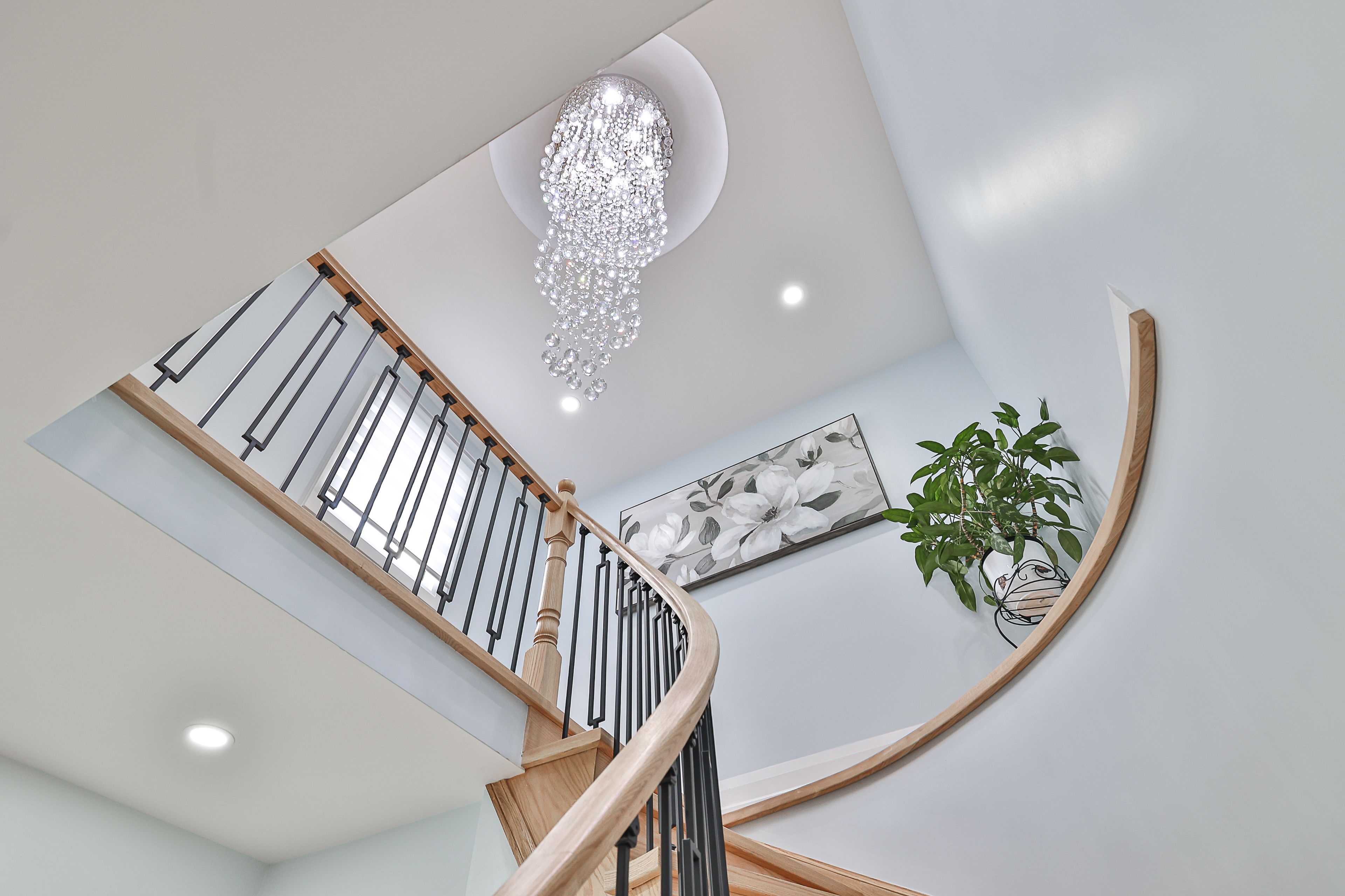 • Stylish design elements include a stunning staircase chandelier.