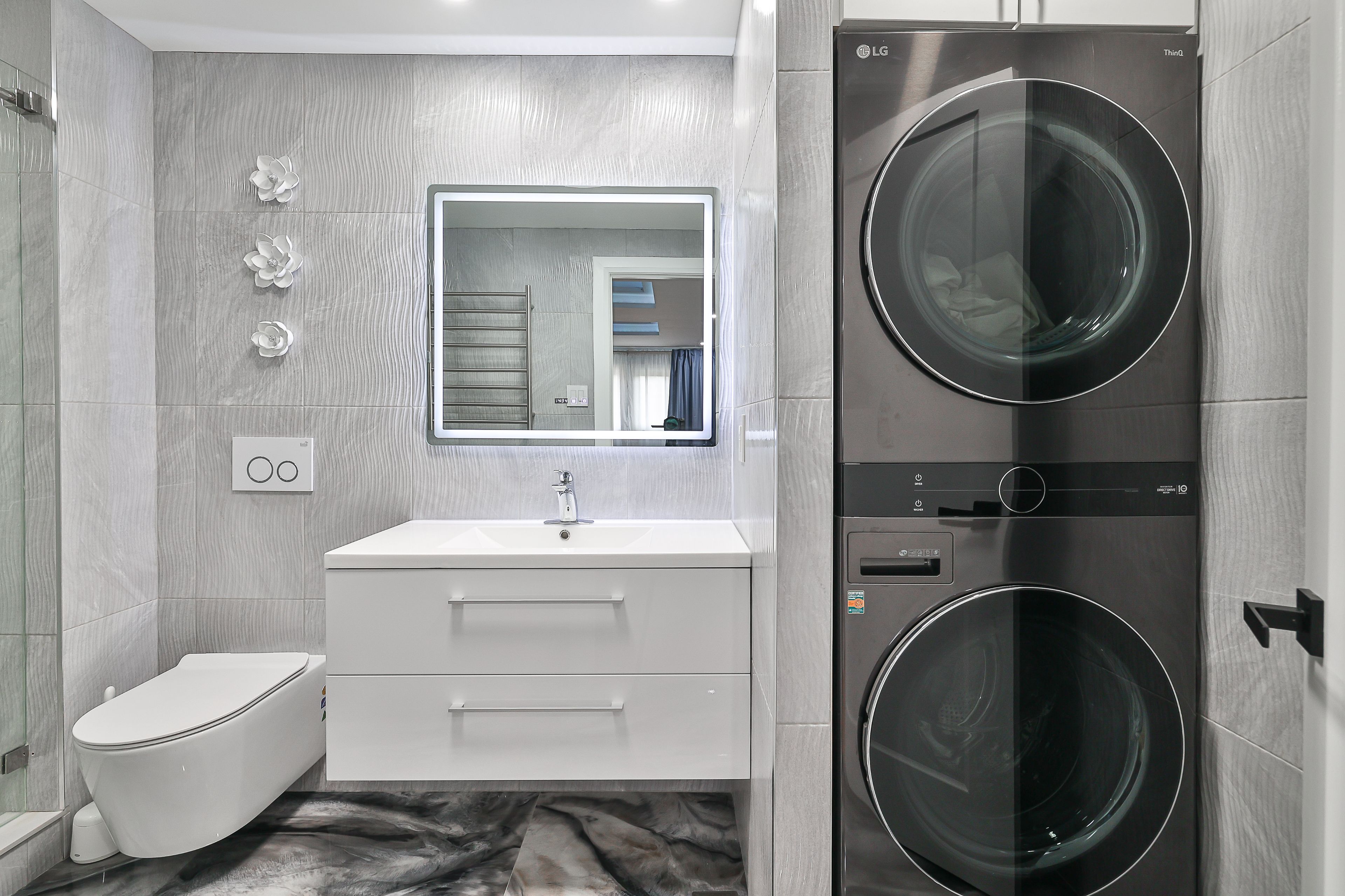 • Convenient dual laundry sets offer flexibility for household tasks.