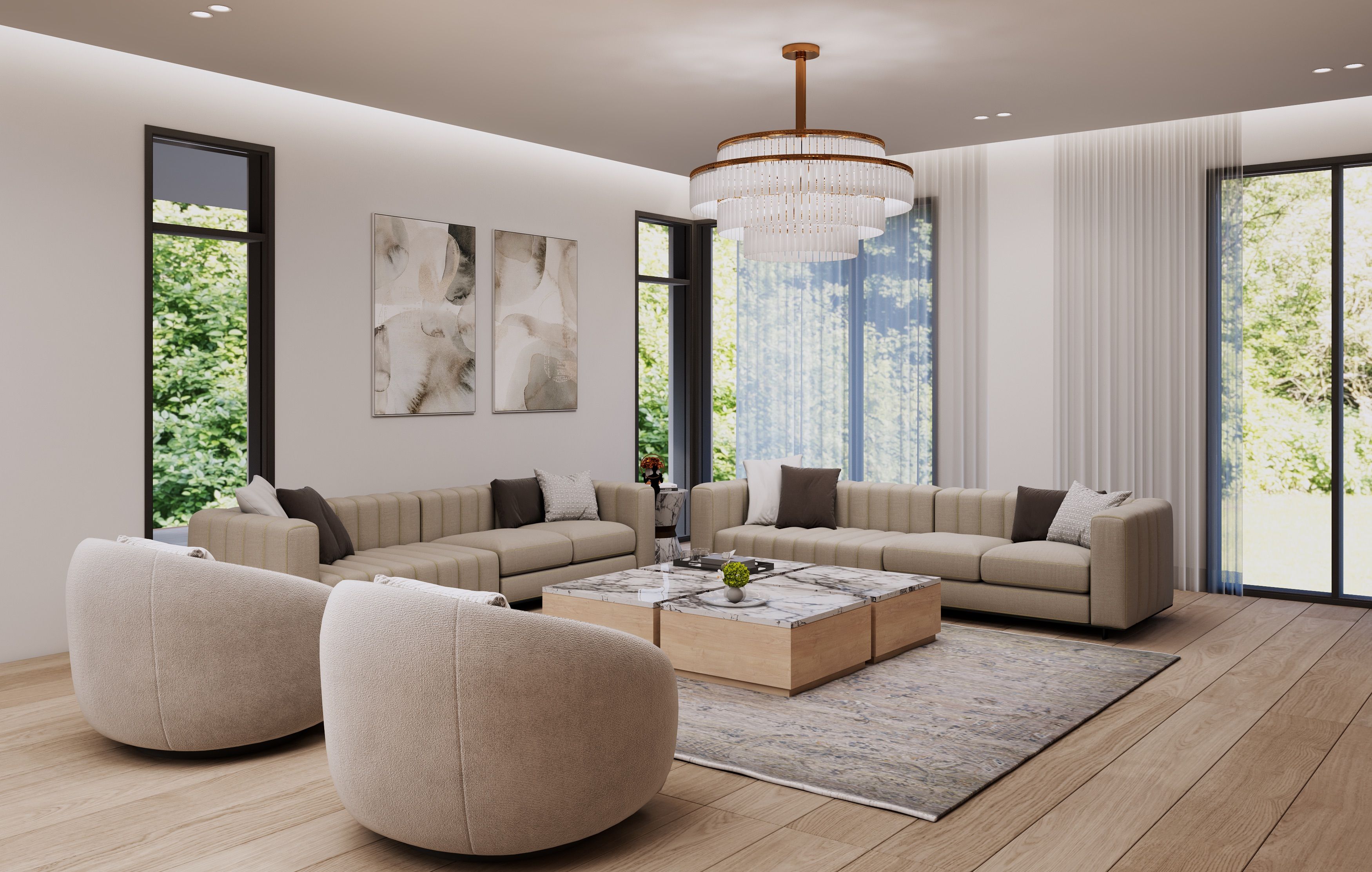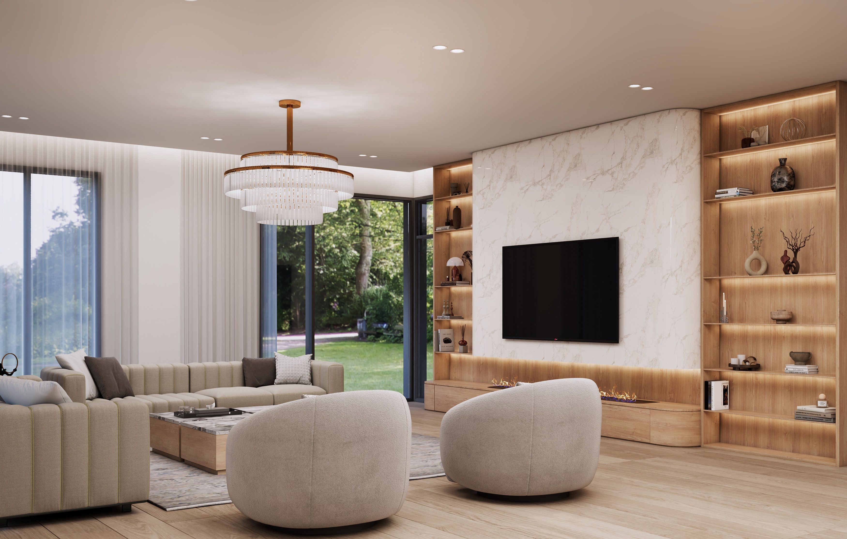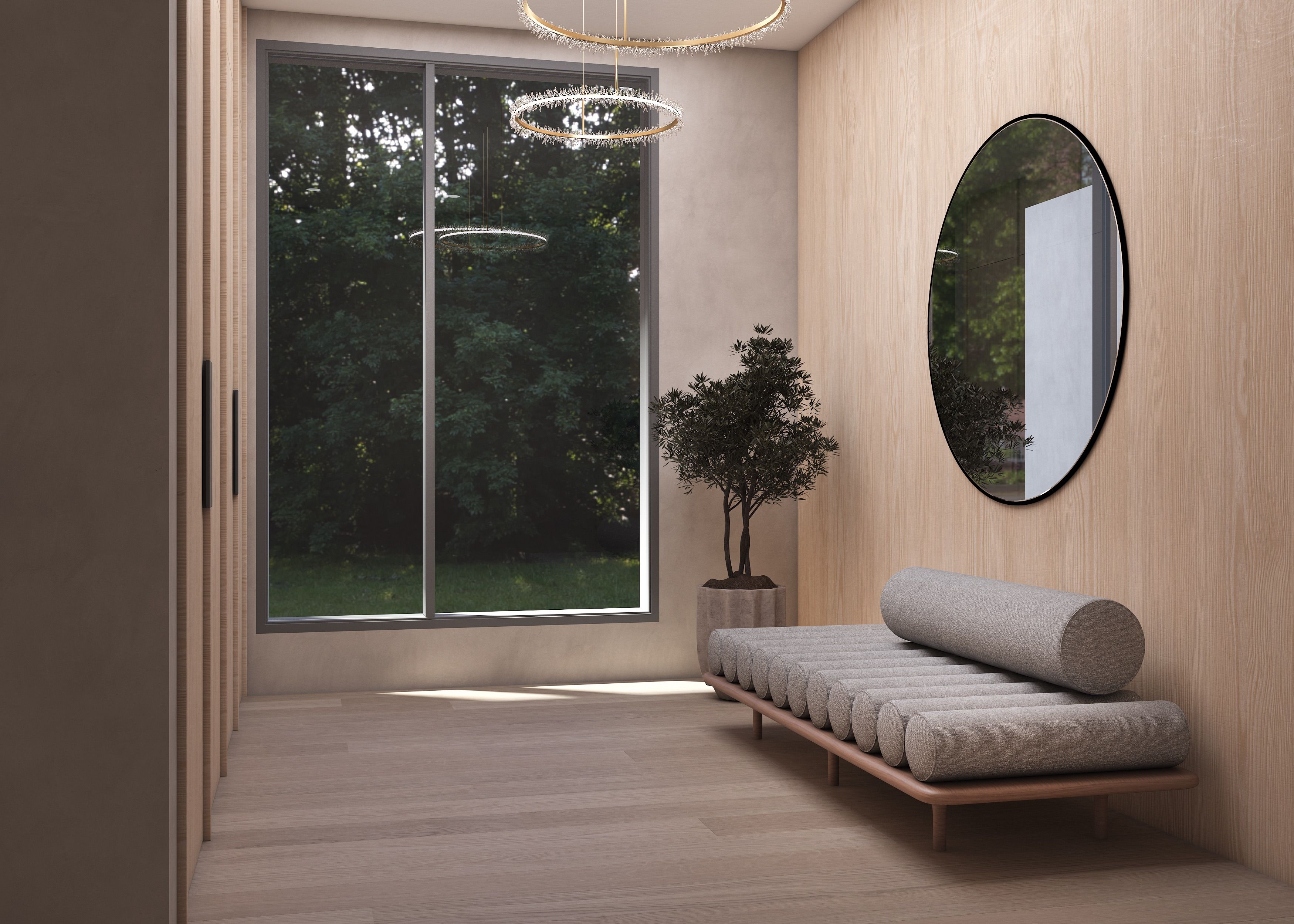 • Soaring ceilings and architectural details enhance the luxurious feel.