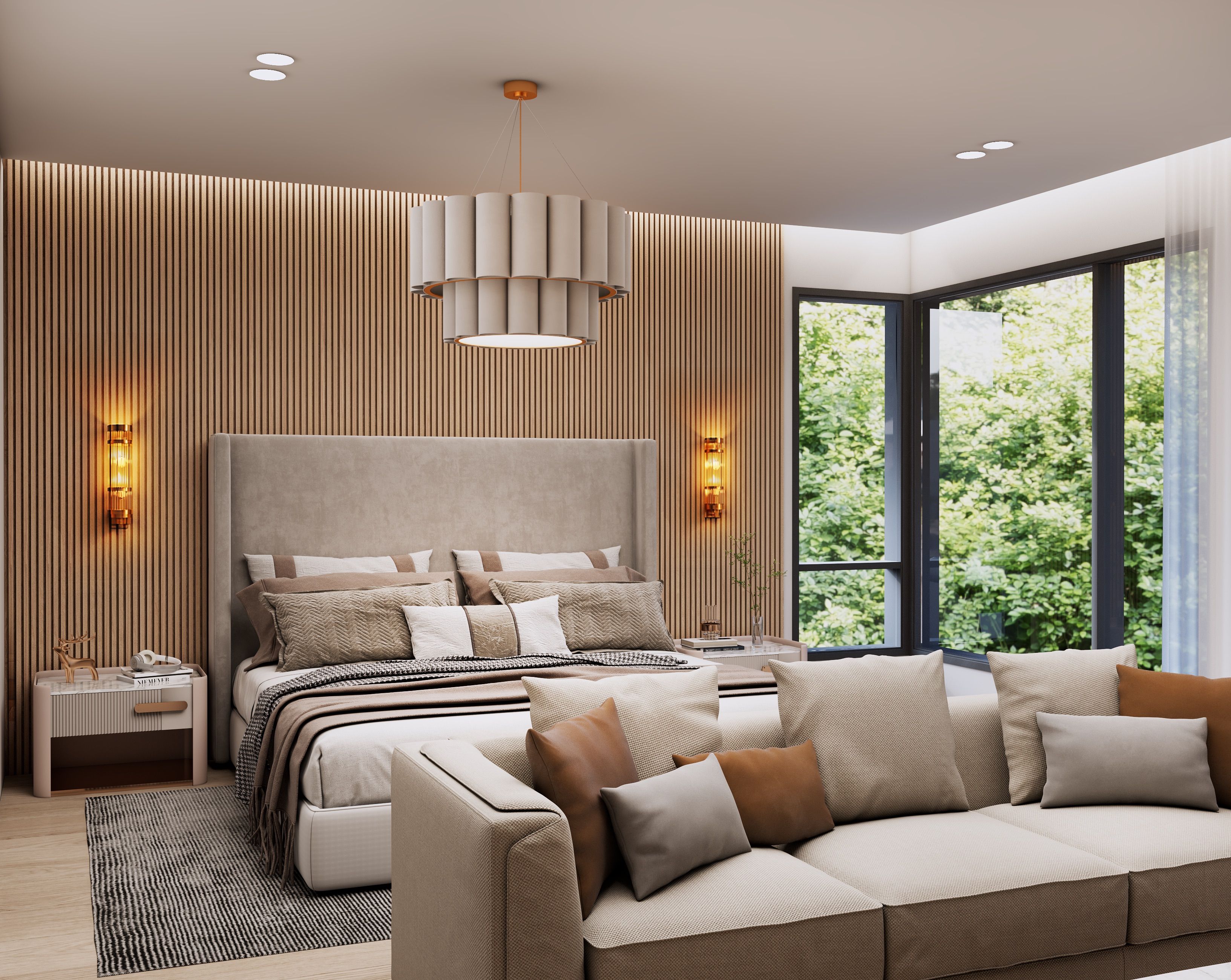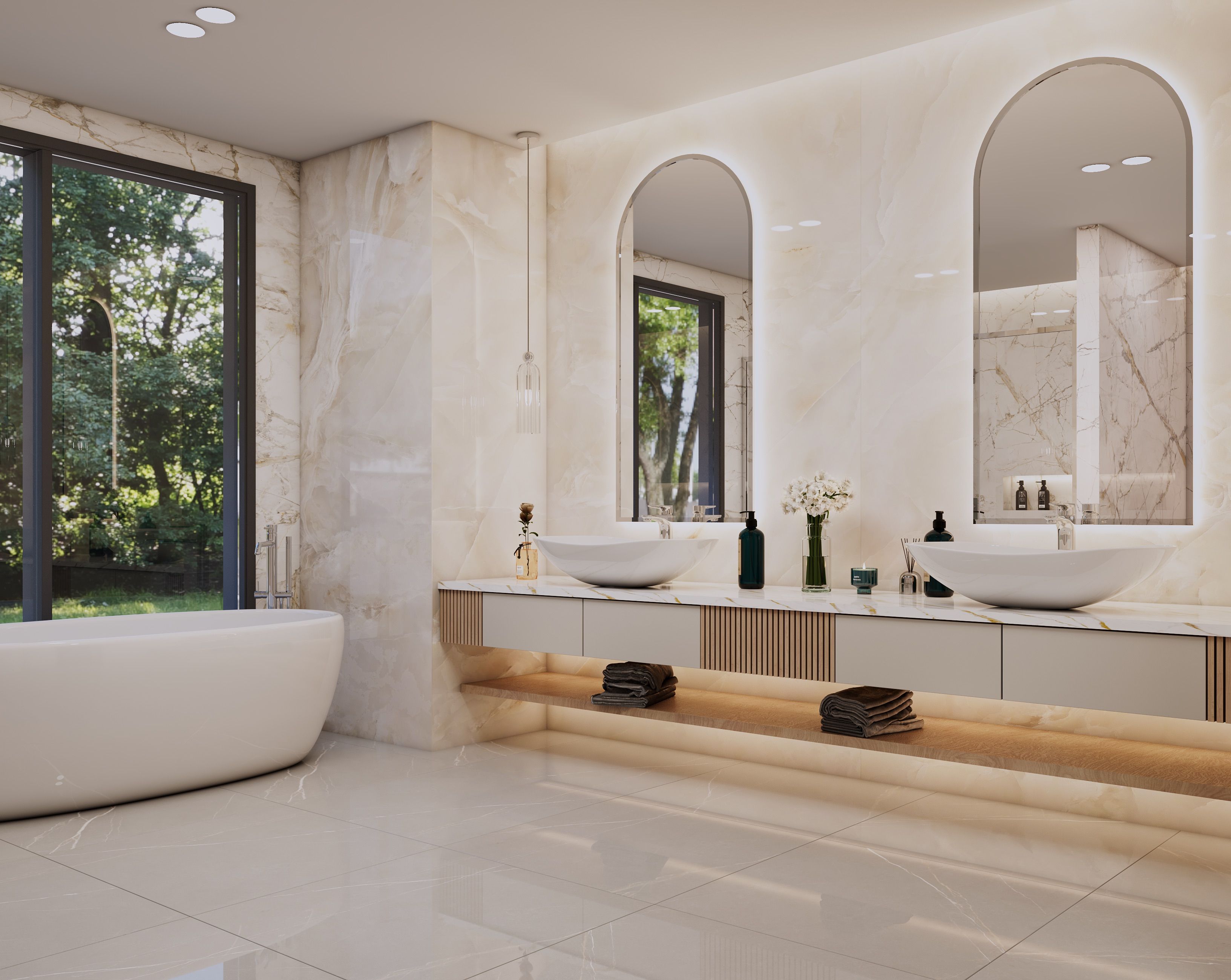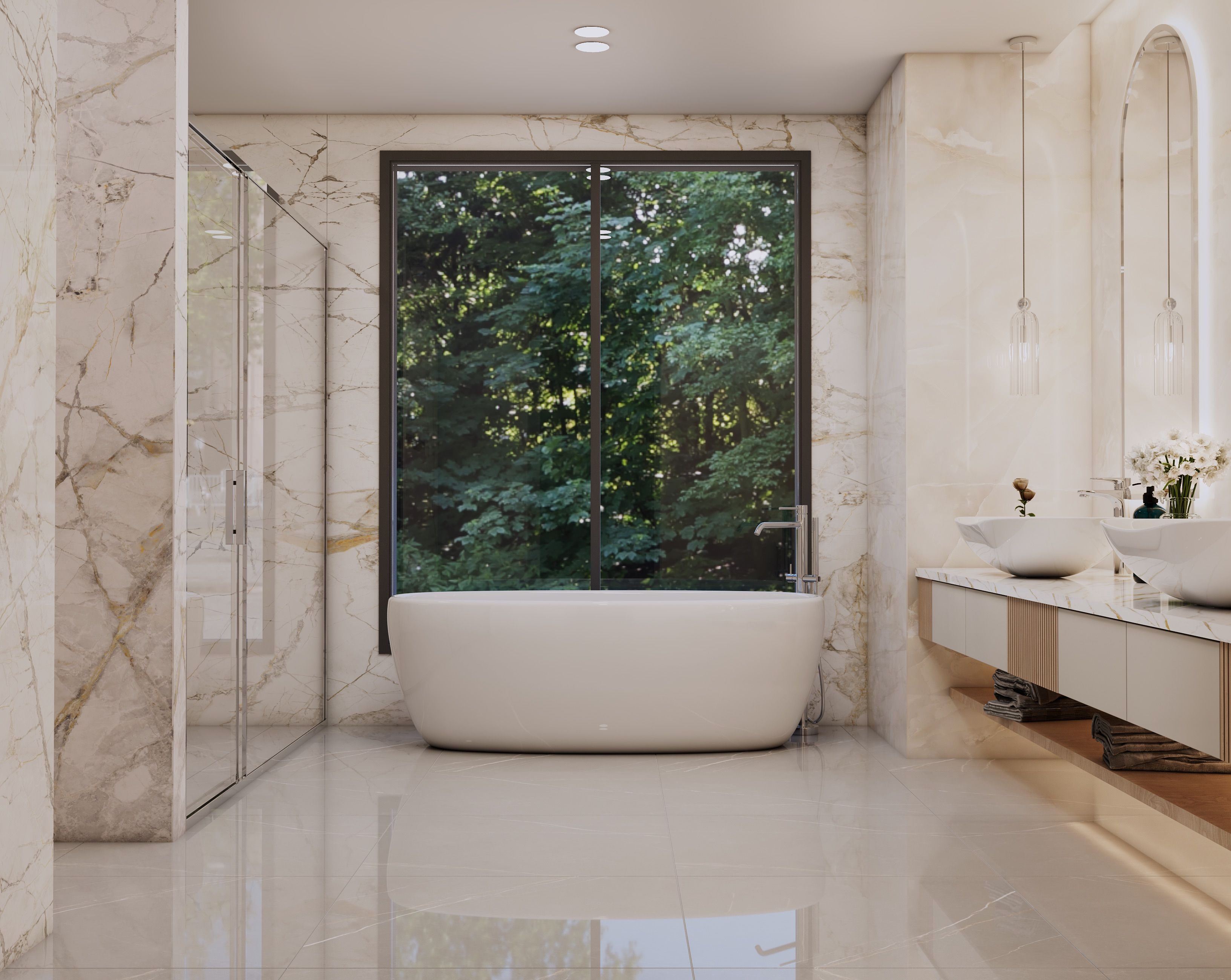 • Soaring ceilings and architectural details enhance the luxurious feel.