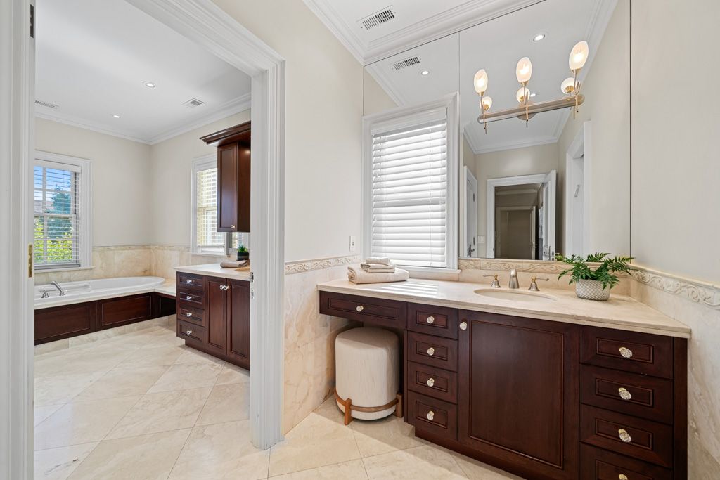 • Luxurious primary suite features a private office and spa-like ensuite bathroom.