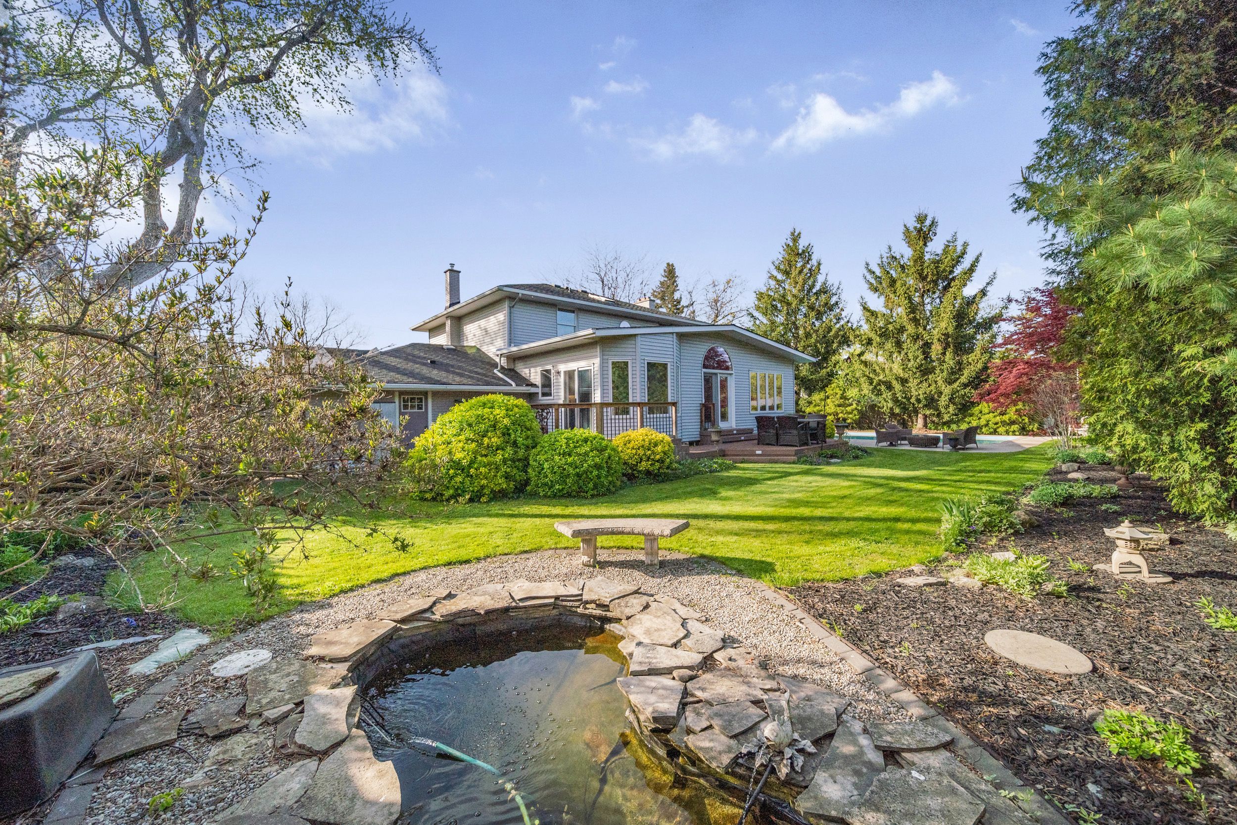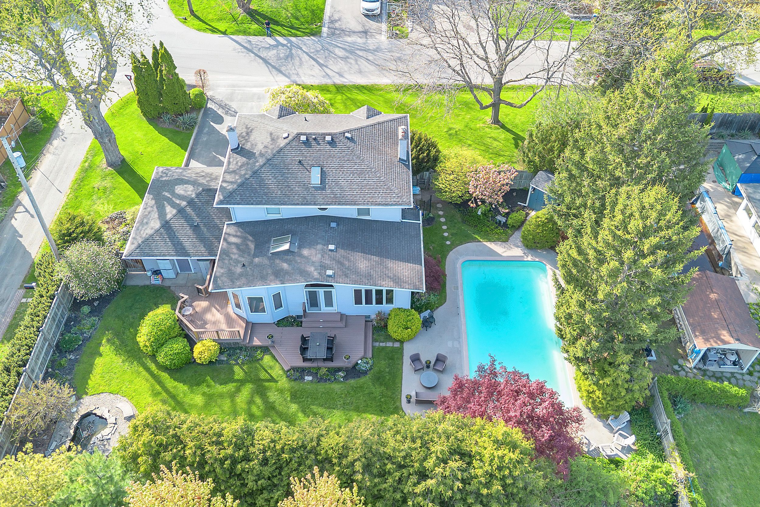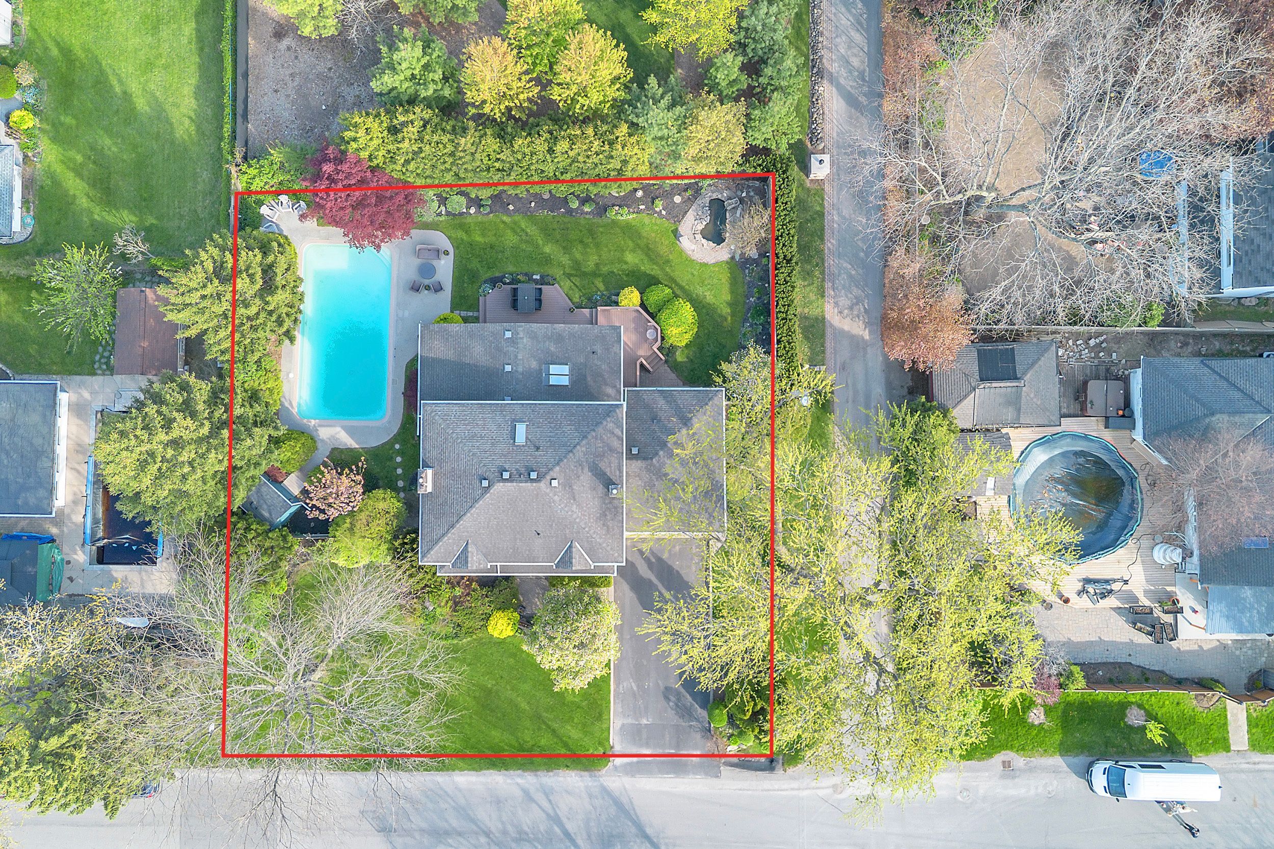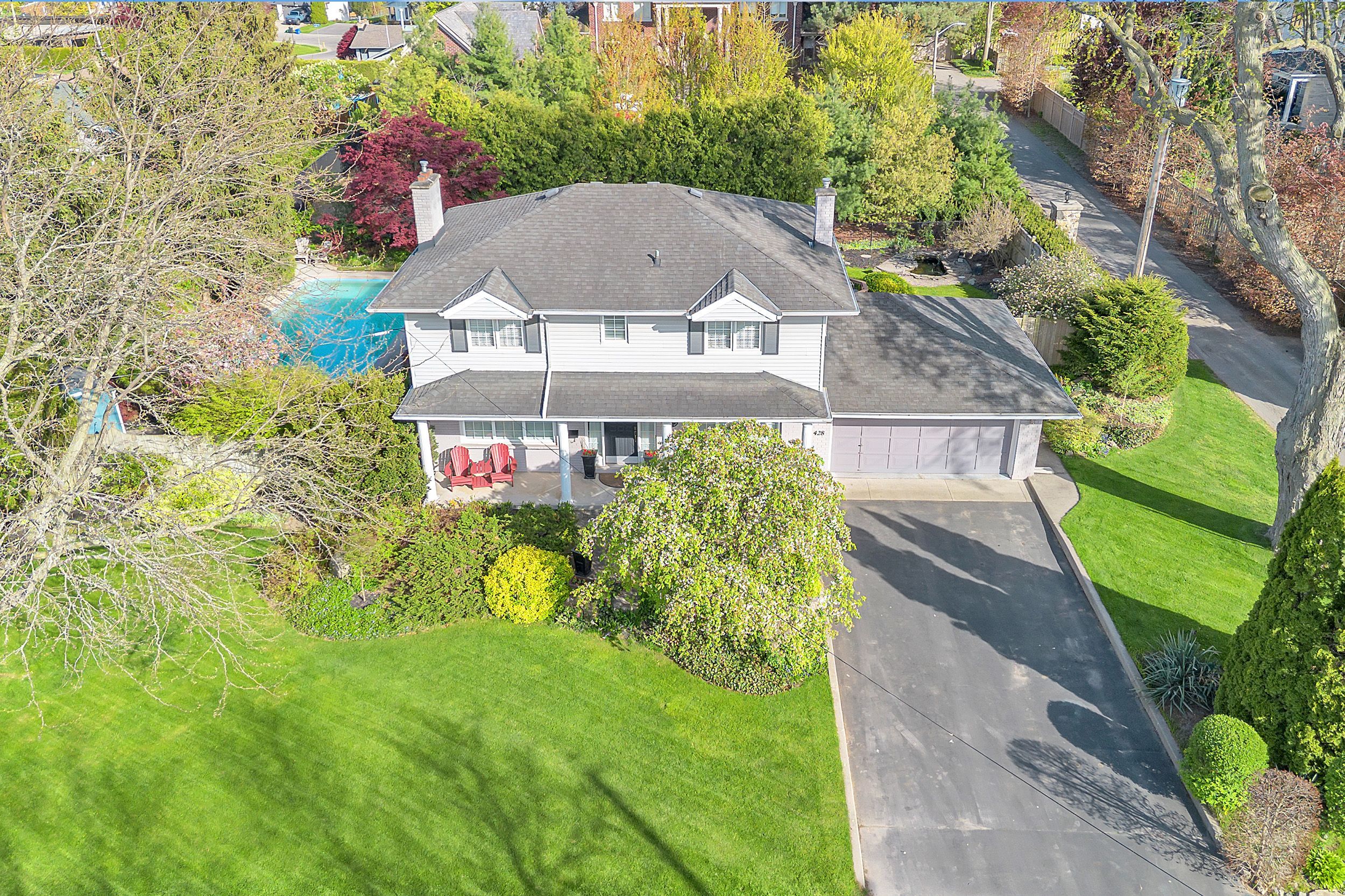 Welcome to this meticulously maintained two-storey home in the highly coveted and peaceful aldershot south community. Offering over 3,200 sq ft of beautifully finished living space, this stunning 3+1 bedroom, 2. 5 bathroom home perfectly blends elegance, comfort, and everyday functionality. Set on a beautifully landscaped lot designed for exceptional privacy, this home offers true tranquility in the city. Start your mornings on the charming covered front porch, where friendly neighbours and a strong sense of community make this neighbourhood so special. The bright, chef's kitchen is designed to impress with quartz countertops, breakfast bar, high-end appliances, and a separate beverage fridge. The spectacular family room offers cathedral ceilings, two skylights, and a dramatic wall of windows. Upstairs, retreat to the spacious primary suite alongside two generously sized bedrooms. The spa-inspired 5-piece bathroom features a glass-enclosed shower, double quartz vanity, and a luxurious bainultra freestanding soaker tub with massaging jets and chromatherapy lighting. The finished basement provides incredible versatility with a large rec room plus an oversized bedroom and an adjacent 3-piece bathroom, perfect for guests, teens, or multi-generational living. Other features include: hardwood floors, classic wainscoting, and elegant crown moulding throughout. The separate dining room showcases a striking coffered ceiling, ideal for hosting memorable gatherings. Step outside to your private backyard oasis featuring a tranquil pond, lush gardens, and a two-tier composite deck. The impressive 36' x 18' in-ground gunite saltwater pool with non-slip rubaroc surround is ready for unforgettable summer entertaining. An in-ground sprinkler system keeps the grounds pristine with ease. Additional highlights include a double garage and private driveway with parking for 6 vehicles. Enjoy this unbeatable location just steps to the rbg, lakefront trails, lasalle park & spencer smith park