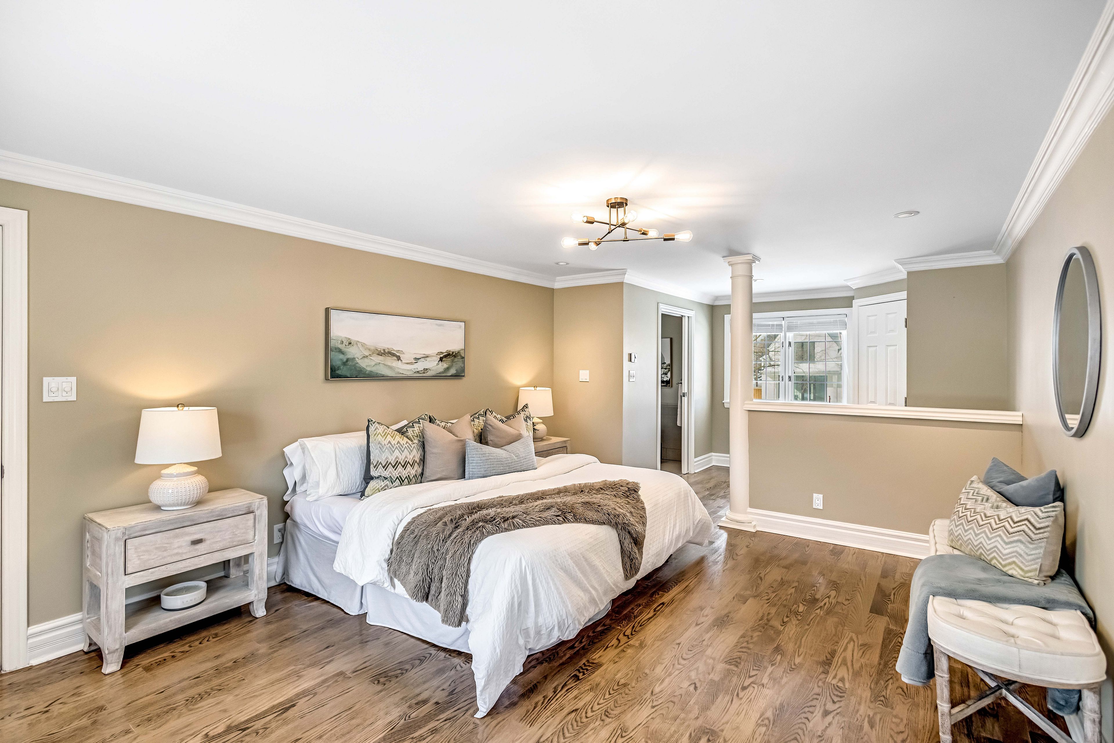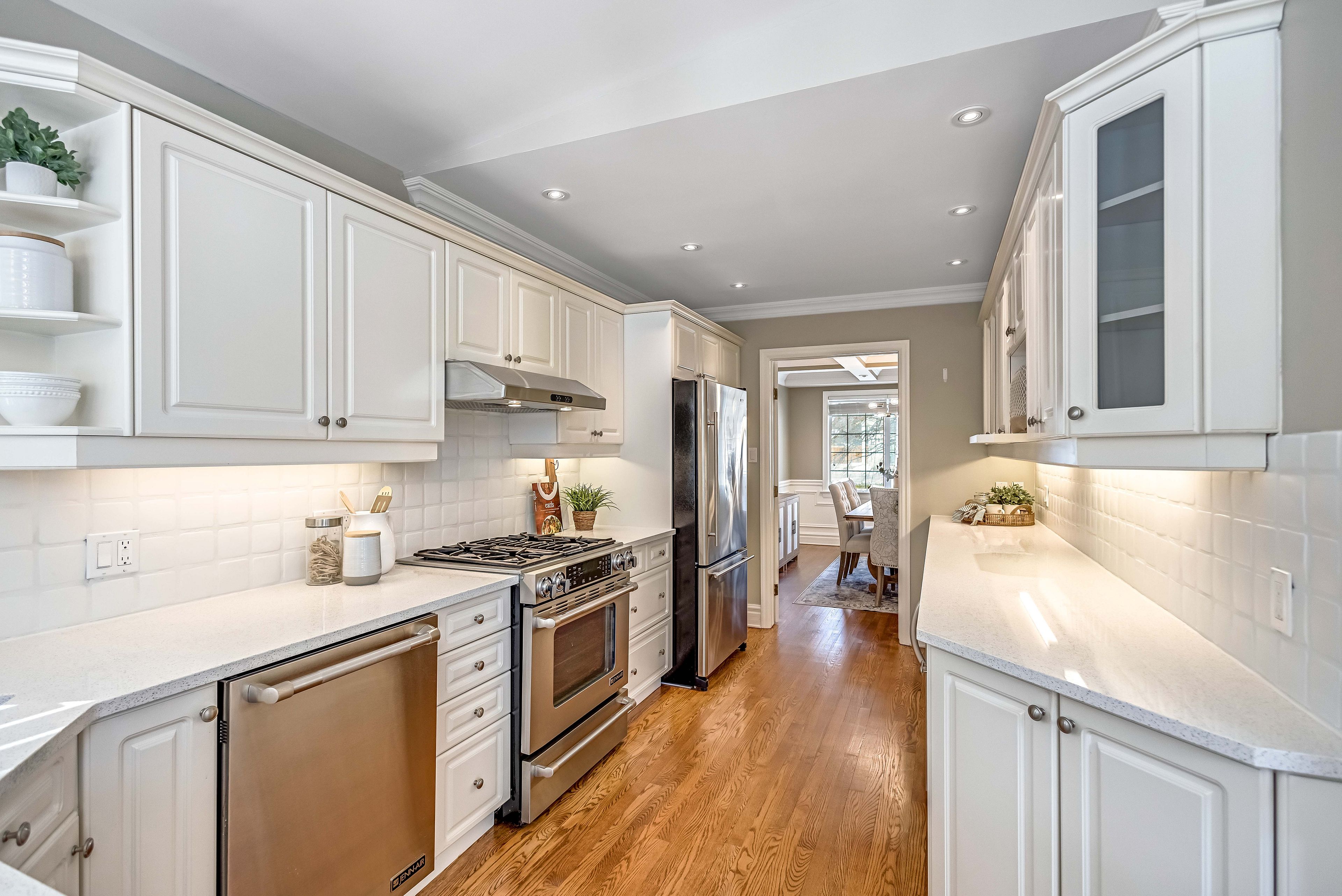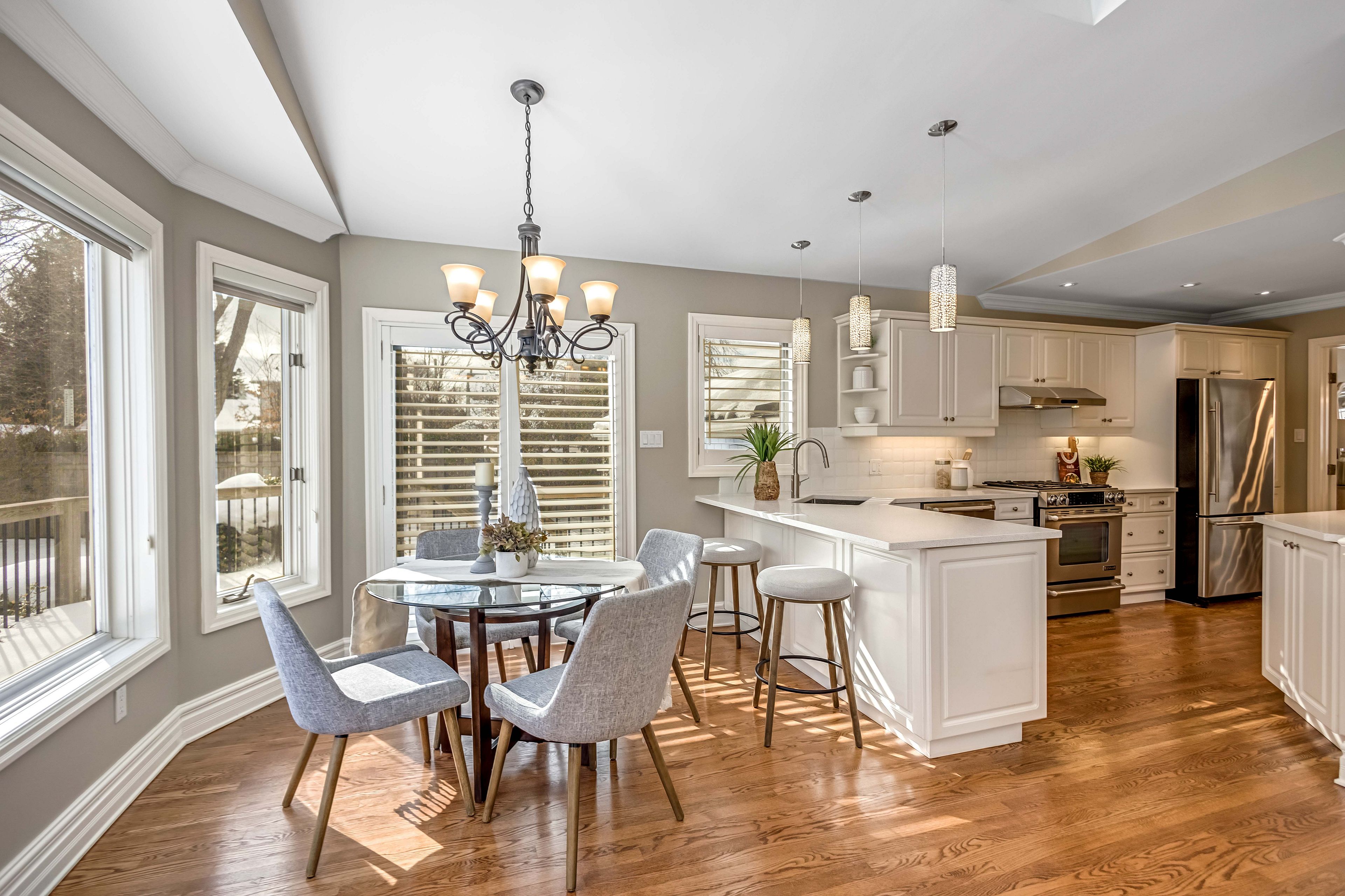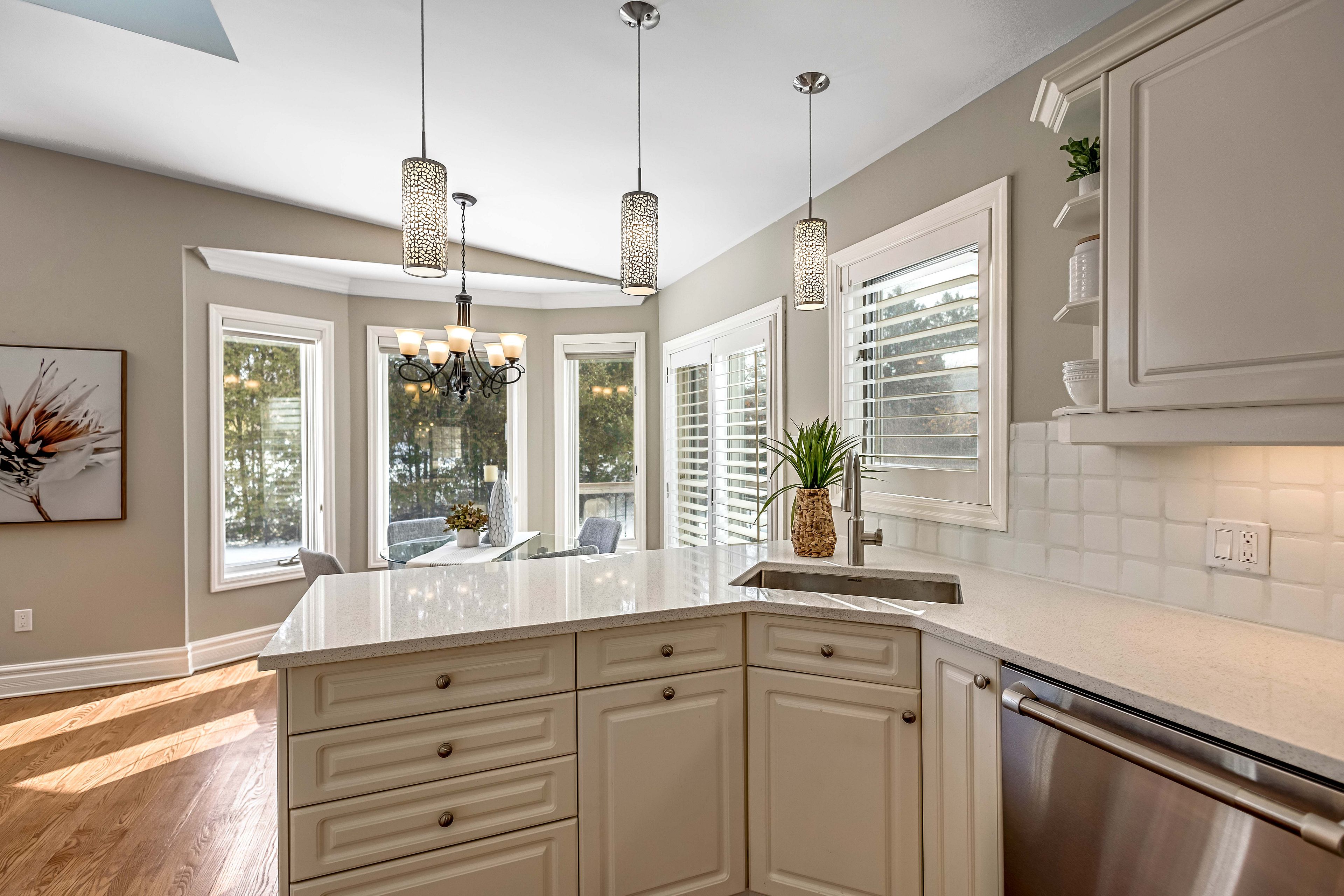 Welcome to this meticulously maintained two-storey home in the highly coveted and peaceful aldershot south community. Offering over 3,200 sq ft of beautifully finished living space, this stunning 3+1 bedroom, 2. 5 bathroom home perfectly blends elegance, comfort, and everyday functionality. Set on a beautifully landscaped lot designed for exceptional privacy, this home offers true tranquility in the city. Start your mornings on the charming covered front porch, where friendly neighbours and a strong sense of community make this neighbourhood so special. The bright, chef's kitchen is designed to impress with quartz countertops, breakfast bar, high-end appliances, and a separate beverage fridge. The spectacular family room offers cathedral ceilings, two skylights, and a dramatic wall of windows. Upstairs, retreat to the spacious primary suite alongside two generously sized bedrooms. The spa-inspired 5-piece bathroom features a glass-enclosed shower, double quartz vanity, and a luxurious bainultra freestanding soaker tub with massaging jets and chromatherapy lighting. The finished basement provides incredible versatility with a large rec room plus an oversized bedroom and an adjacent 3-piece bathroom, perfect for guests, teens, or multi-generational living. Other features include: hardwood floors, classic wainscoting, and elegant crown moulding throughout. The separate dining room showcases a striking coffered ceiling, ideal for hosting memorable gatherings. Step outside to your private backyard oasis featuring a tranquil pond, lush gardens, and a two-tier composite deck. The impressive 36' x 18' in-ground gunite saltwater pool with non-slip rubaroc surround is ready for unforgettable summer entertaining. An in-ground sprinkler system keeps the grounds pristine with ease. Additional highlights include a double garage and private driveway with parking for 6 vehicles. Enjoy this unbeatable location just steps to the rbg, lakefront trails, lasalle park & spencer smith park