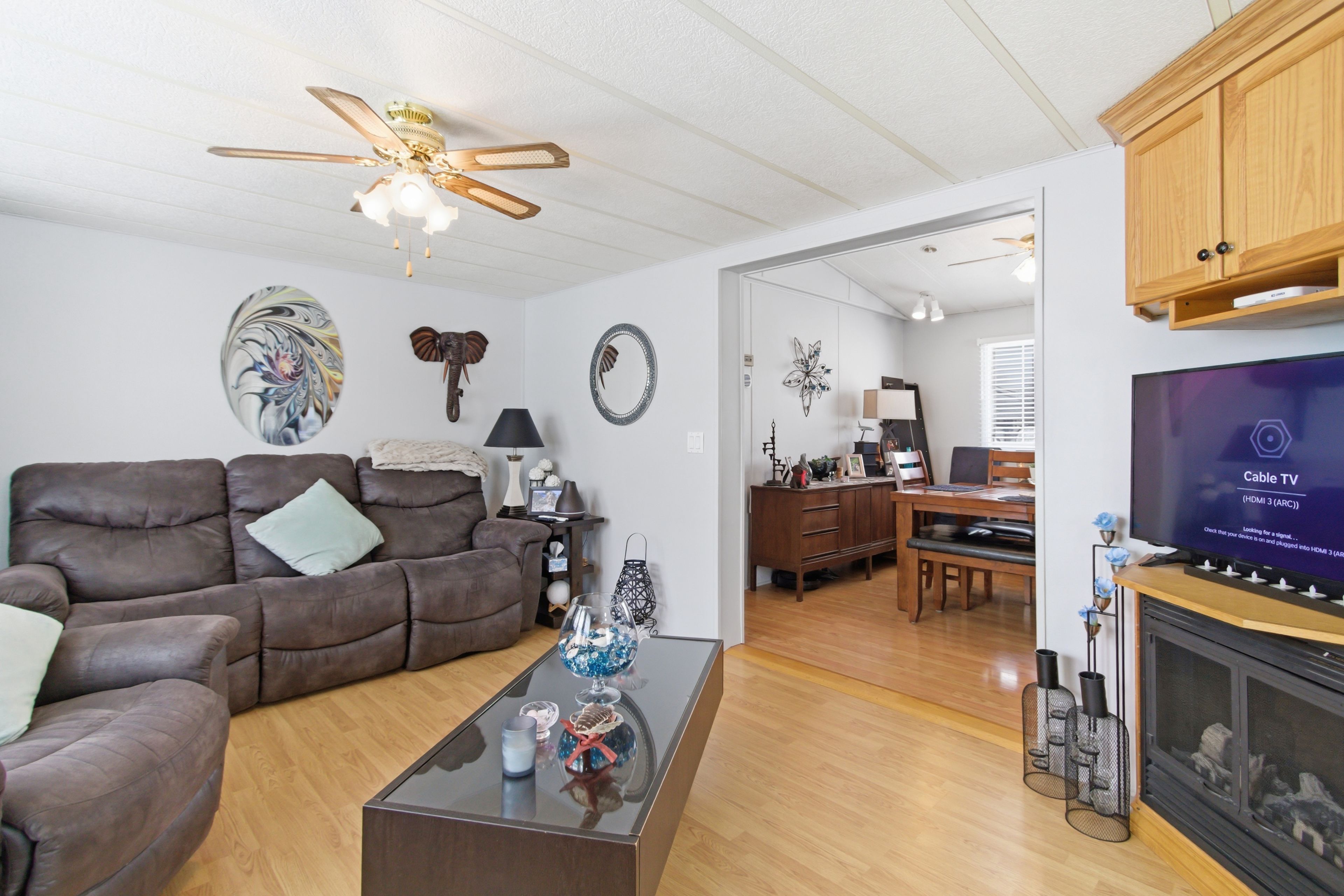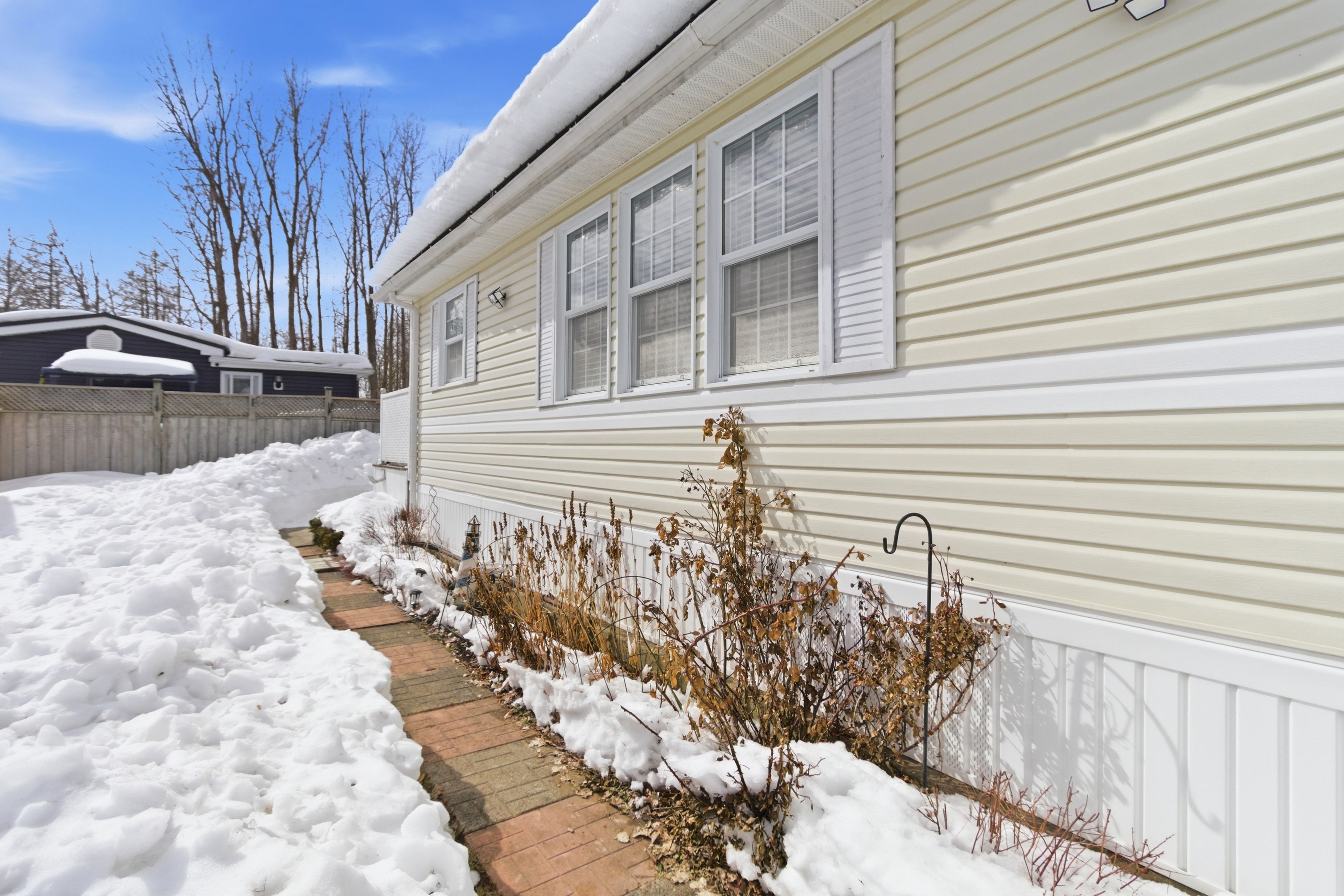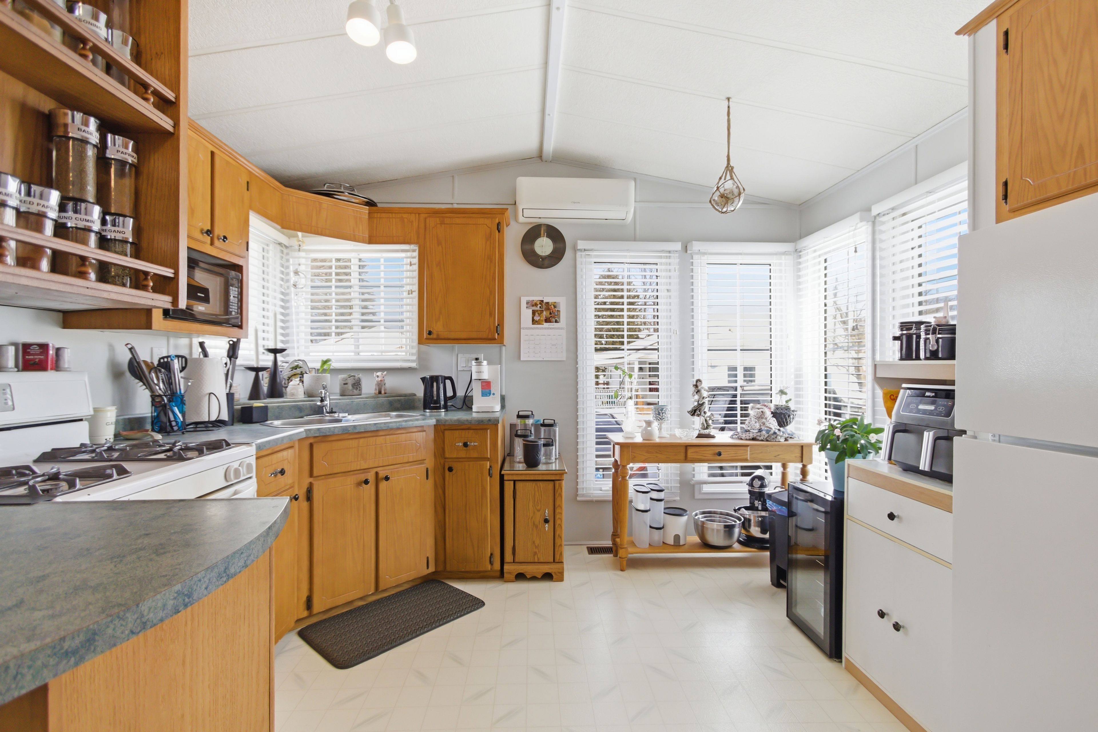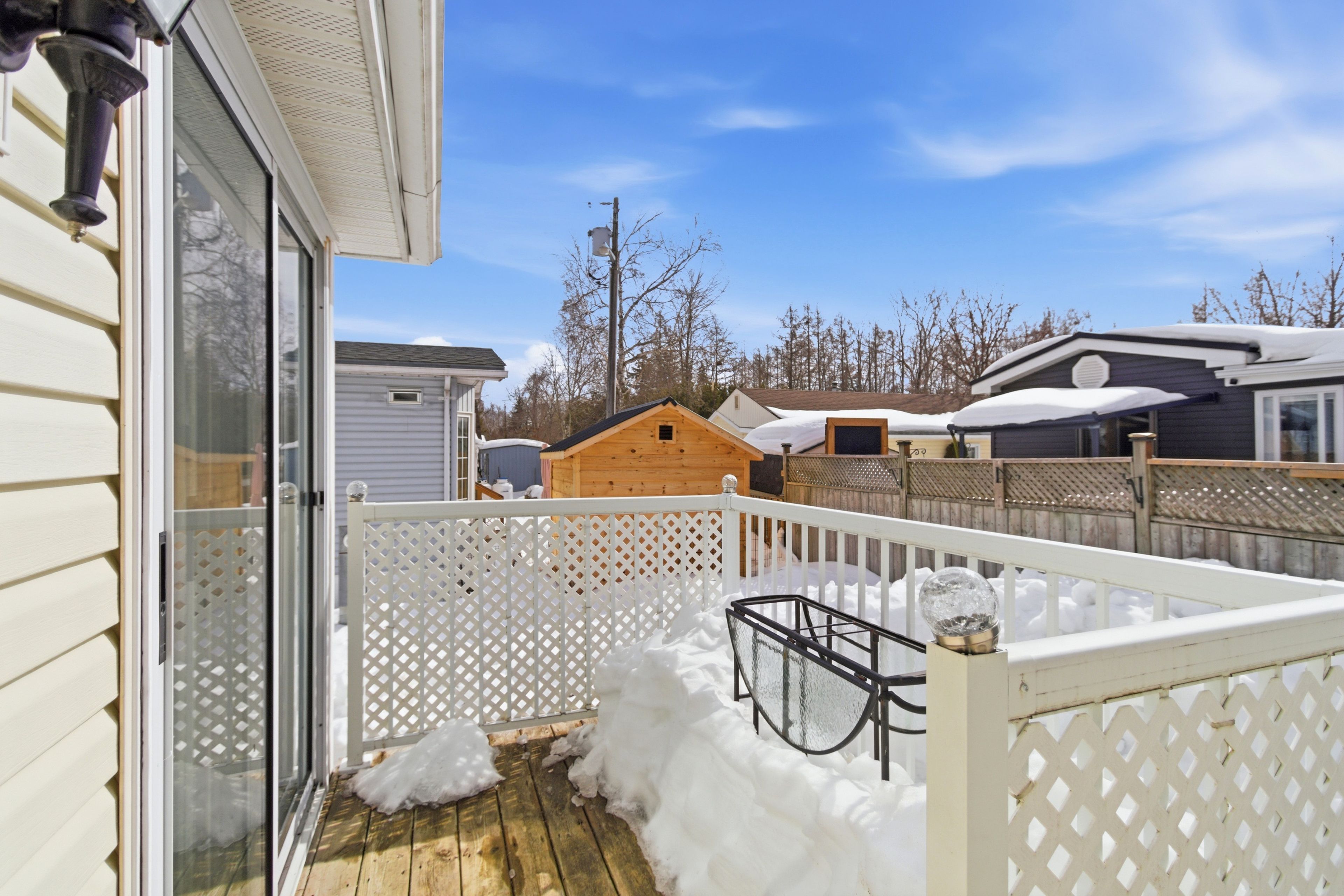 Welcome to 428 pine pass, located in the desirable all-season section of maple leaf acres, a vibrant land lease community just minutes from belwood lake. This spacious 2 bedroom + den/mudroom, 2 bathroom home offers plenty of room for comfortable everyday living and hosting family and friends. Step inside to a bright and inviting family room filled with natural light, creating a warm welcome as soon as you enter the home. The kitchen flows into a generous dining area, providing ample space for family meals and gatherings. The large primary bedroom features two windows that bring in plenty of sunshine along with excellent closet storage and is conveniently located just steps from a full 3-piece bathroom. The second bedroom offers flexibility for guests, a home office, or hobby space. The versatile mudroom/den includes a powder room, stacked laundry, and additional space that could accommodate a pull-out couch or seating area. A sliding door leads to a private backyard deck, perfect for relaxing outdoors. The yard features a lovely stone walkway and side garden ready to bloom this spring, along with a shed providing extra storage for gardening tools, a golf cart, or outdoor equipment. The home also features a paved driveway with parking for two vehicles. Recent updates include a steel roof (2021), new furnace (2025), and hot water heater (2025), offering peace of mind and making this a well-maintained home you can move into without worry. Enjoy everything maple leaf acres has to offer, including multiple pools, recreational facilities, community events, and close proximity to the belwood lake boat launch and outdoor activities. A wonderful opportunity to enjoy relaxed, resort-style living in a welcoming community.