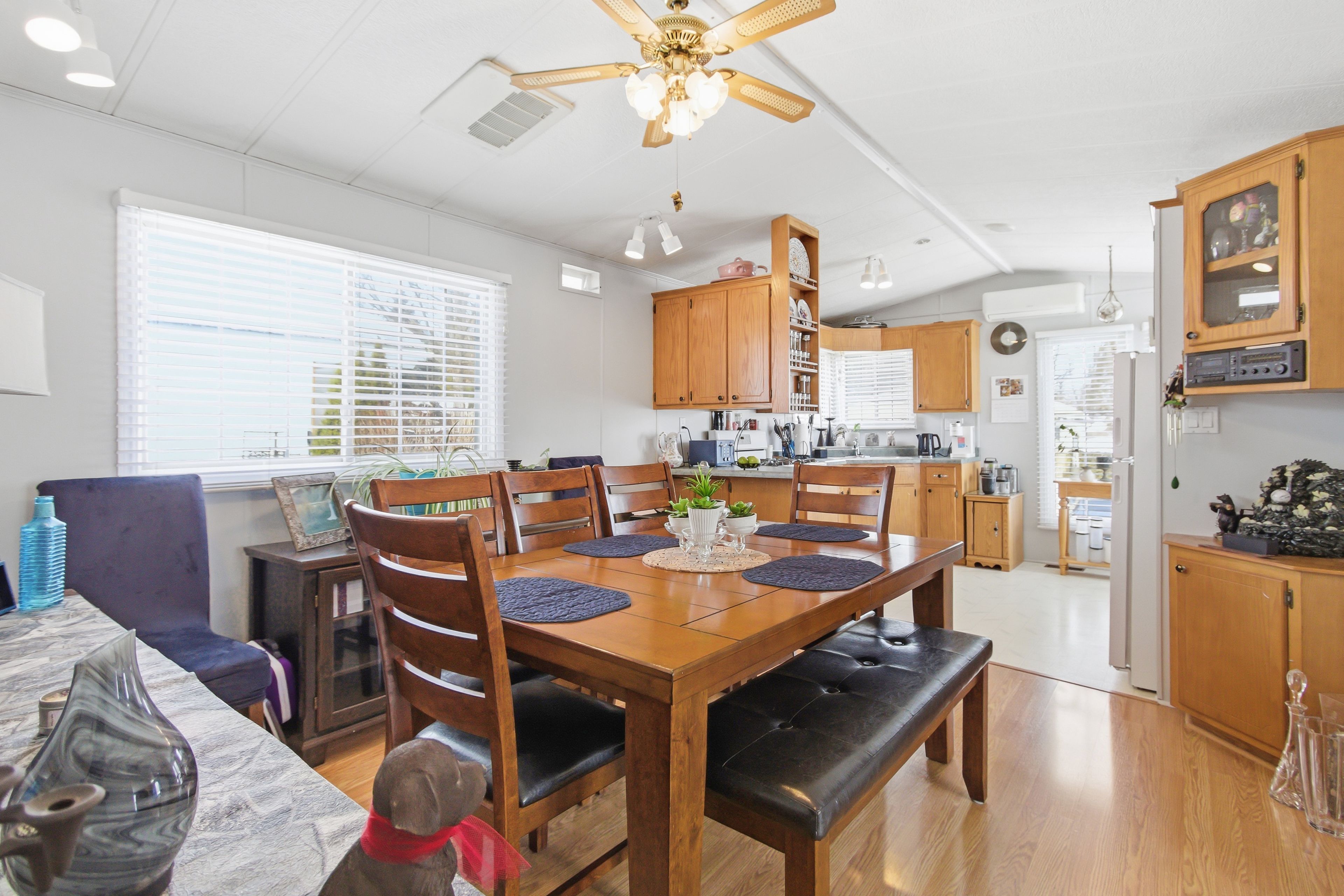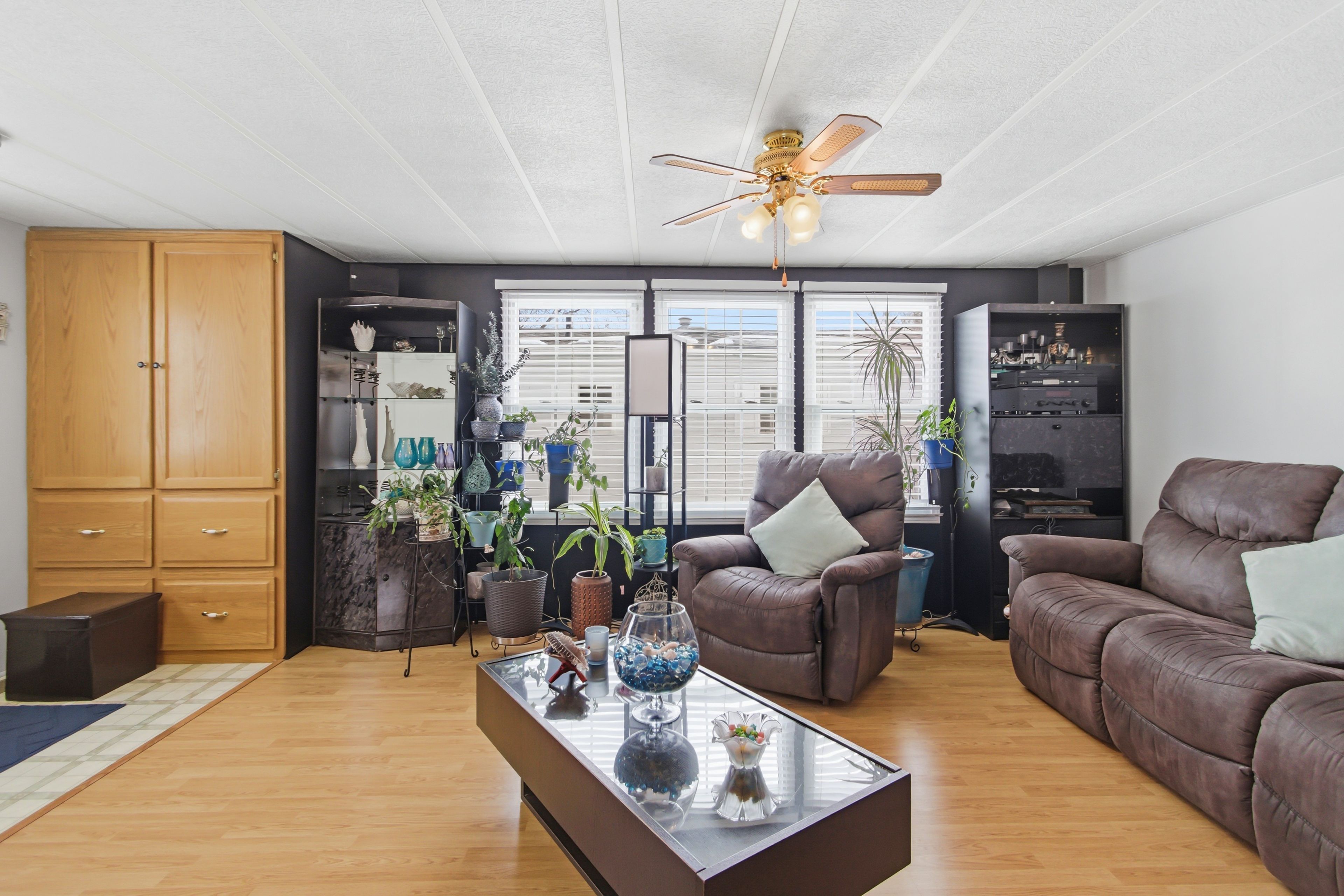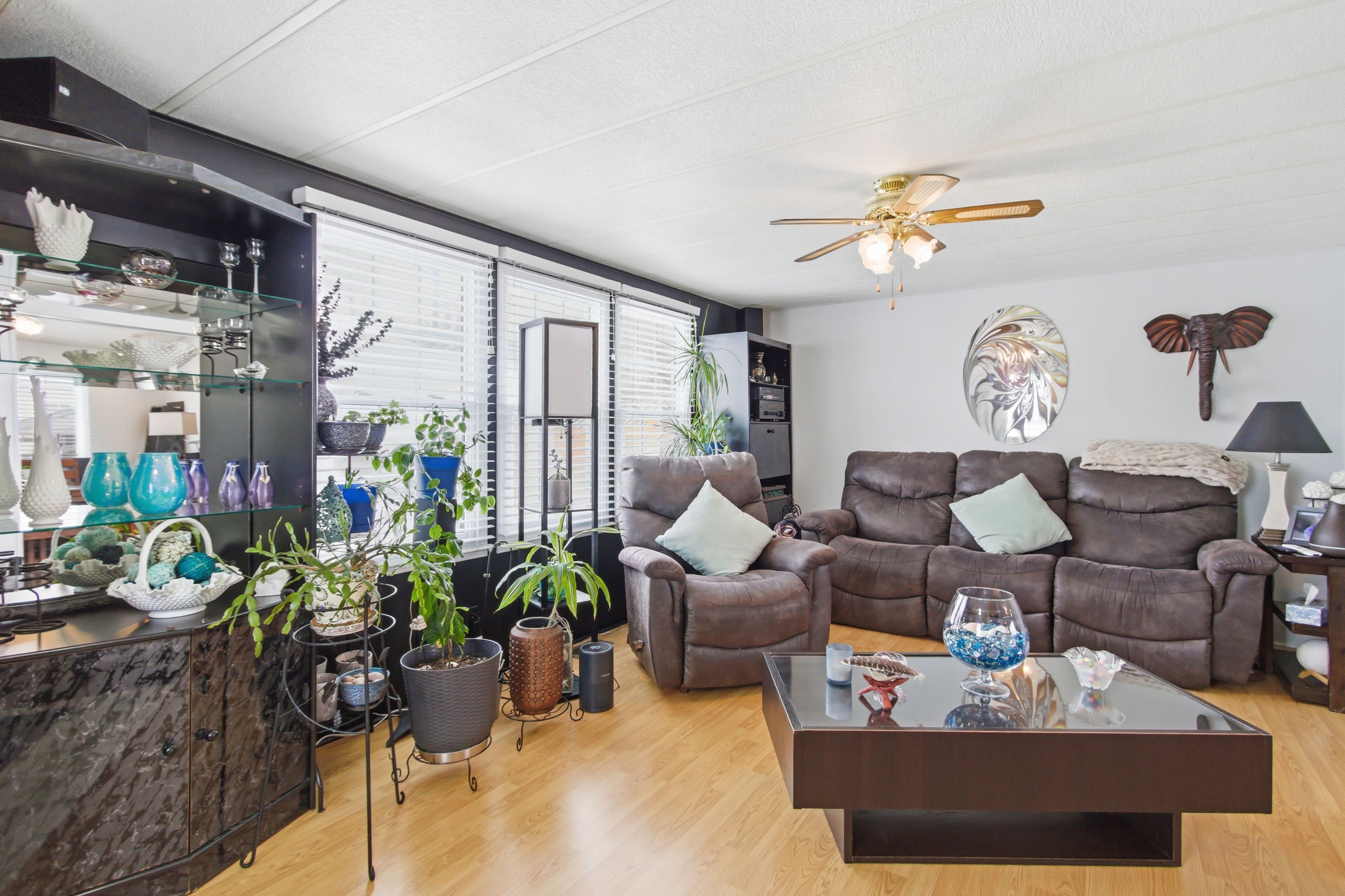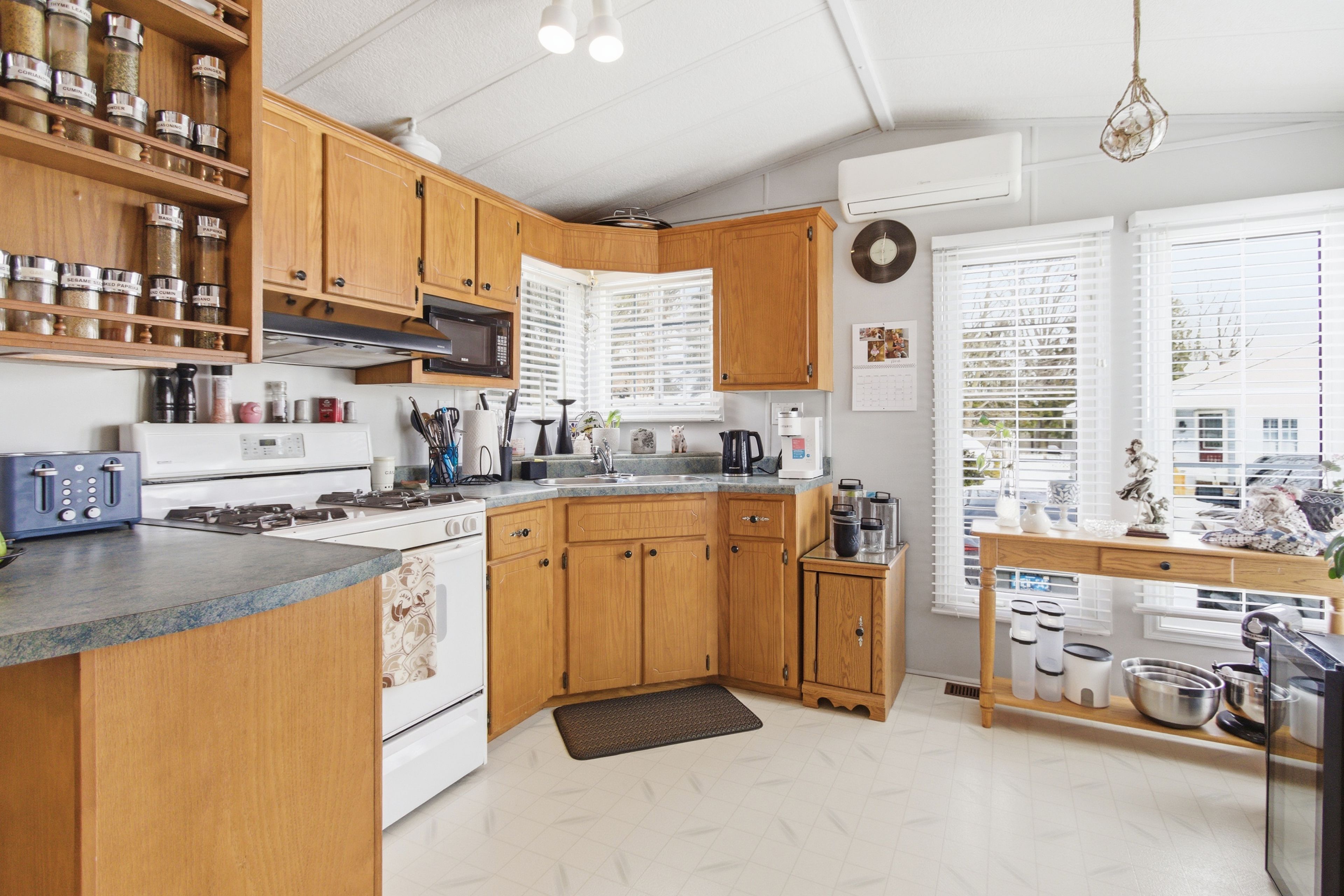 Welcome to 428 pine pass, located in the desirable all-season section of maple leaf acres, a vibrant land lease community just minutes from belwood lake. This spacious 2 bedroom + den/mudroom, 2 bathroom home offers plenty of room for comfortable everyday living and hosting family and friends. Step inside to a bright and inviting family room filled with natural light, creating a warm welcome as soon as you enter the home. The kitchen flows into a generous dining area, providing ample space for family meals and gatherings. The large primary bedroom features two windows that bring in plenty of sunshine along with excellent closet storage and is conveniently located just steps from a full 3-piece bathroom. The second bedroom offers flexibility for guests, a home office, or hobby space. The versatile mudroom/den includes a powder room, stacked laundry, and additional space that could accommodate a pull-out couch or seating area. A sliding door leads to a private backyard deck, perfect for relaxing outdoors. The yard features a lovely stone walkway and side garden ready to bloom this spring, along with a shed providing extra storage for gardening tools, a golf cart, or outdoor equipment. The home also features a paved driveway with parking for two vehicles. Recent updates include a steel roof (2021), new furnace (2025), and hot water heater (2025), offering peace of mind and making this a well-maintained home you can move into without worry. Enjoy everything maple leaf acres has to offer, including multiple pools, recreational facilities, community events, and close proximity to the belwood lake boat launch and outdoor activities. A wonderful opportunity to enjoy relaxed, resort-style living in a welcoming community.