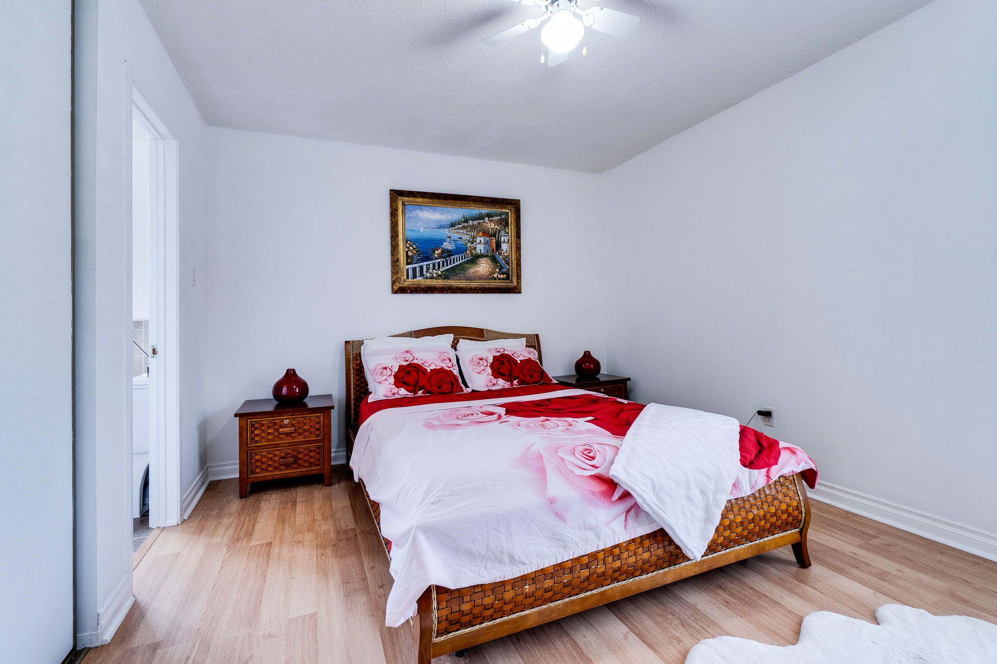 Welcome to this beautiful 4-level backsplit, perfectly tucked away on a quiet cul-de-sac and set on a rare pie-shaped lot backing directly onto mccauley green park and its scenic walking trails. This rare find features a double garage and offers the perfect balance of privacy, space, and convenience in a highly sought-after, family-friendly neighborhood. Step inside to a bright, open-concept layout enhanced by a skylight and soaring cathedral ceilings in the living and dining rooms. Elegant california shutters, hardwood floors throughout, and a striking electric fireplace create a warm yet modern ambiance. The gourmet kitchen is a chef's delight, showcasing granite countertops, custom cabinetry, undermount lighting, a center island, and direct access to a fully updated enclosed porch perfect for casual dining or morning coffee. On the lower level, the spacious family room with a cozy gas fireplace opens to a charming sunroom, offering year-round enjoyment. A versatile fourth bedroom (or home office), updated bathrooms, and a large finished rec room provide plenty of flexibility for today's lifestyle. Outside, your private backyard oasis awaits. Enjoy summer entertaining by the above-ground pool, or simply relax and unwind with tranquil views of nature. Close to top-rated schools, parks, hospitals, highways, shopping, and public transit, this home truly combines comfort, style, and location.