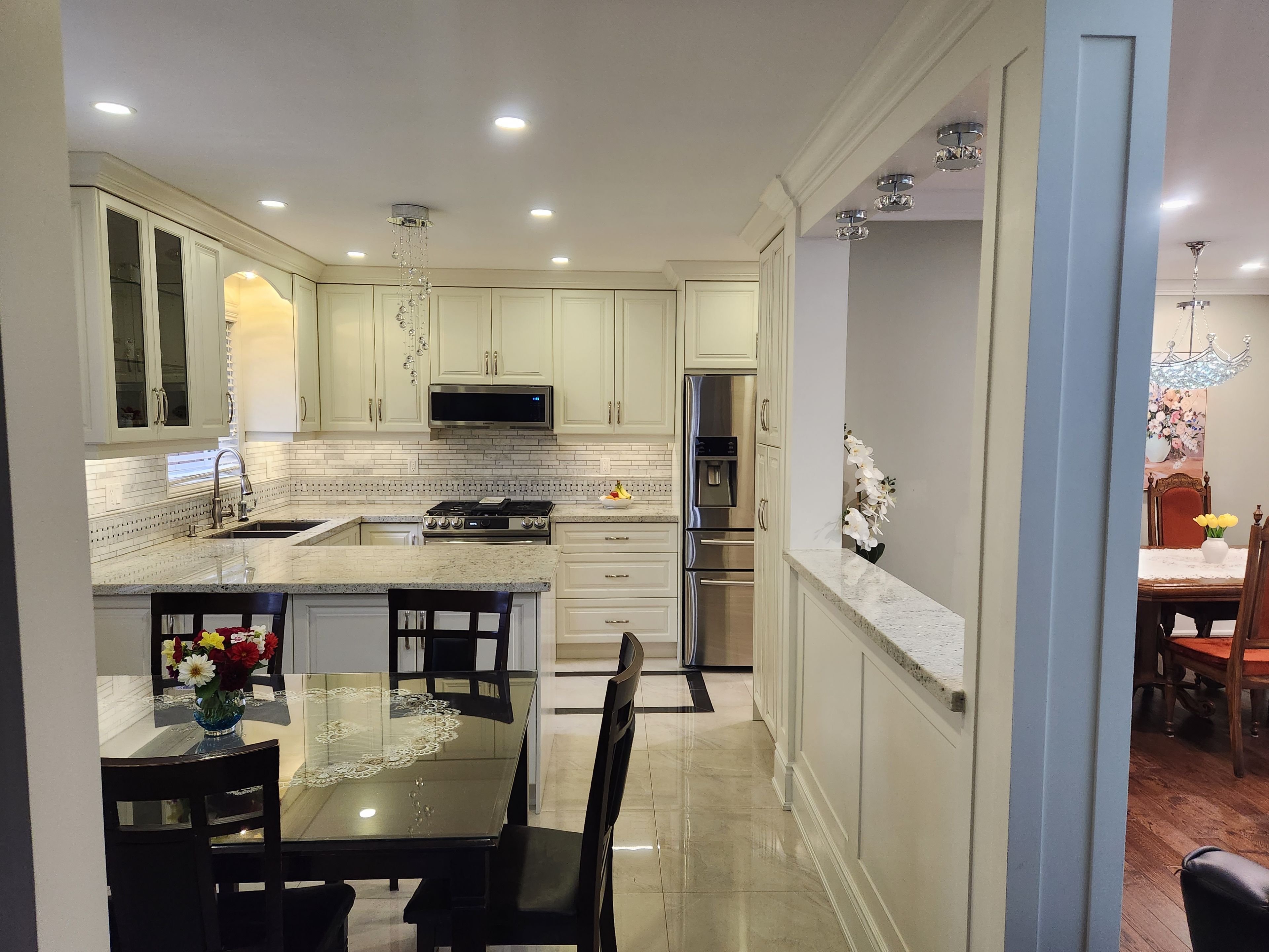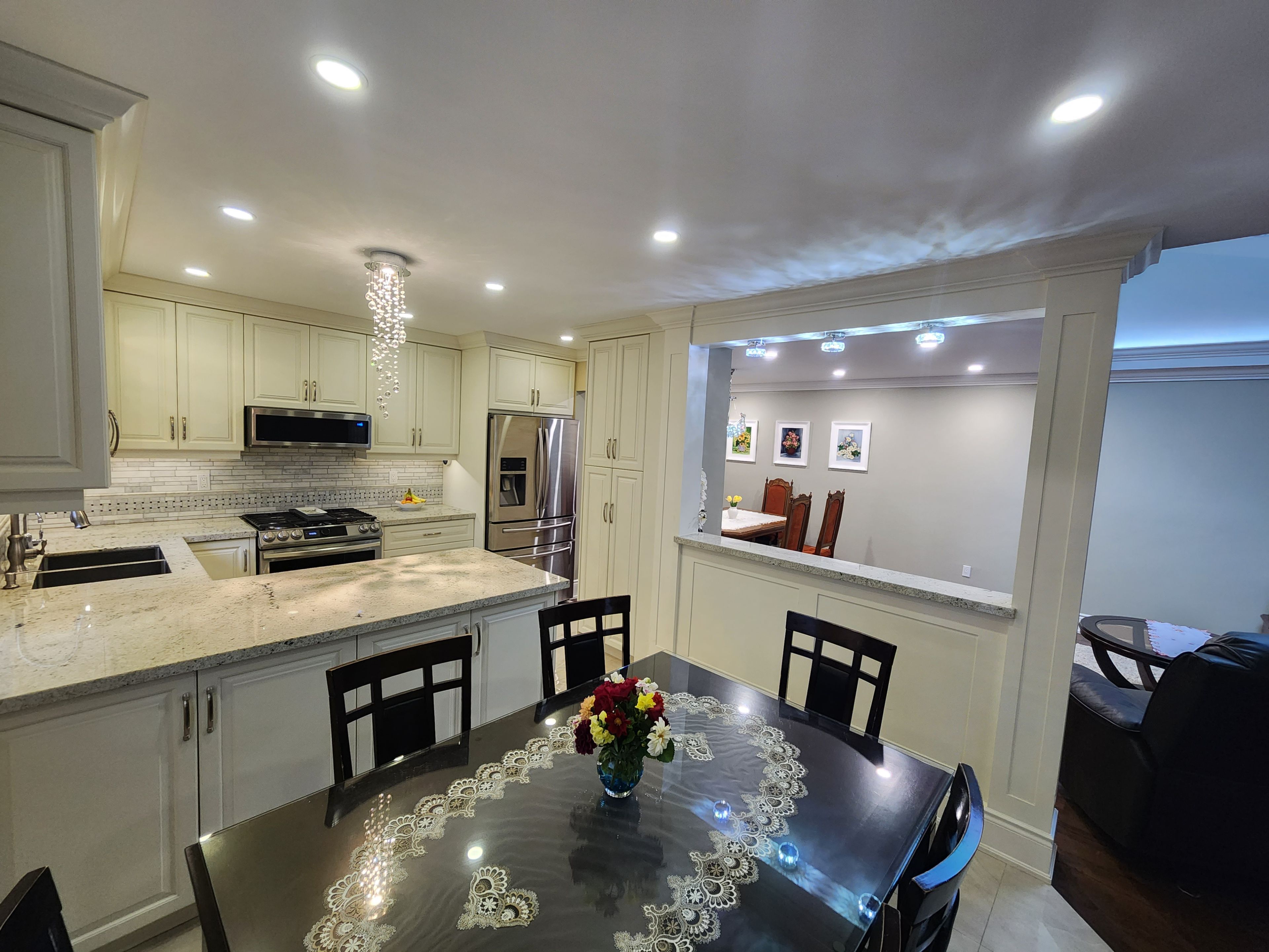 • Gourmet kitchen features stainless steel appliances and granite countertops.