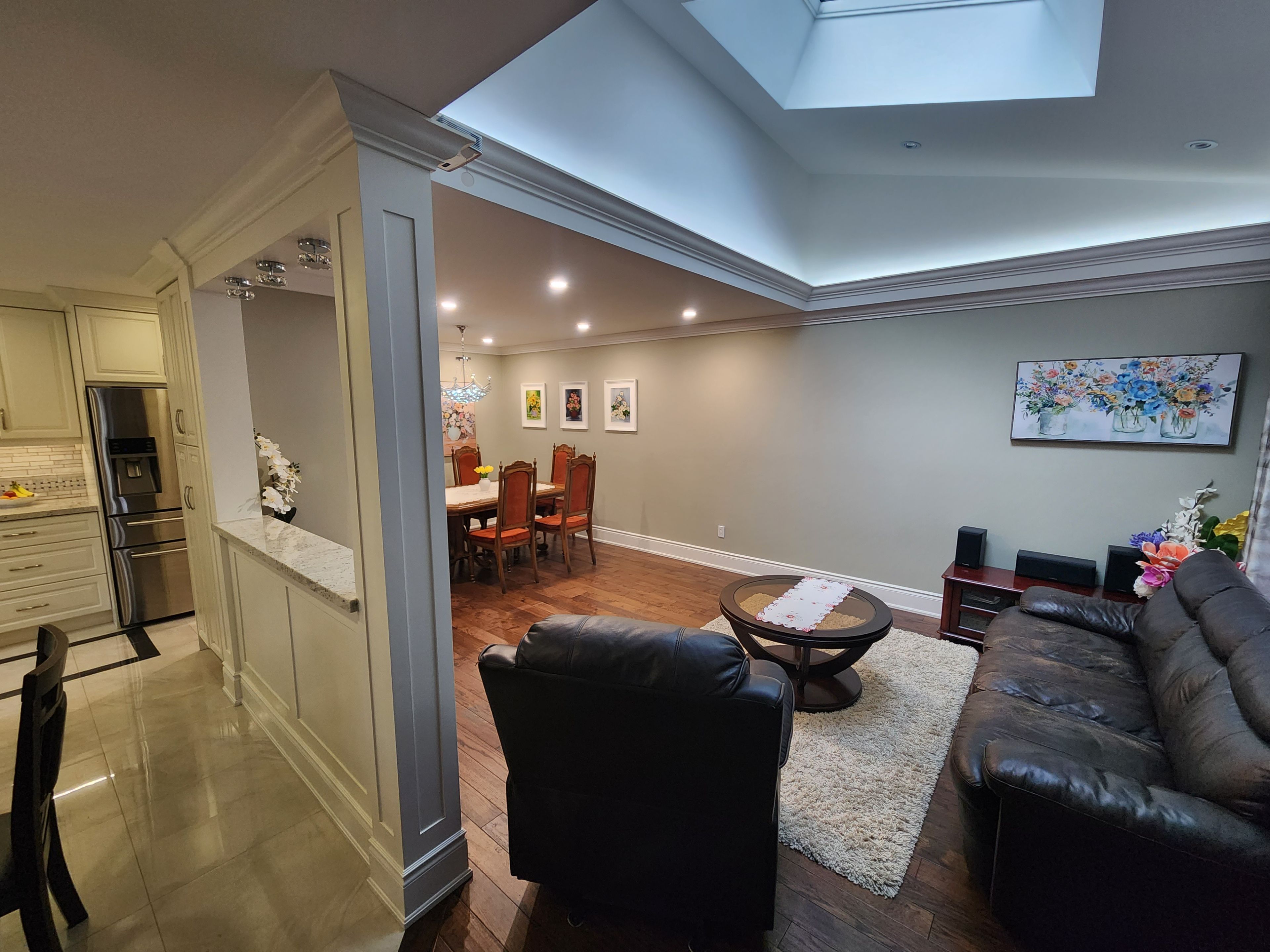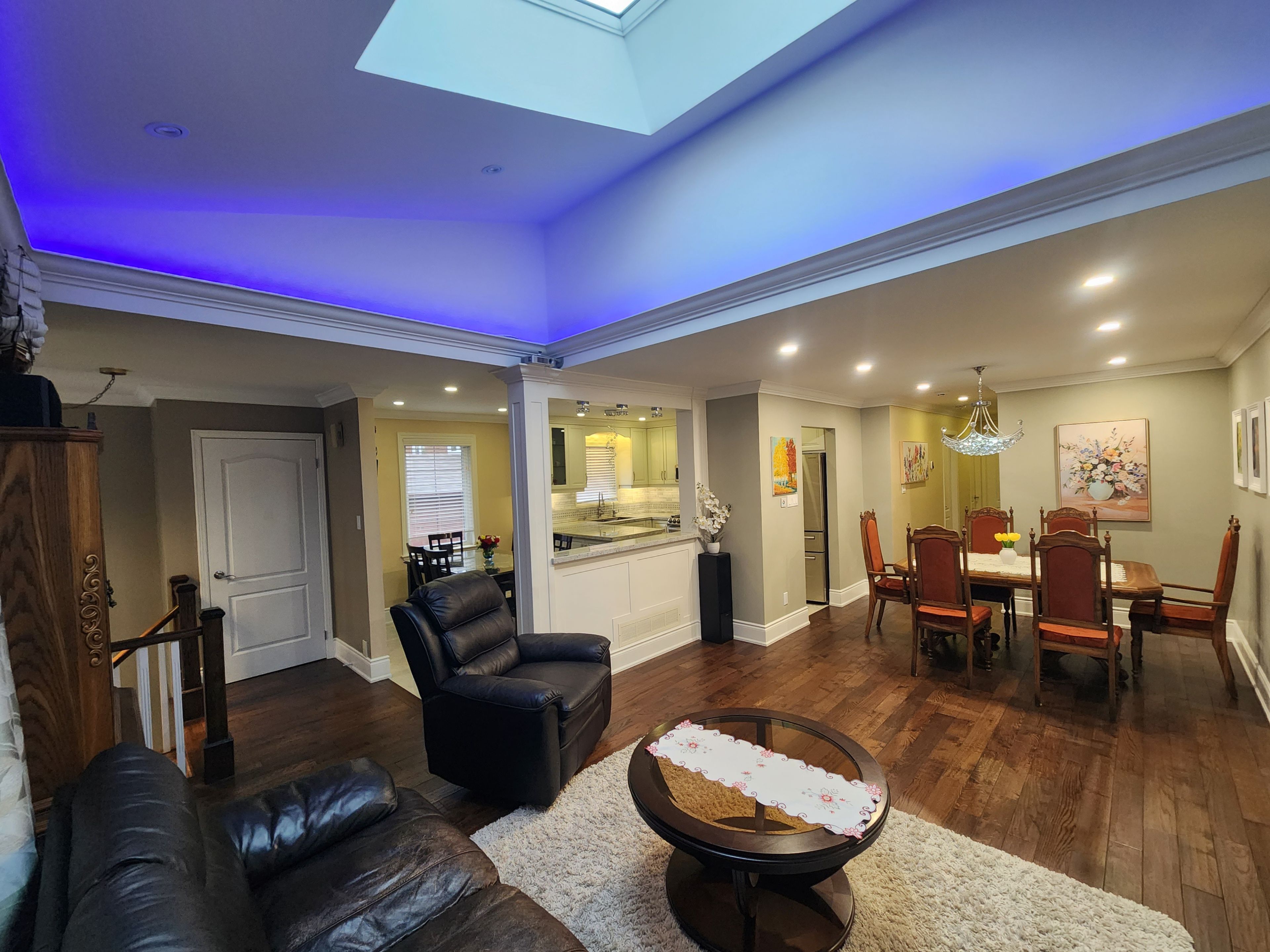 • Bright living area includes a skylight and walk-out balcony.