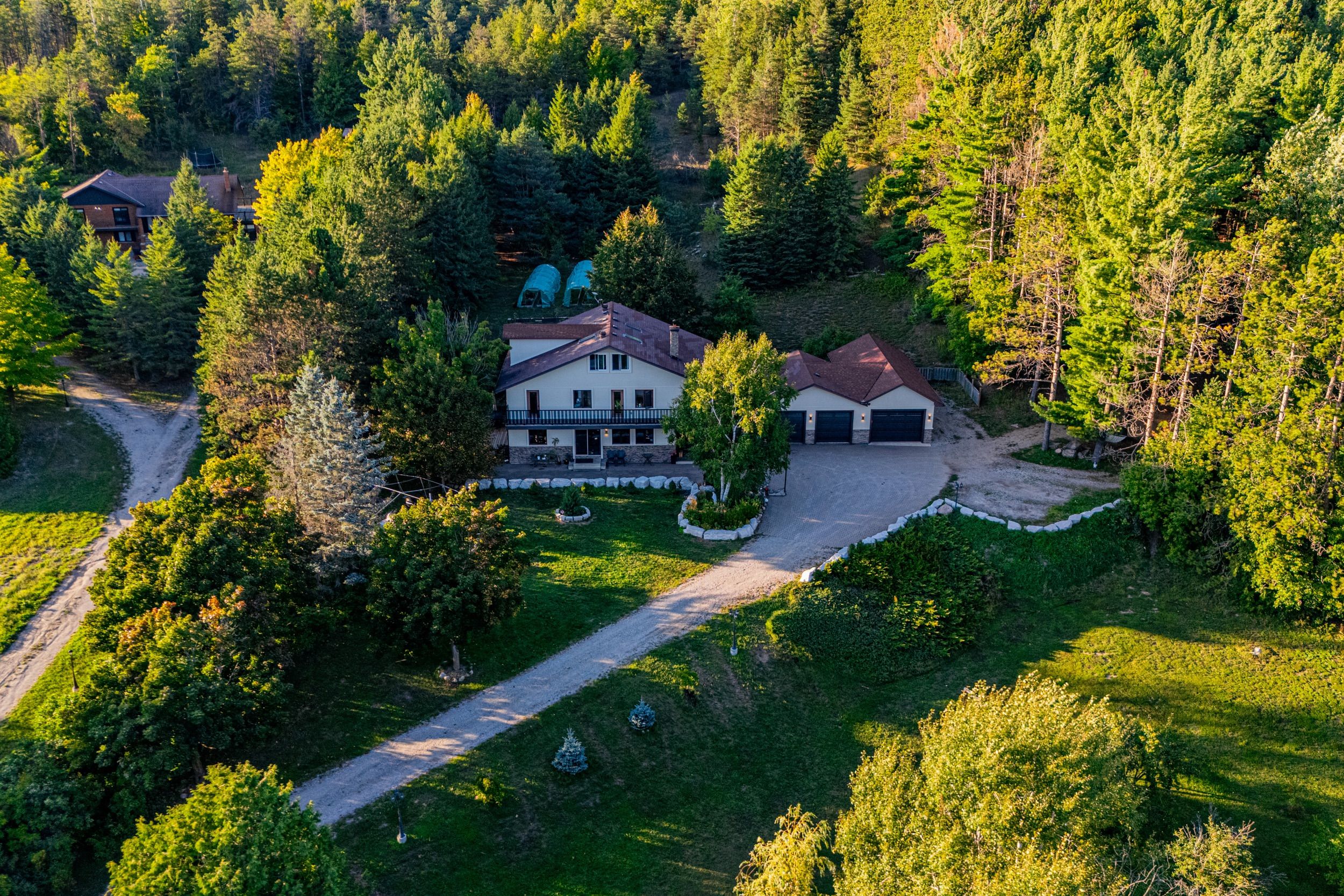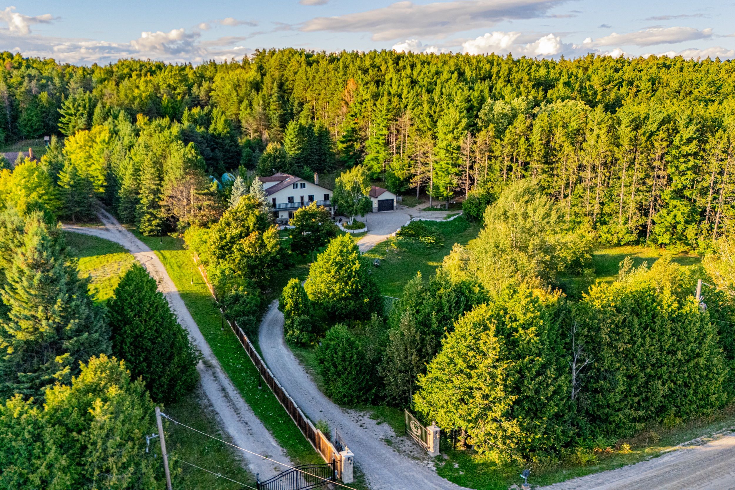 Magnificent estate-style home on over 17 acres of land, offering the perfect blend of luxury, nature and convenience. Meandering private trails, lush landscapes and stunning views create a year-round vacation retreat. A custom gate leads to an interlock driveway and parking area for 8+ vehicles and a 3-car garage with drive-through access. The main floor features a bright living room with wood-burning ceramic stove, formal dining, laundry, office and stylish 3-pc semi-ensuite. The kitchen boasts stainless steel appliances, granite countertops, backsplash, a breakfast bar and walkout to a deck. The second level offers 3 spacious bedrooms, office/study, two elegant bathrooms and a balcony with scenic views. The top-floor oversized primary suite includes skylights and a private 4-pc ensuite. The finished basement expands the living space with a great size recreation room. Enjoy an outdoor paradise just minutes from mono cliffs park, hockley valley resort, mansfield ski club, bruce trail, fine dining, craft brewery and winery. Within 30 minutes you can enjoy skiing at blue mountain or relax at wasaga beach. Vacation living year-round with quick access to airport road, combining privacy with effortless travel. A perfect place to call home!