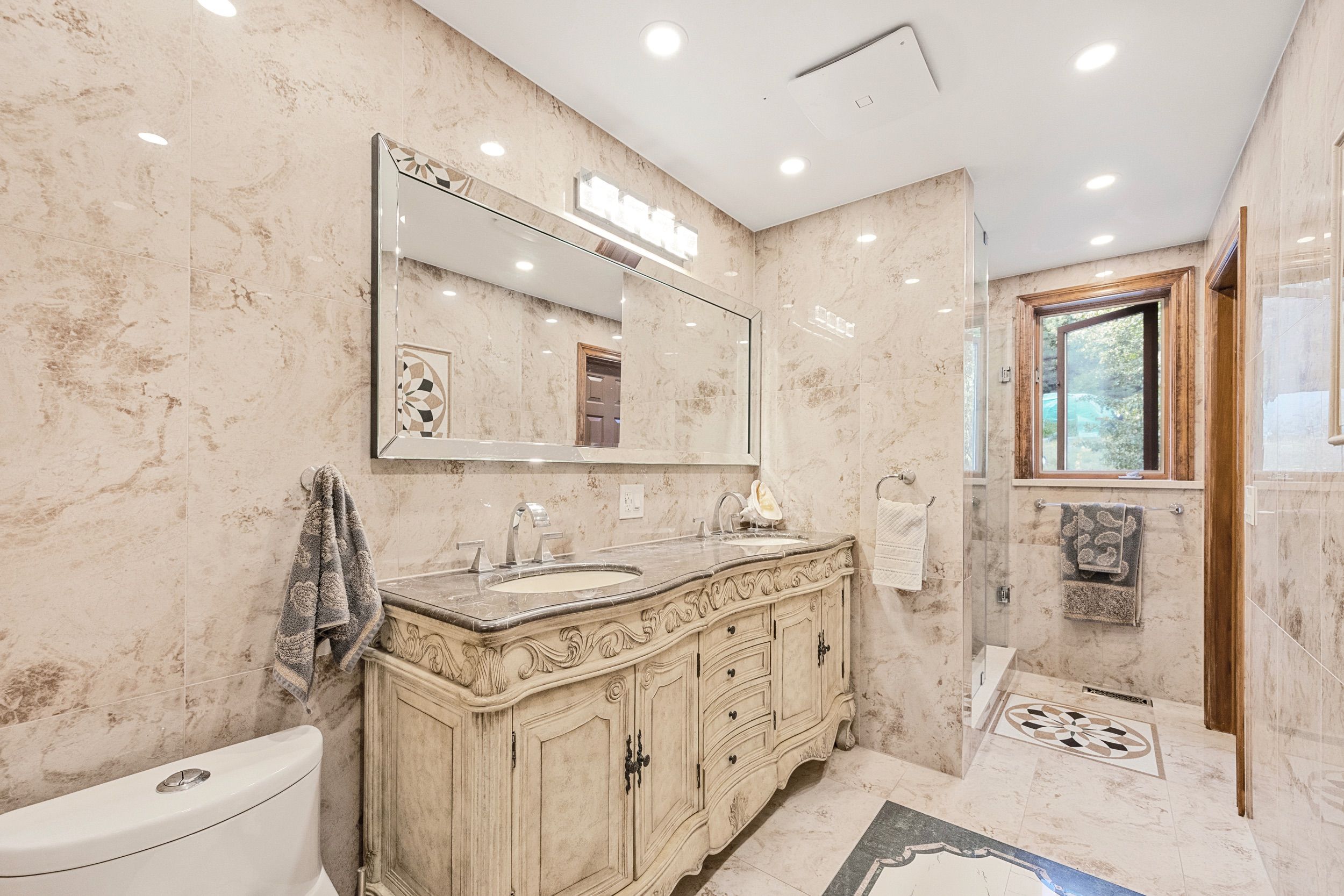 • Spacious second level features three bedrooms and two elegant bathrooms.