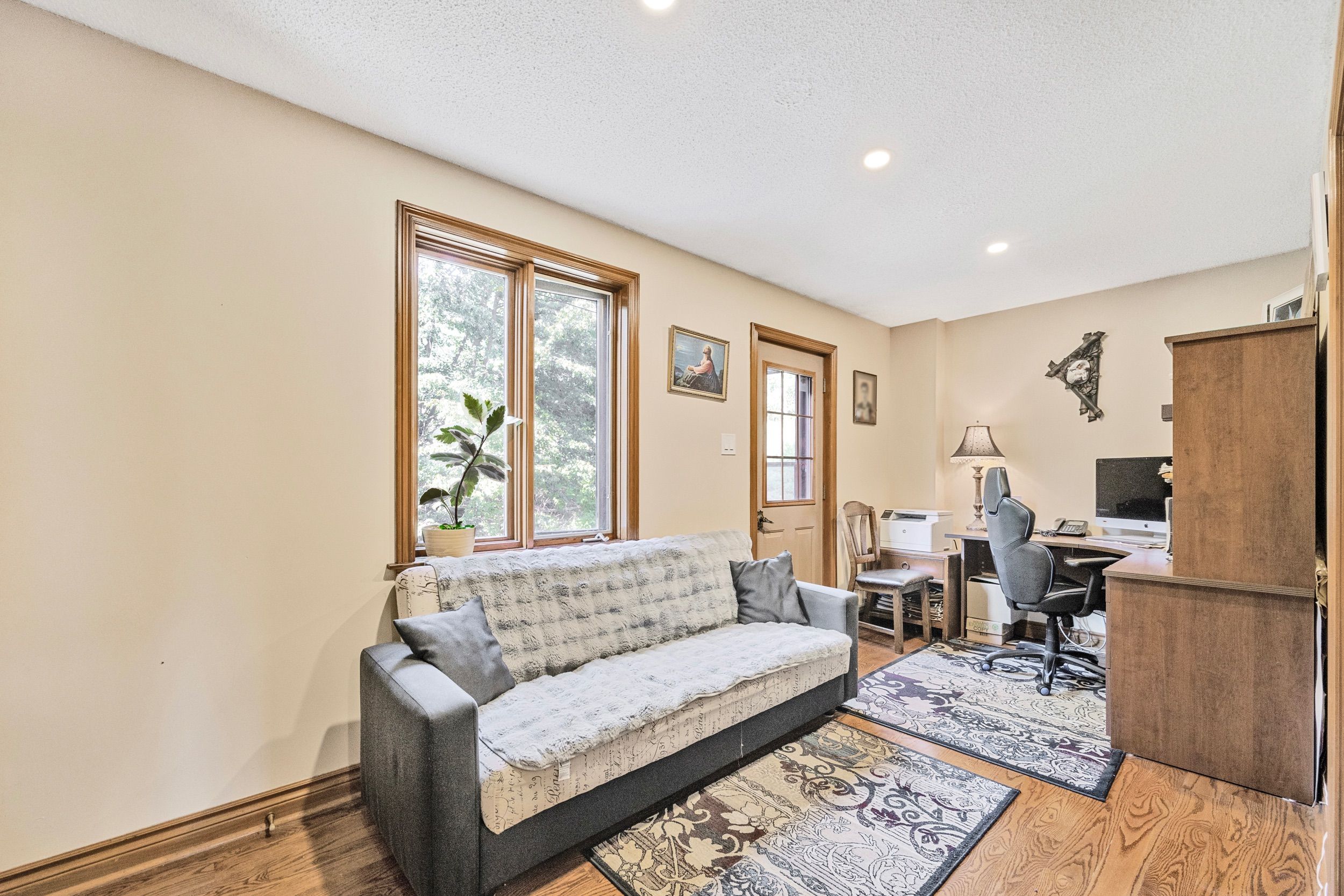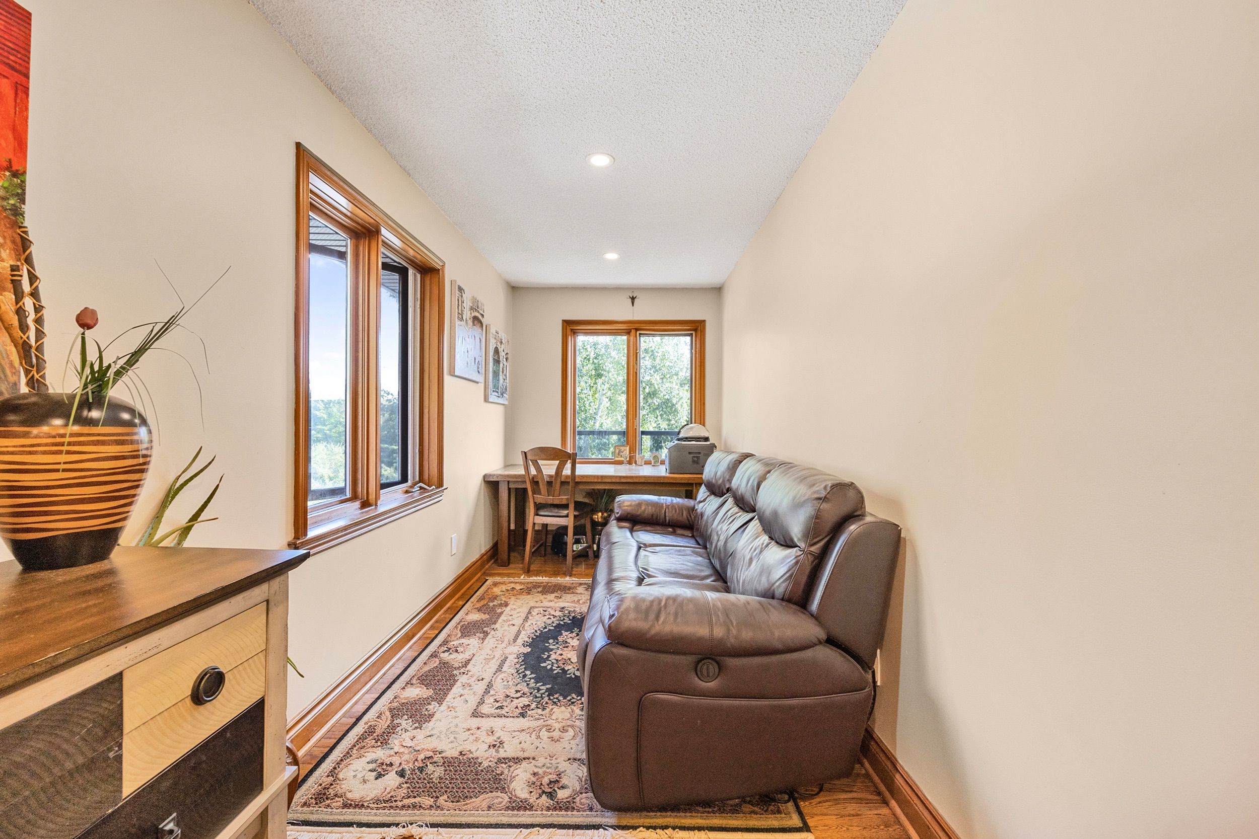 • Main floor includes bright living spaces, office, and stylish kitchen setup.