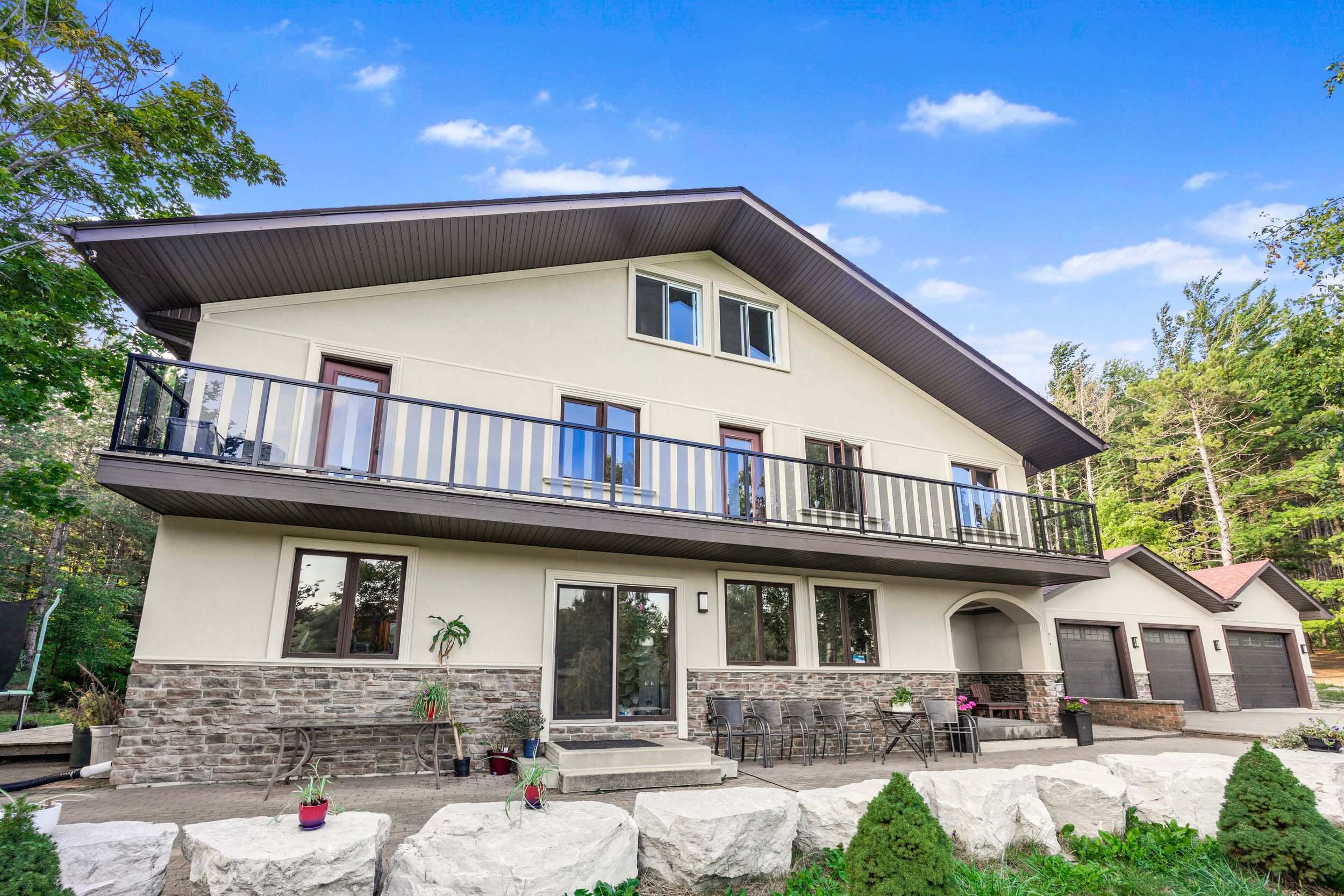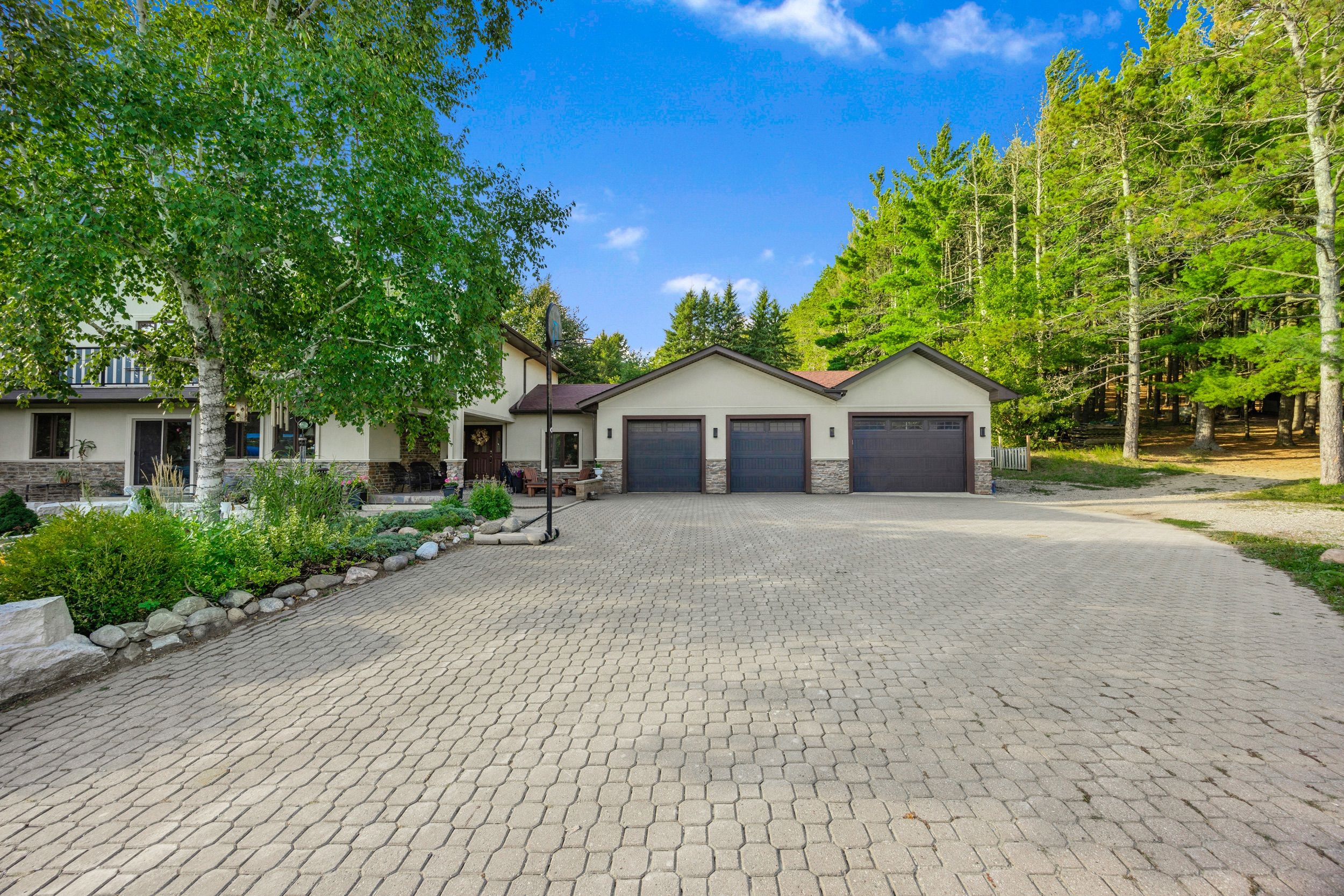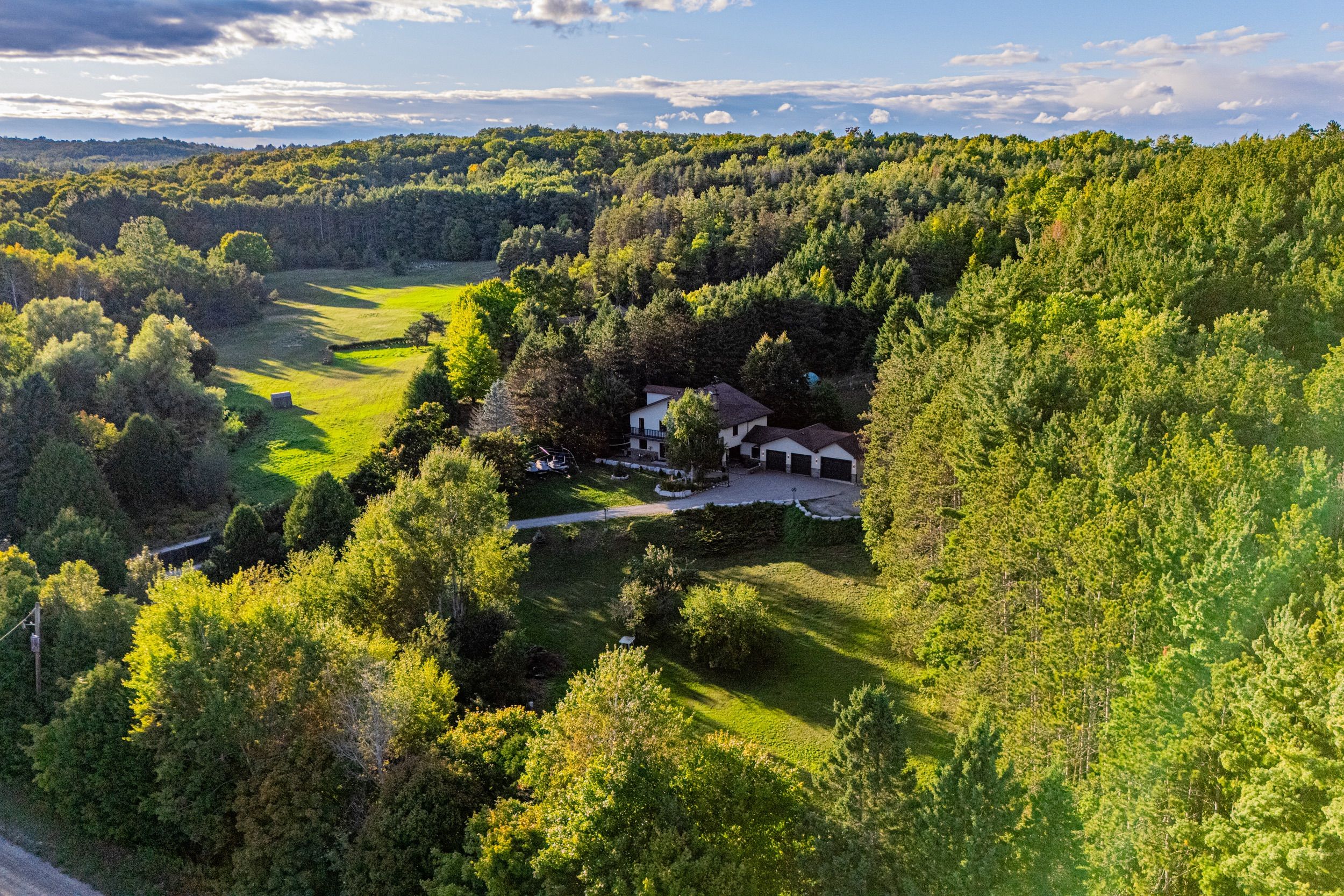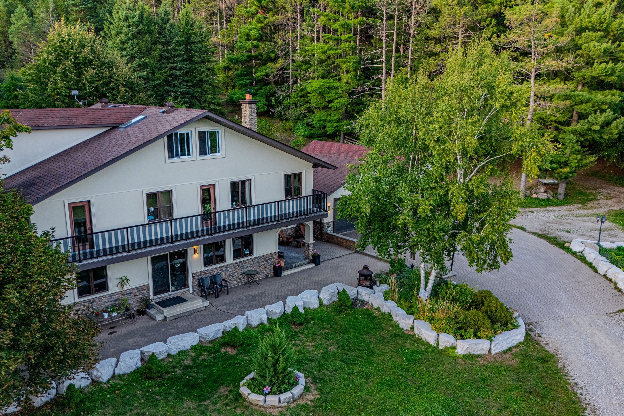 Magnificent estate-style home on over 17 acres of land, offering the perfect blend of luxury, nature and convenience. Meandering private trails, lush landscapes and stunning views create a year-round vacation retreat. A custom gate leads to an interlock driveway and parking area for 8+ vehicles and a 3-car garage with drive-through access. The main floor features a bright living room with wood-burning ceramic stove, formal dining, laundry, office and stylish 3-pc semi-ensuite. The kitchen boasts stainless steel appliances, granite countertops, backsplash, a breakfast bar and walkout to a deck. The second level offers 3 spacious bedrooms, office/study, two elegant bathrooms and a balcony with scenic views. The top-floor oversized primary suite includes skylights and a private 4-pc ensuite. The finished basement expands the living space with a great size recreation room. Enjoy an outdoor paradise just minutes from mono cliffs park, hockley valley resort, mansfield ski club, bruce trail, fine dining, craft brewery and winery. Within 30 minutes you can enjoy skiing at blue mountain or relax at wasaga beach. Vacation living year-round with quick access to airport road, combining privacy with effortless travel. A perfect place to call home!