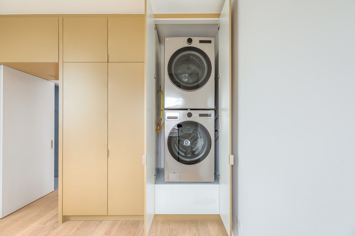 • Convenient in-suite laundry and ample storage throughout.