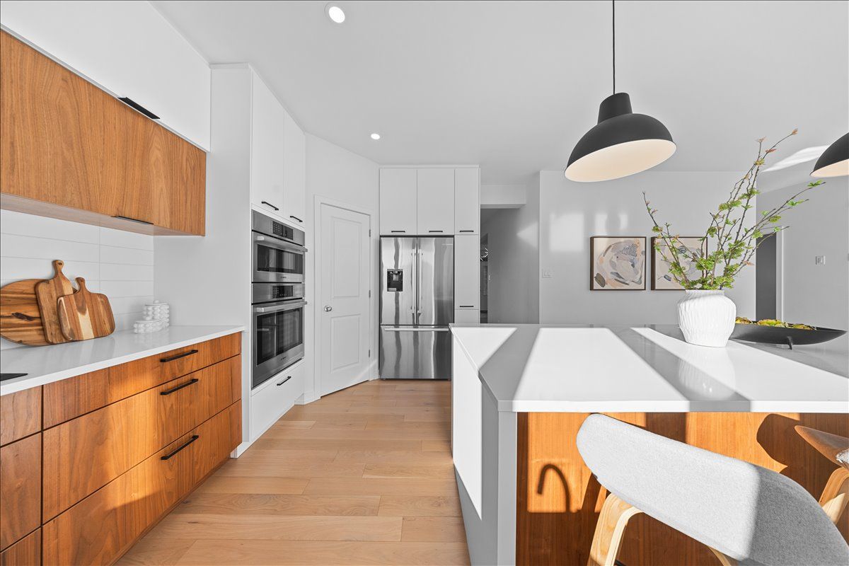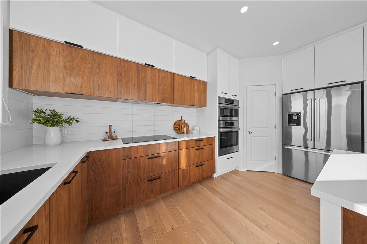 • Stylish kitchen with built-in appliances and custom cabinetry.