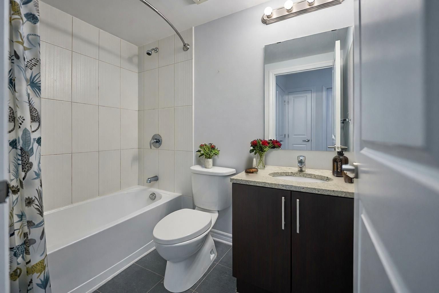 • Open-concept kitchen and living area with modern finishes and private balcony.