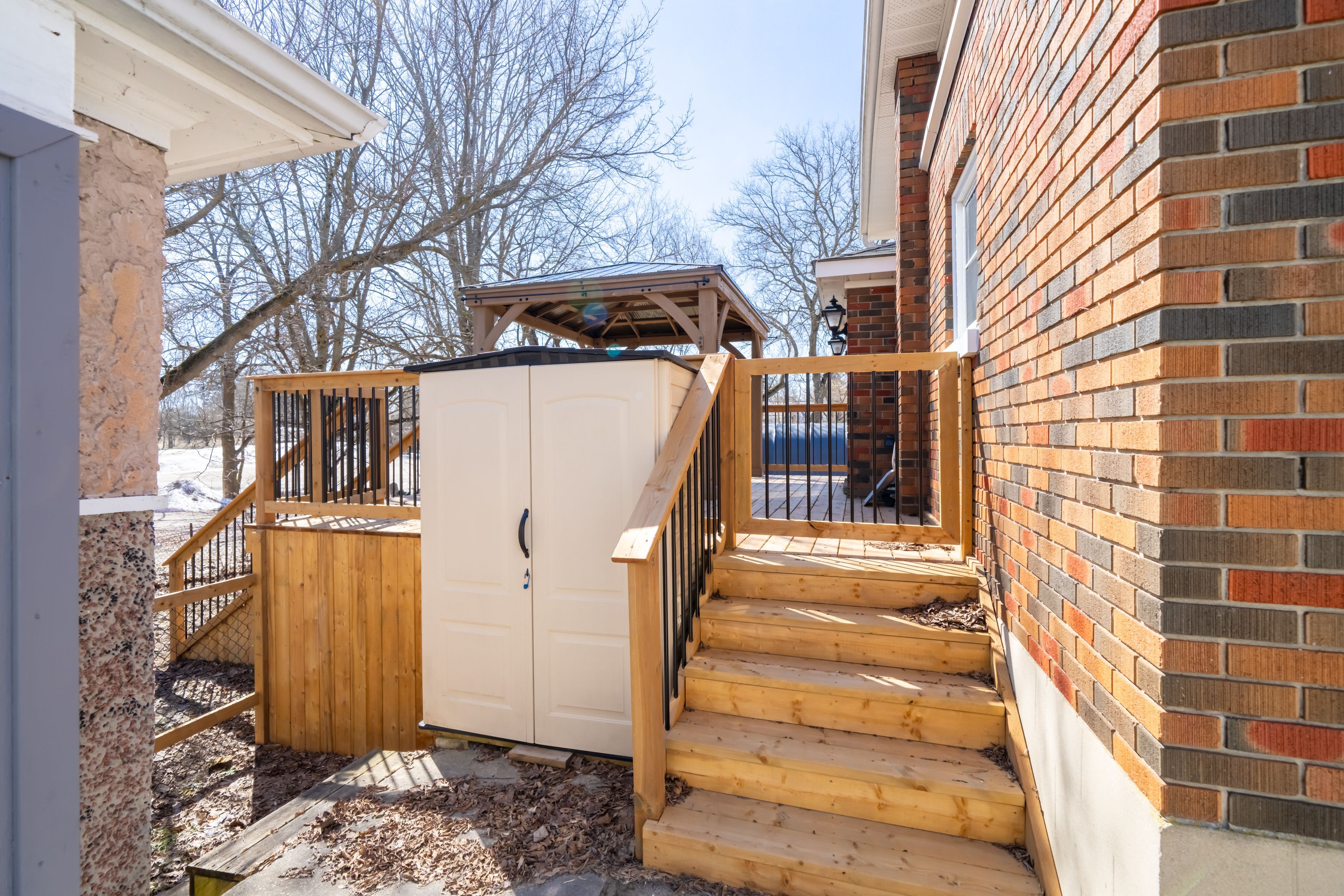 • Bright kitchen and dining room with access to a new deck and gazebo.