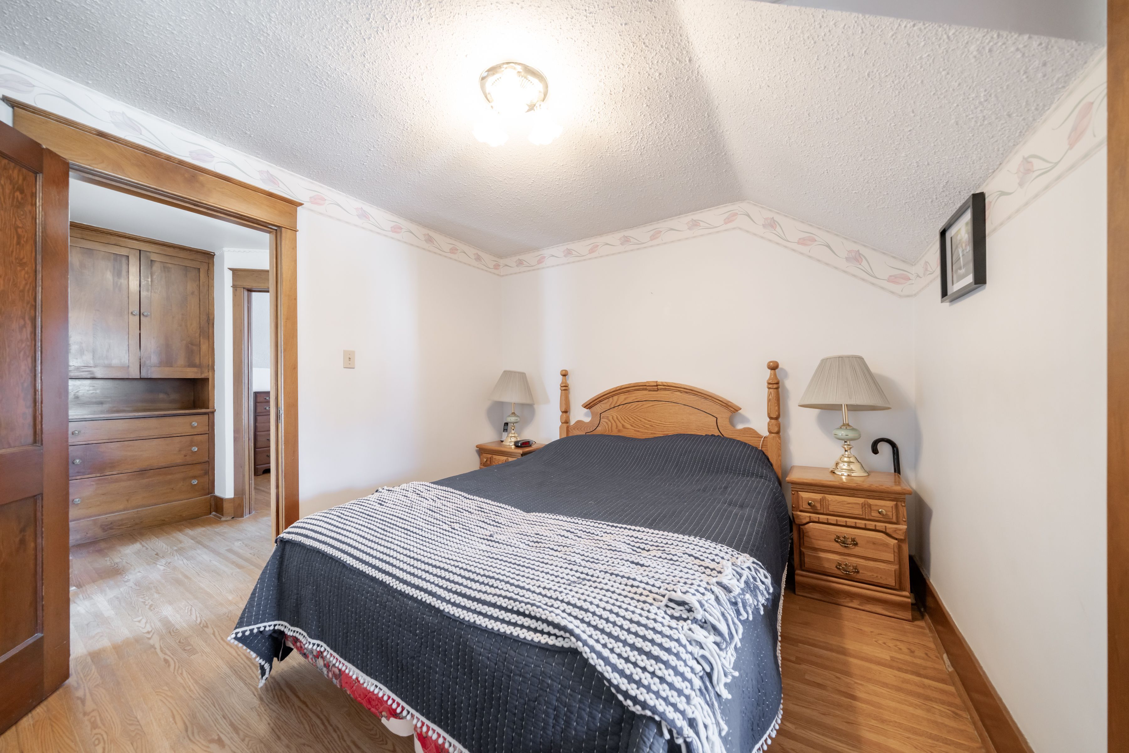 This timeless, near-centennial home sits proudly on an extra-wide corner lot, offering generous space, both inside and out! Well maintained and lovingly cherished by the current owner for 45 wonderful years, this property has been cared for with pride and preservation, ensuring its historic beauty endures while remaining comfortable and move-in ready. A welcoming porch greets you through the front entrance and once inside a feeling of home embraces with classic-period warmth from original solid wood trim, floors and doors throughout. A stunning stained-glass feature window highlights the foyer with elegant crystal doorknobs that gleam and compliment the beautiful glass and wood french and pocket doors - which offer optional enclosure of the living room. Quality craftsmanship is found throughout with several built-in storage nooks, adding character and practicality. The sunny kitchen and formal dining room are flooded with natural light through large windows and a patio door leading onto a new 20x16' deck with gazebo, perfect for entertaining or a quiet morning coffee. Upstairs features a 4-pc bathroom, three large bedrooms, including a spacious primary suite with a generous dressing room, built-in cabinetry and adjacent 3-pc ensuite bathroom - complete with laundry (washer/dryer combo unit). Basement boasts an open-concept game & recreation room with a gas fireplace for added warmth and ambiance. A small workshop & bonus secondary laundry space is thoughtfully combined in the utility room. Outside, a fenced portion of yard provides safety for pets and children while a large open & treed corner lot offers privacy &/or additional parking for an rv or boat. A large workshop has endless potential for projects, storage or creative pursuits! Paved walkway and drive allows for easier maintenance + parking for 3-4 vehicles. Enjoy low-cost utilities with heat & hydro, each avg. $90 per month! Shingles, a/c & furnace new in 2012. Water heater - 2024. All appliances included.