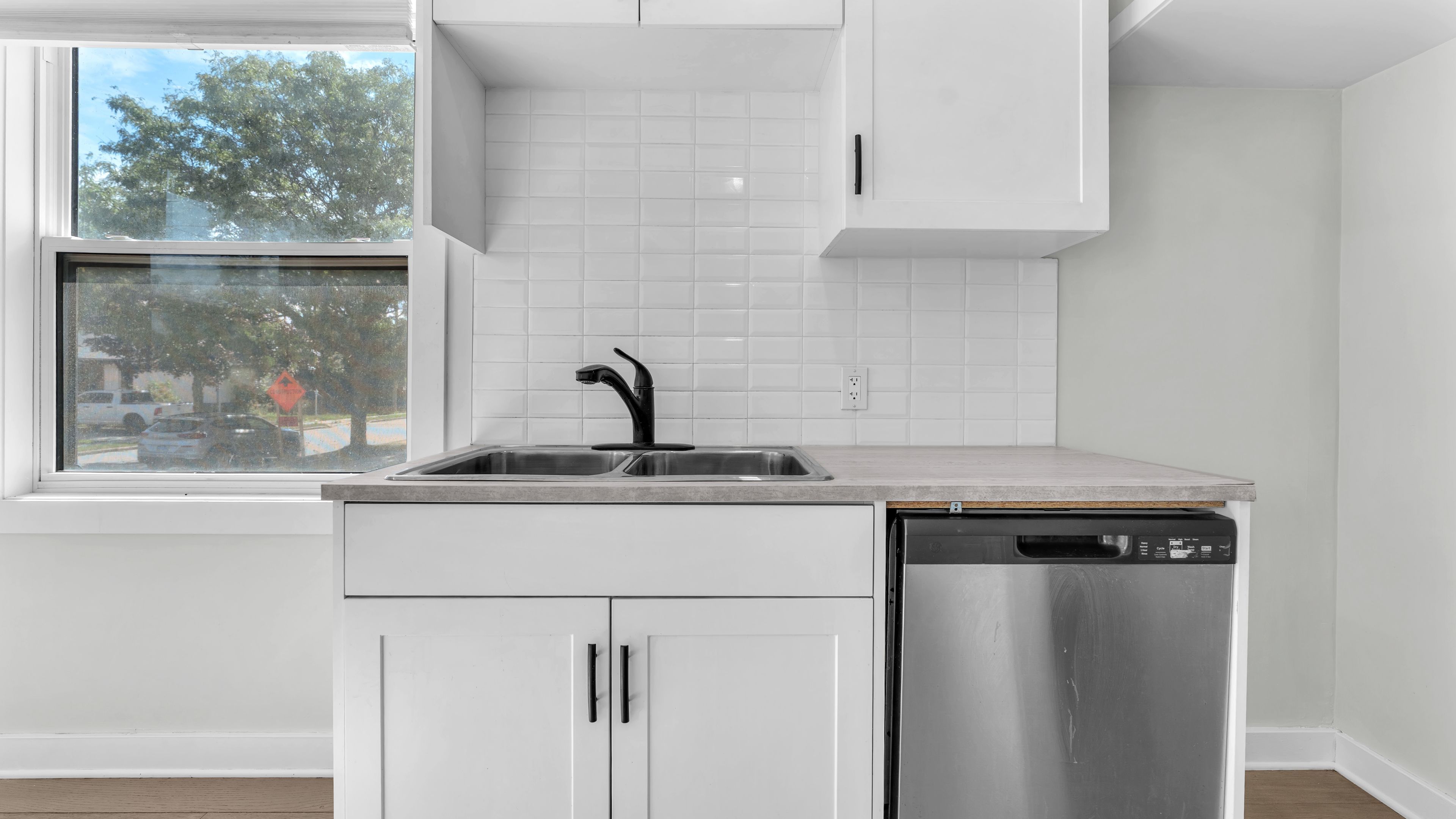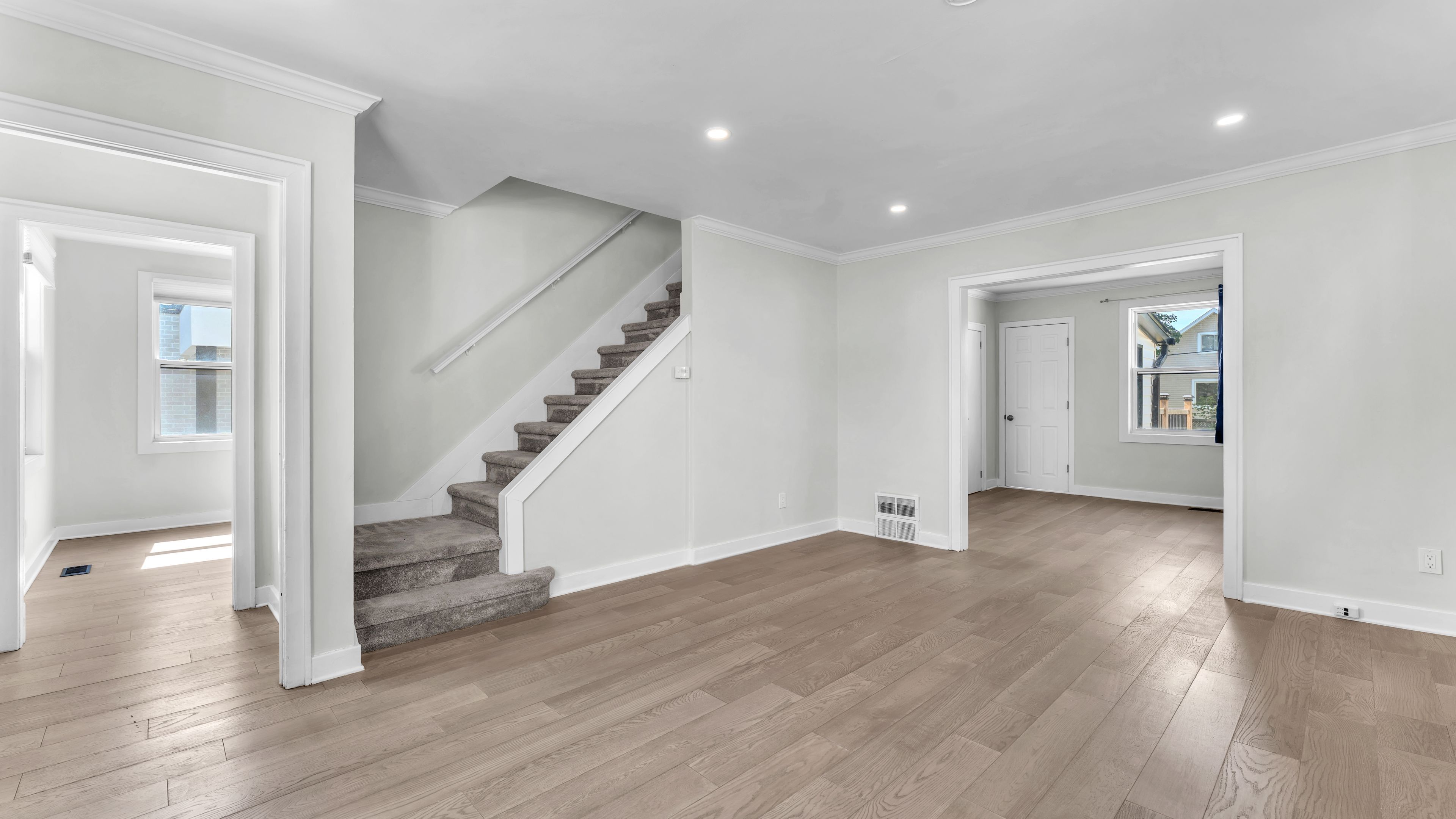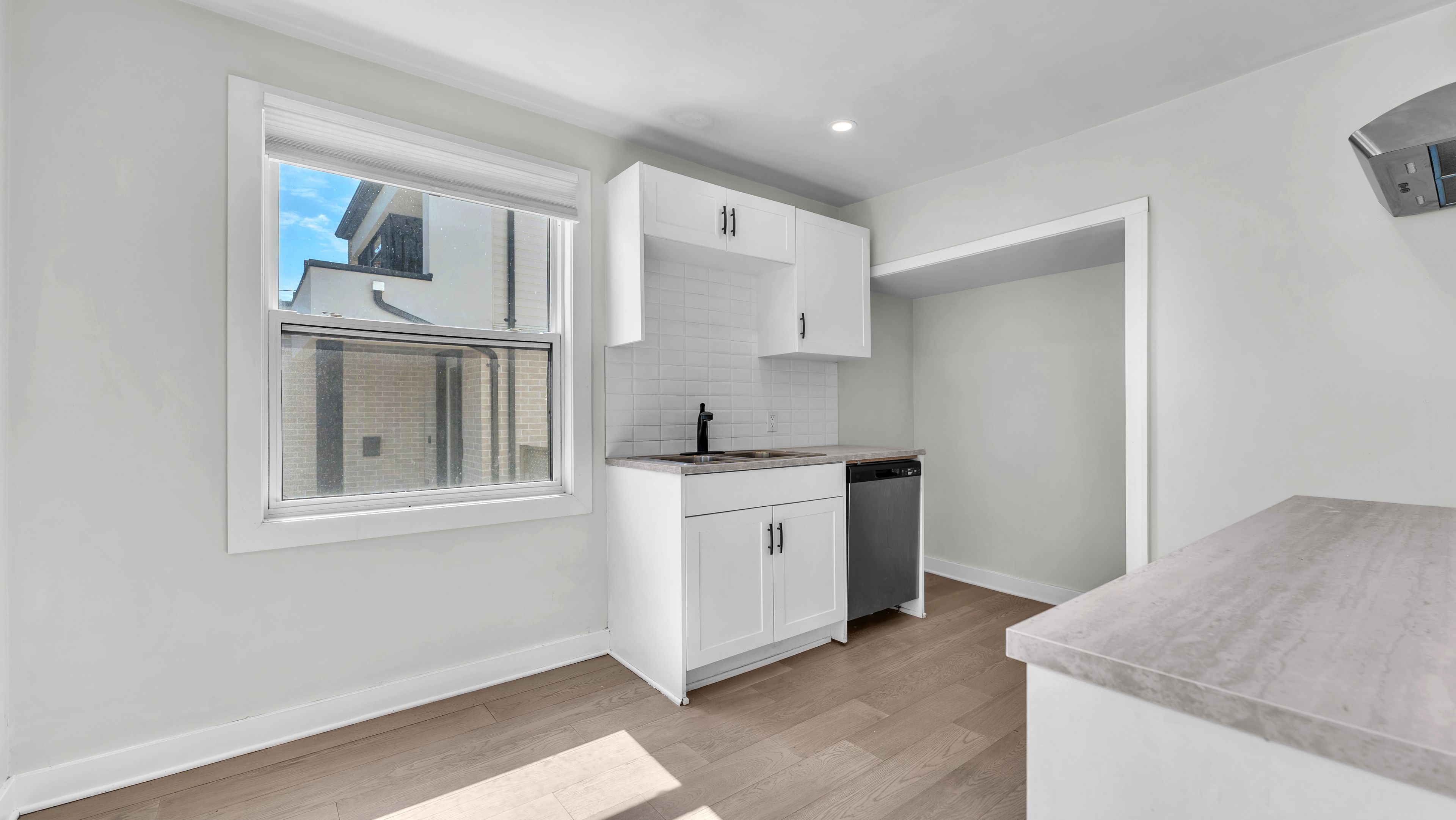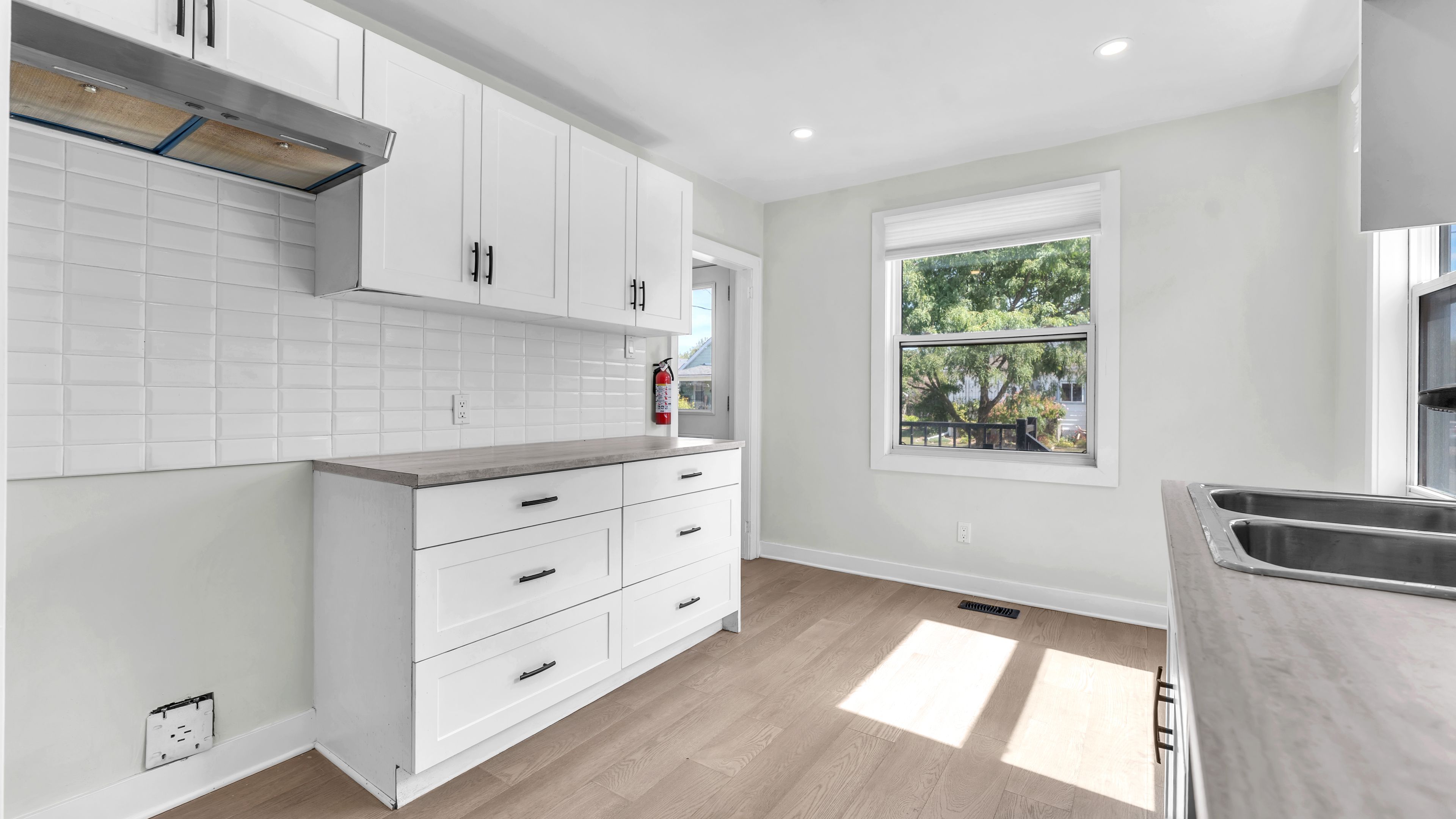 • Modern kitchen and bathrooms with refreshed flooring throughout the home.