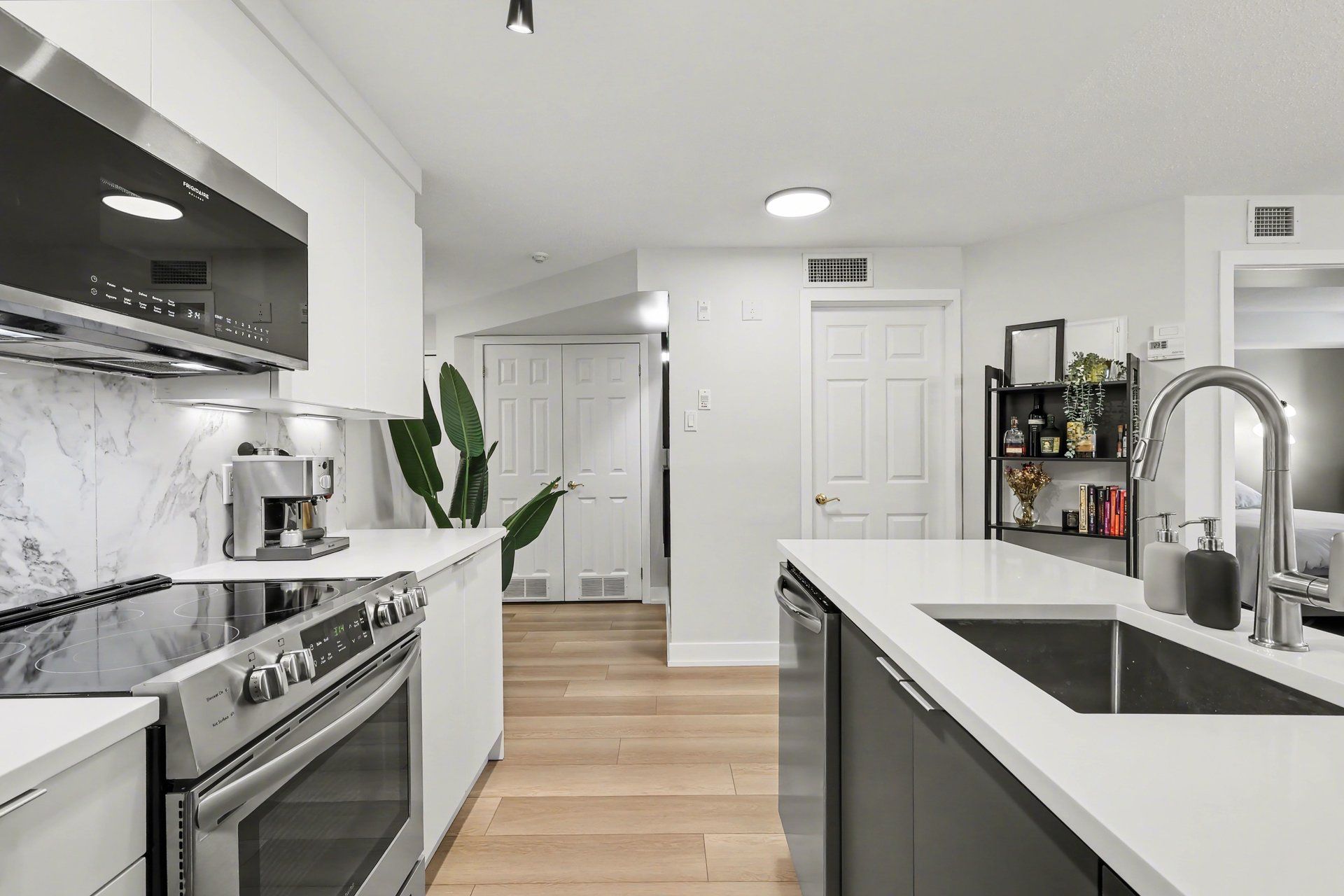 Open house: saturday april 4th, 2-4pm. Some of the best condos in centretown are hidden gems. Welcome to unit 703 at the strand. Step inside and you'll find one of the most thoughtfully renovated 1-bedroom condos downtown - a fully transformed space with value that is hard to beat. The kitchen was redesigned in 2021: enlarged storage, floor-to-ceiling white flat-panel cabinetry, quartz countertops, porcelain backsplash, a striking dark island with built-in dishwasher, and a full suite of stainless appliances. Wide-plank premium flooring (2021) runs seamlessly throughout, and the bathroom features a refreshed vanity with quartz countertop. This is not a cosmetic refresh it's a genuine, high-quality renovation. At 715 sq ft, the open-concept layout is one of the larger 1-bedroom footprints you'll find downtown, with room for a proper dining table, a full living room setup, and a private balcony. The bedroom stretches nearly 15 feet, offering plenty of room for a dedicated home office setup. The unit also includes underground parking and a storage locker - many comparable listings in this price range simply don't offer. Condo fees of $466/month cover heat, cooling, and water - among the most competitive you'll find downtown. What you get with those fees: a bbq courtyard, bike storage, car wash area, party room, and nine visitor parking spaces. The building has also been actively investing in infrastructure: new hvac (2021), upgraded entrance (2025), new entry system (2026), garage improvements (target april 2026), and elevator modernization (target fall 2026). Located at somerset and kent in the heart of centretown, you're steps from a grocery store, bank street restaurants and cafés, the rideau canal, and the glebe. Lyon lrt is a short walk away. An exceptional opportunity for first-time buyers, professionals, or investors who want a move-in-ready downtown condo with real upgrades, real space, and real value.