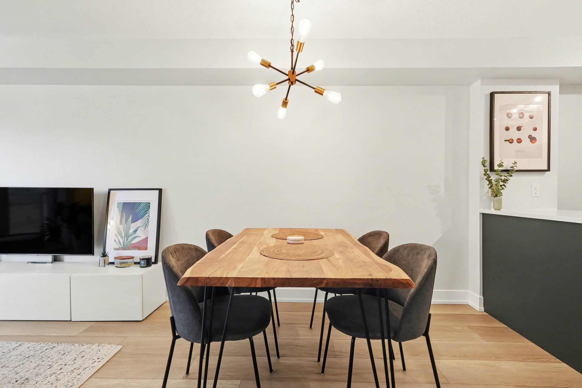 • Open-concept layout with room for dining and a private balcony.