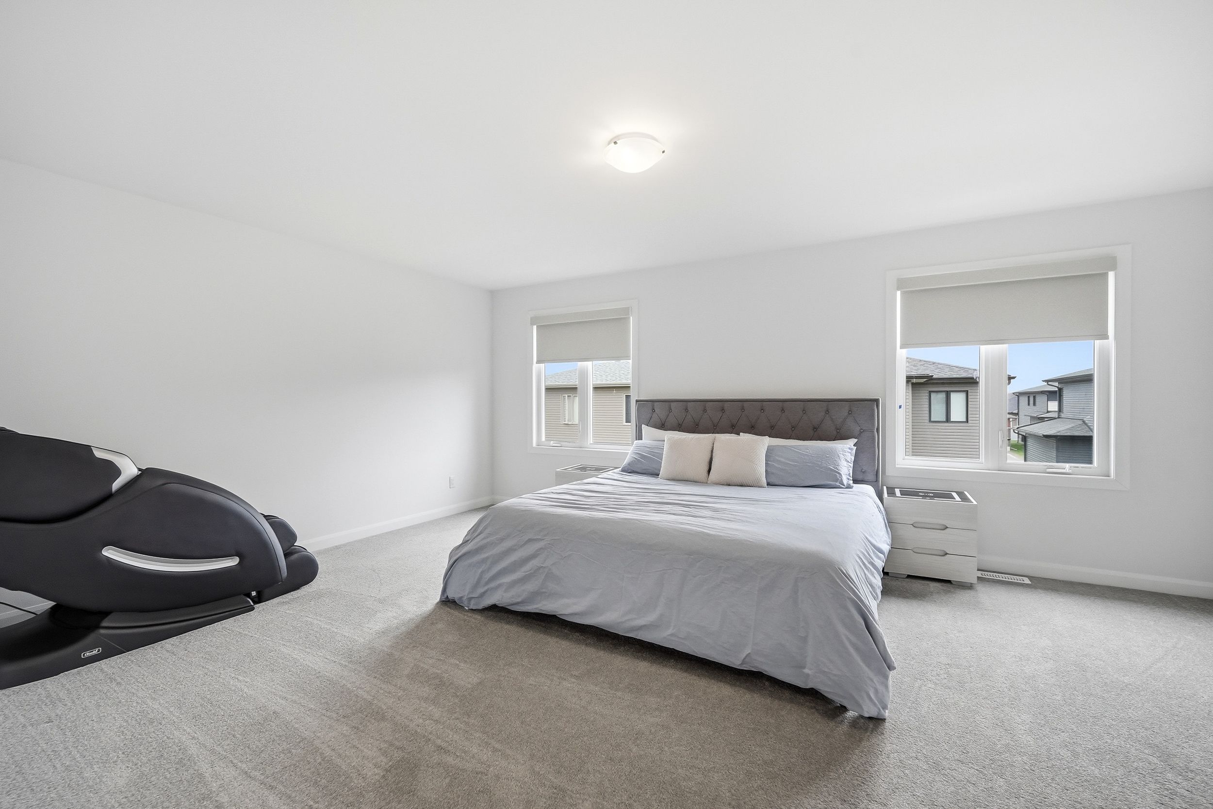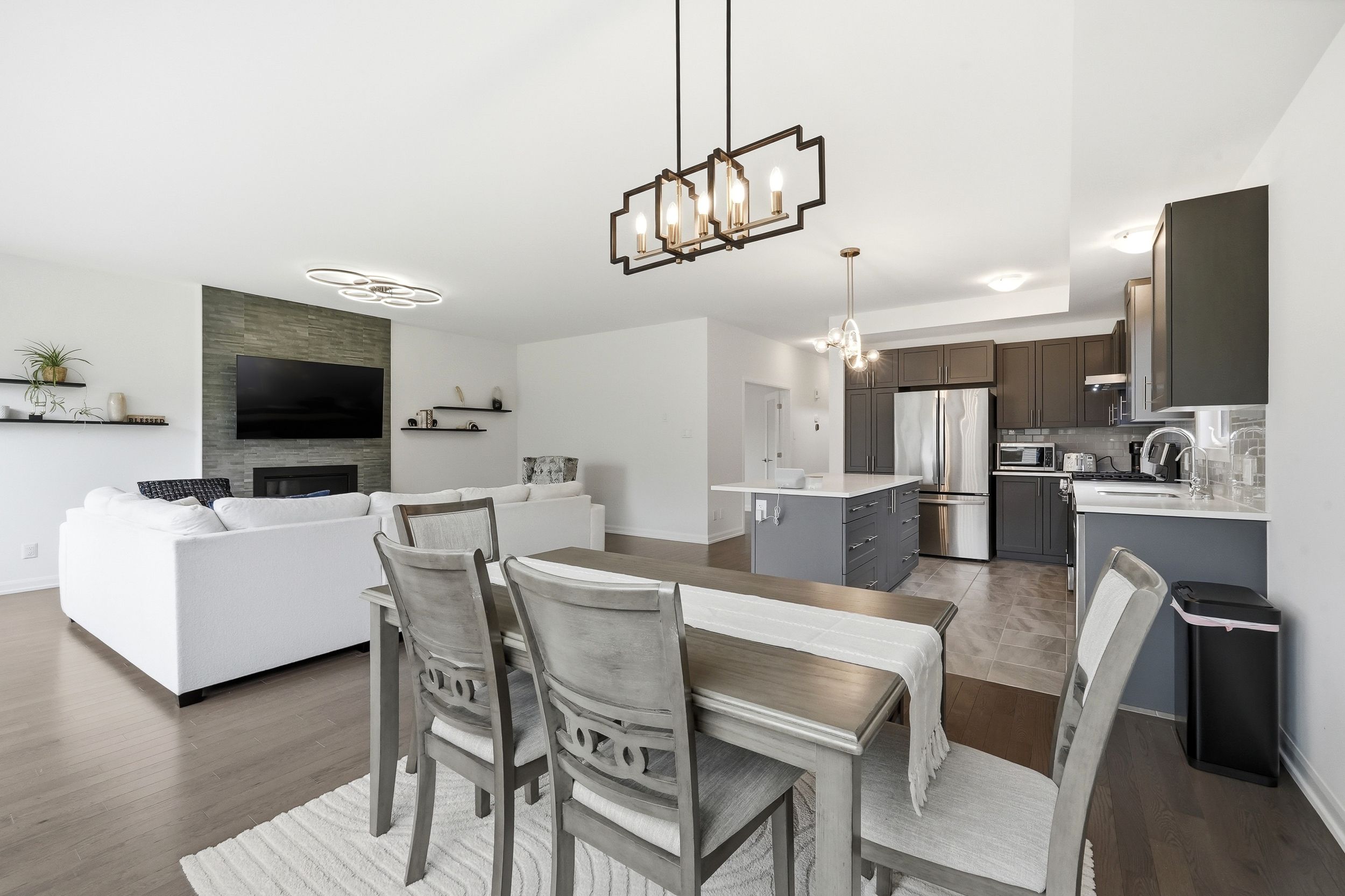 Stunning 2023-built home offering 2,678 sq. Ft. Of above-grade living space, designed to meet the needs of a growing family. This beautifully upgraded 4-bedroom property showcases quality finishes and modern conveniences throughout, delivering a true move-in ready experience. The main floor features smooth ceilings, elegant neutral hardwood and ceramic flooring, and a practical den, ideal for working from home. The open-concept kitchen is both stylish and functional, highlighted by quartz countertops, taller cabinetry, a gas stove, and a sleek modern chimney hood fan. The adjacent living and dining areas are enhanced with an upgraded fireplace, smart switches, and smart shades, creating a comfortable and refined living space. Upstairs, you will find a spacious primary bedroom retreat complete with two walk-in closets and a luxurious 5-piece ensuite. Three additional generously sized bedrooms provide ample space for a growing family, along with the convenience of a second-level laundry room featuring lg washer and dryer. Additional upgrades include cat6 wiring throughout, ev charger readiness with a 50-amp plug, and a fully insulated garage with epoxy flooring. Every detail has been thoughtfully considered to combine comfort, efficiency, and modern living. Better than new, just move in and enjoy all the benefits of a completed, upgraded home without the wait.