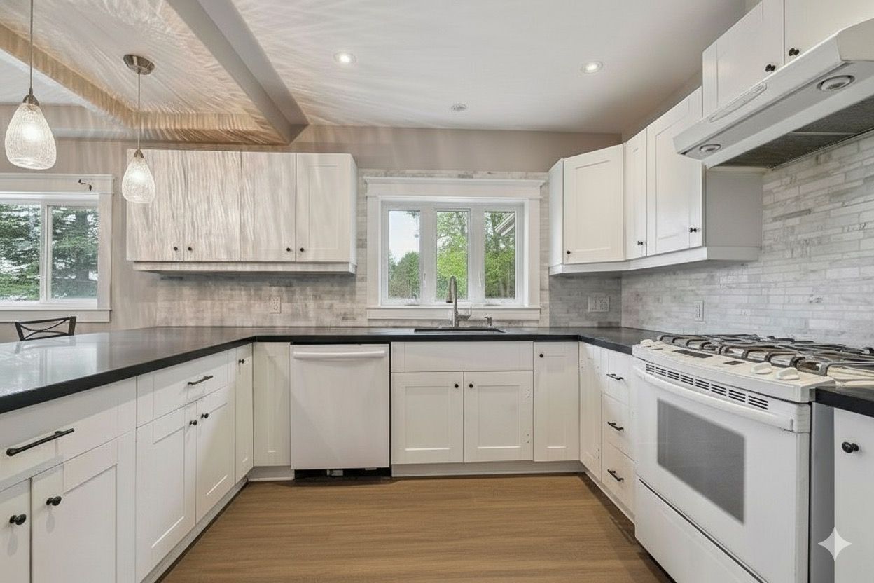 • Renovated detached home on a spacious lot near Gilford Beach.