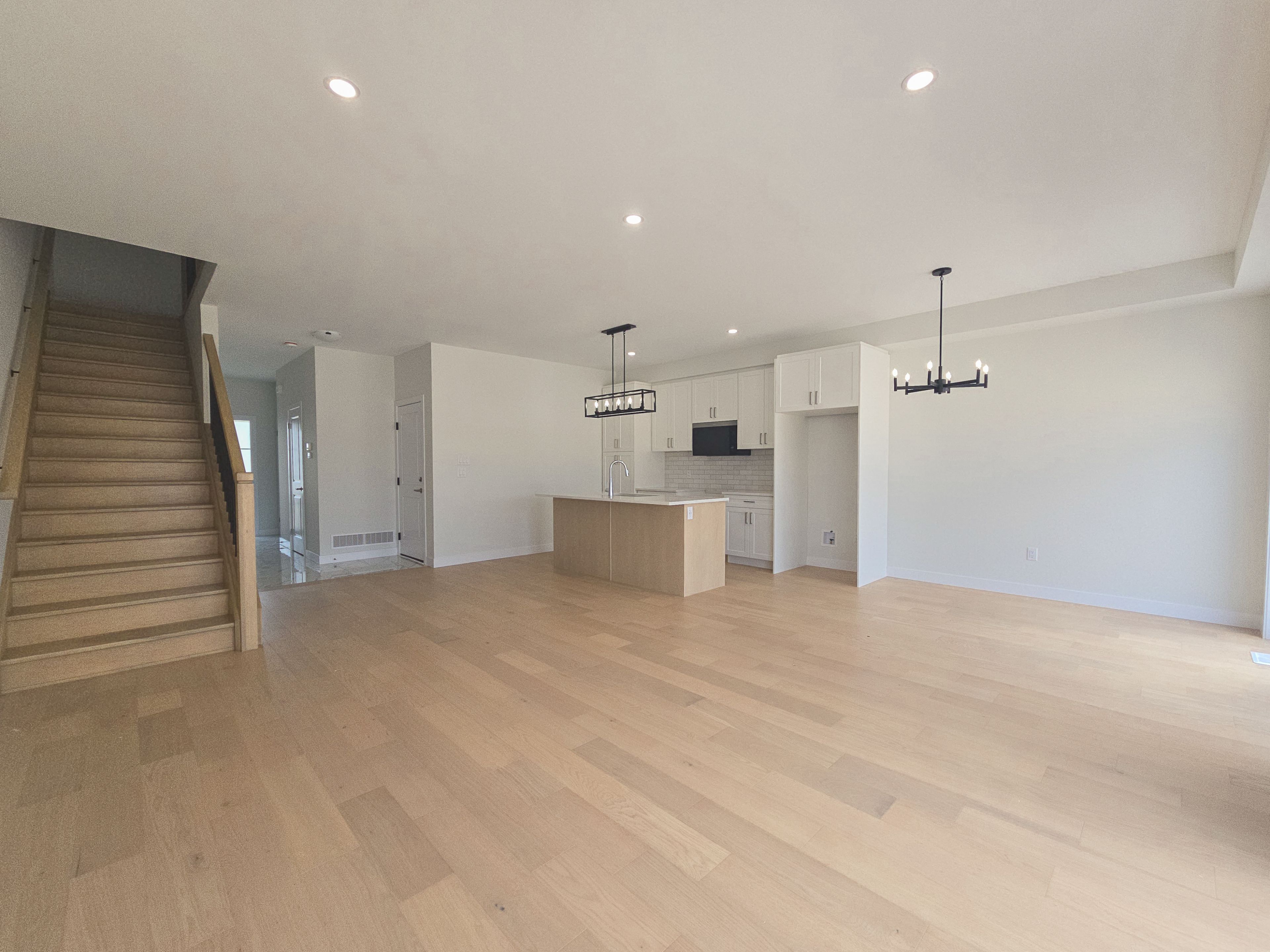 • Luxurious finishes include engineered hardwood and quartz countertops.