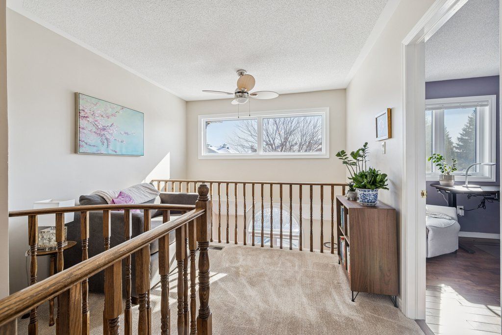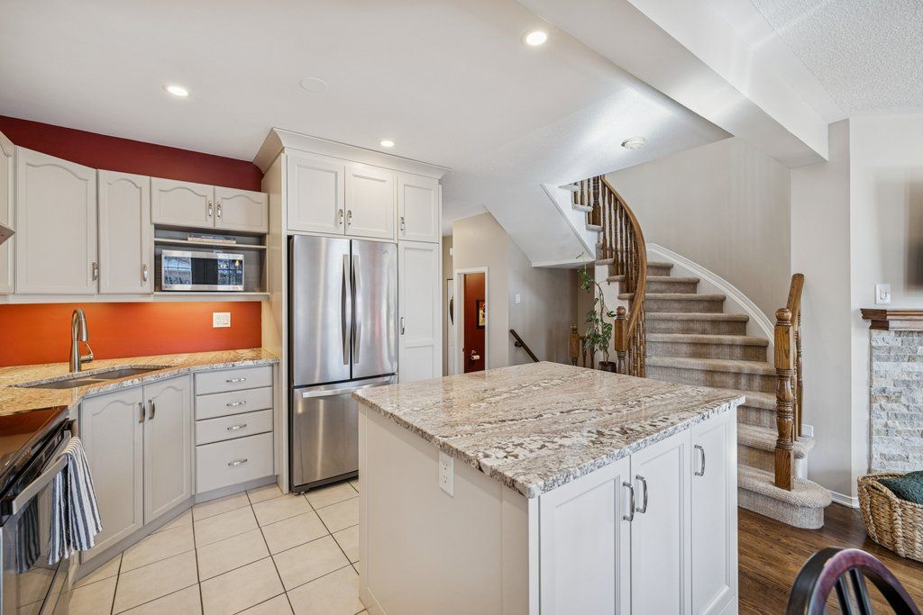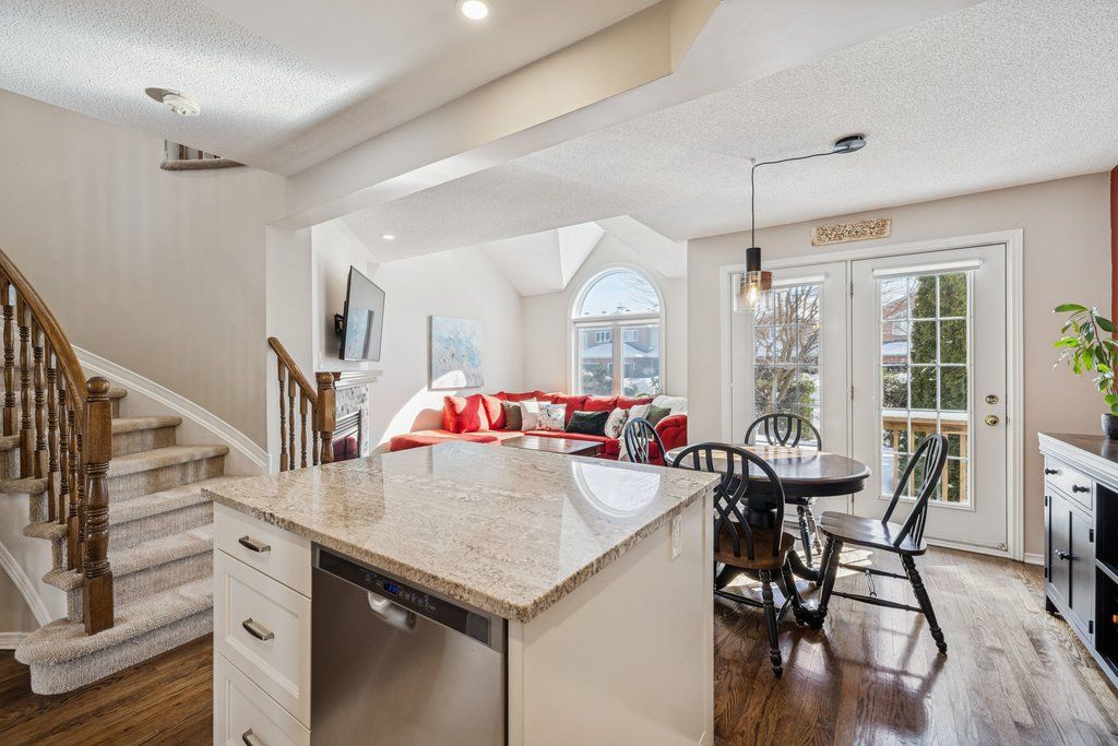 Welcome to this meticulously maintained home in desirable carson grove-just minutes from blair lrt, nrc, and csis. The main floor features a stunning, redesigned kitchen, where granite countertops and a new custom centre island serve as the focal point. Modernized with premium cabinetry extensions, a designer sink and faucet, and a full suite of stainless steel appliances, all illuminated by newly installed pot lights. Transition to the living area, anchored by a wood burning fireplace with updated stonework, custom blinds and hardwood floors throughout the main level. On the upper level, enjoy the comfort of new plush carpeting, good-sized second bedroom, and a cozy loft area bathed in sunlight. The primary bedroom has soaring ceilings and a beautiful walk-in closet. The refreshed bathroom includes a new vanity and lighting. Step outside to a backyard oasis, transformed in 2022 with a new deck, stone patio, and winding garden paths through curated perennial beds. All windows have been replaced with high-efficiency fenex windows (2018), furnace serviced (2023), ac serviced (2024), and duct and dryer vents were professionally cleaned (2025). From the designer finishes to the essential infrastructure, this turn-key gem offers an unparalleled living experience in one of ottawa's most convenient locations. Open house sunday feb 22: 2-4pm