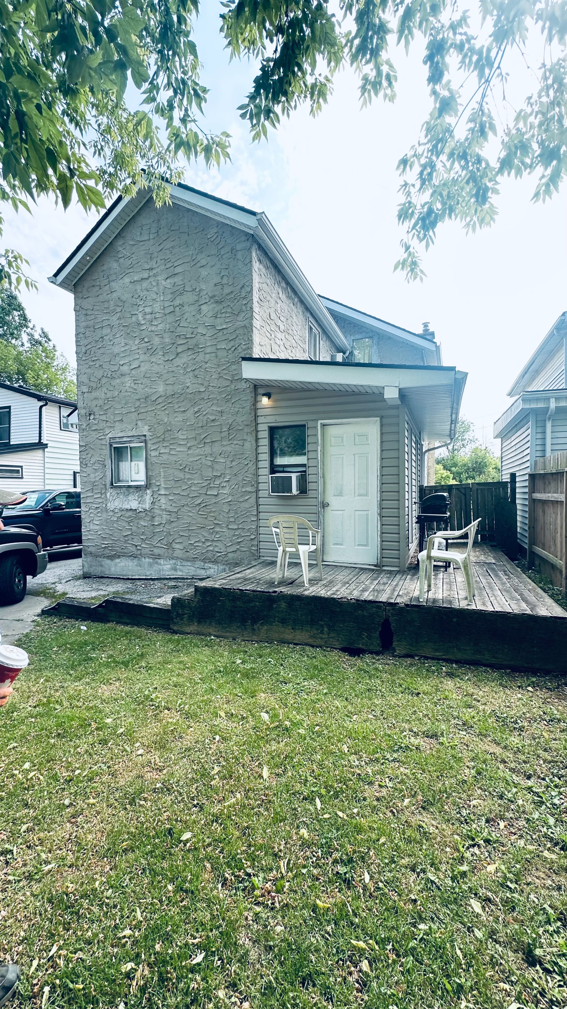 2 story duplex priced to sell, spacious units, rear tenant vacated end of august, front main floor unit has 1 bedroom, kitchen, living room, rear unit is 2-3 bedrooms,kitchen, living room area, large 2 plus vehicle garage in rear yard property being sold as is