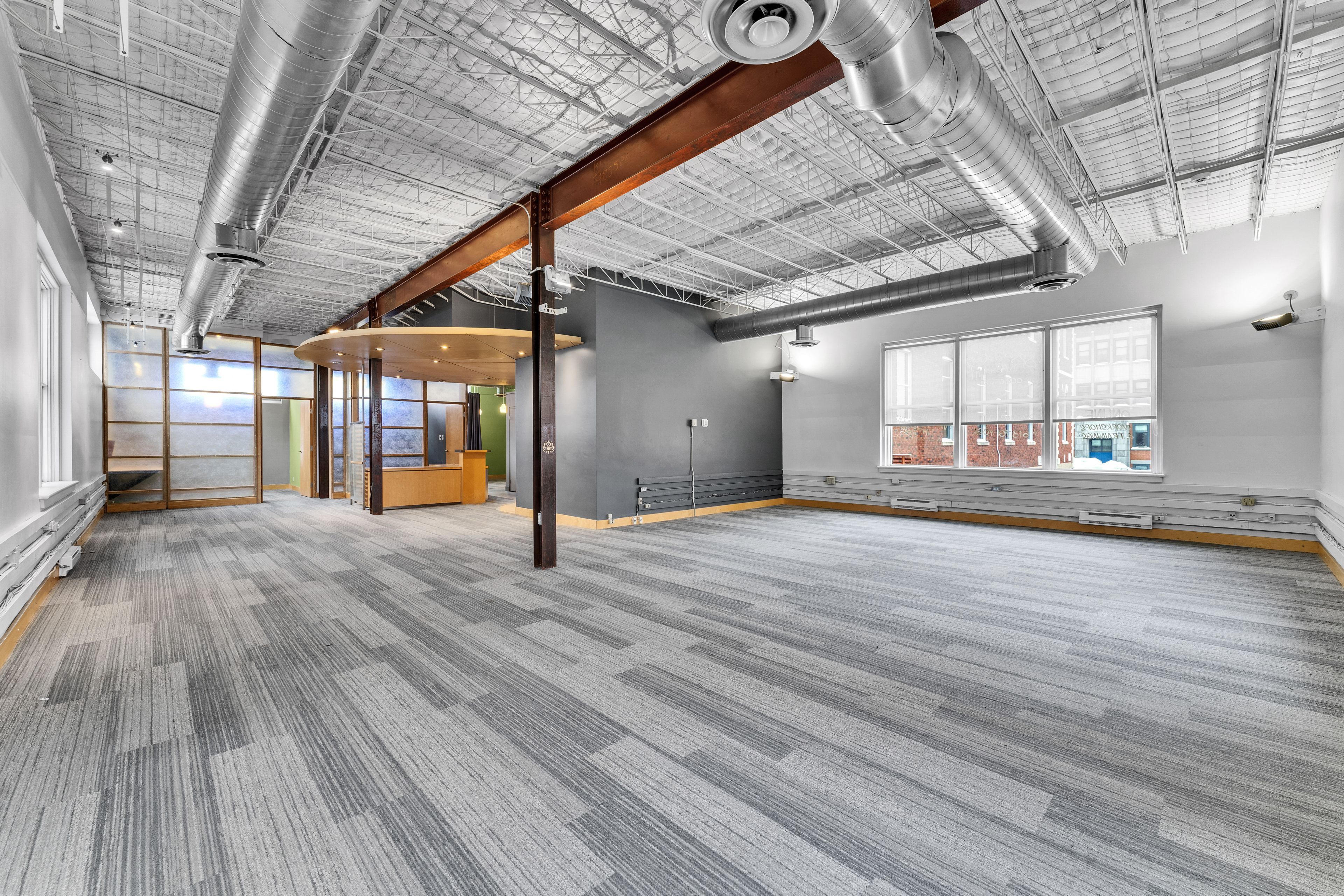 • High ceilings and oversized windows create an inviting atmosphere throughout.