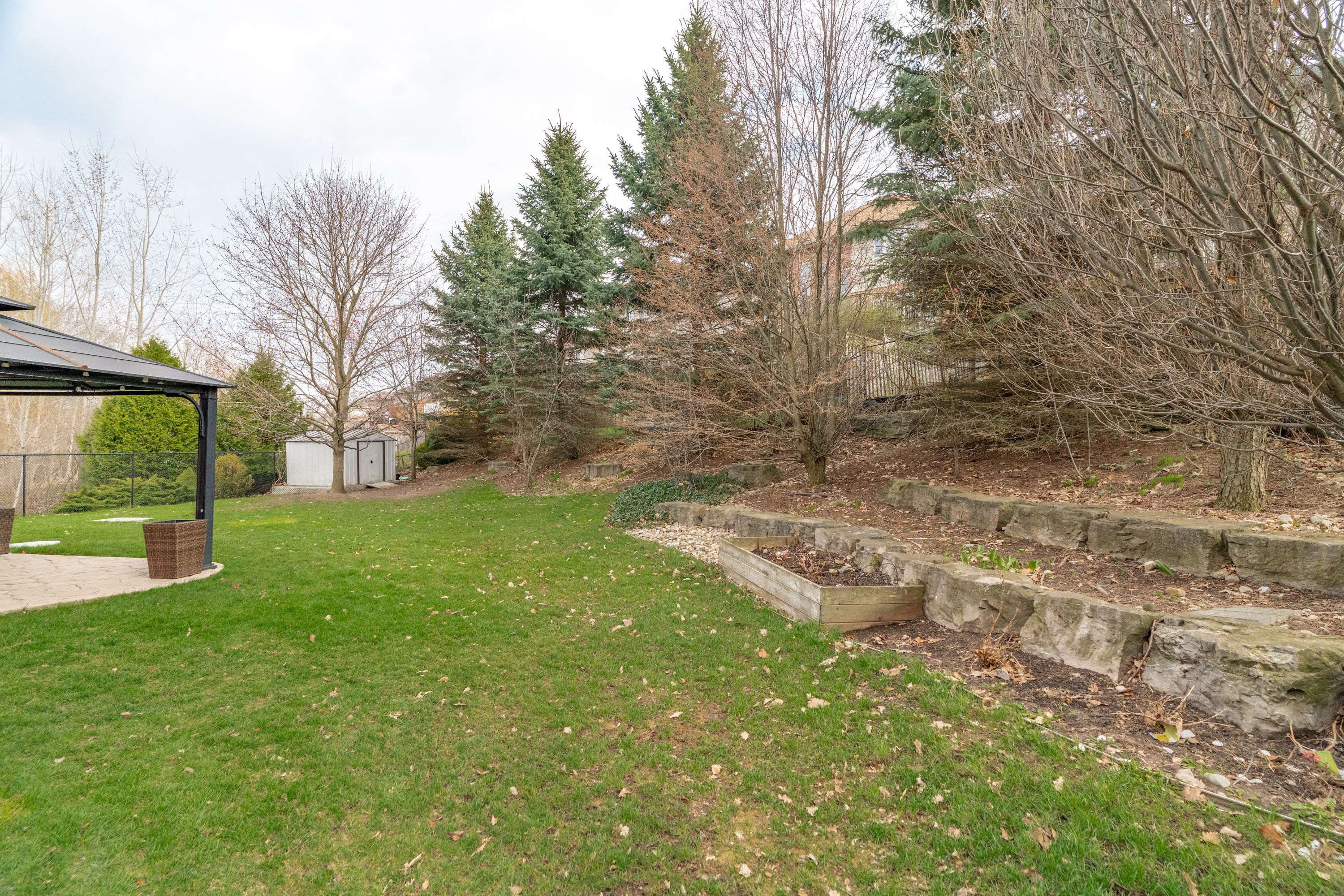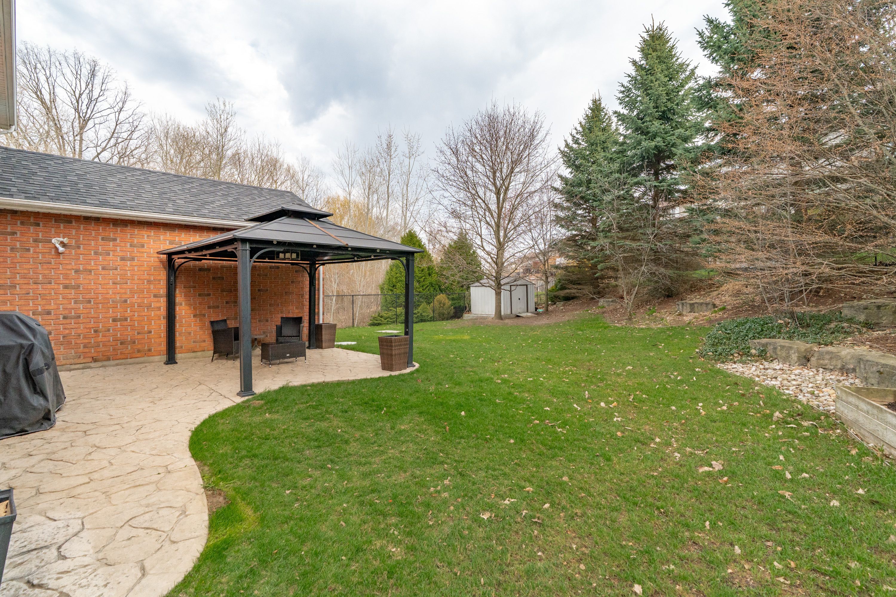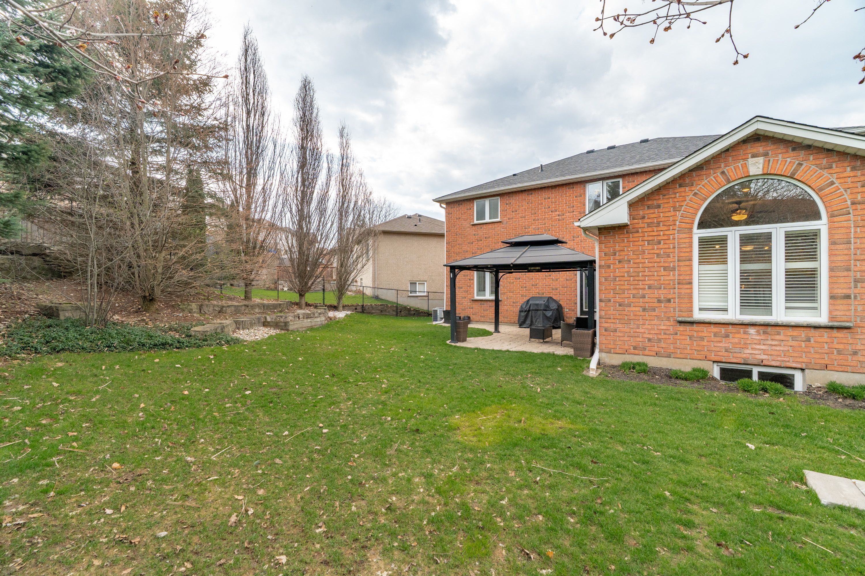 • Large backyard with concrete patio and natural gas BBQ for outdoor fun.
