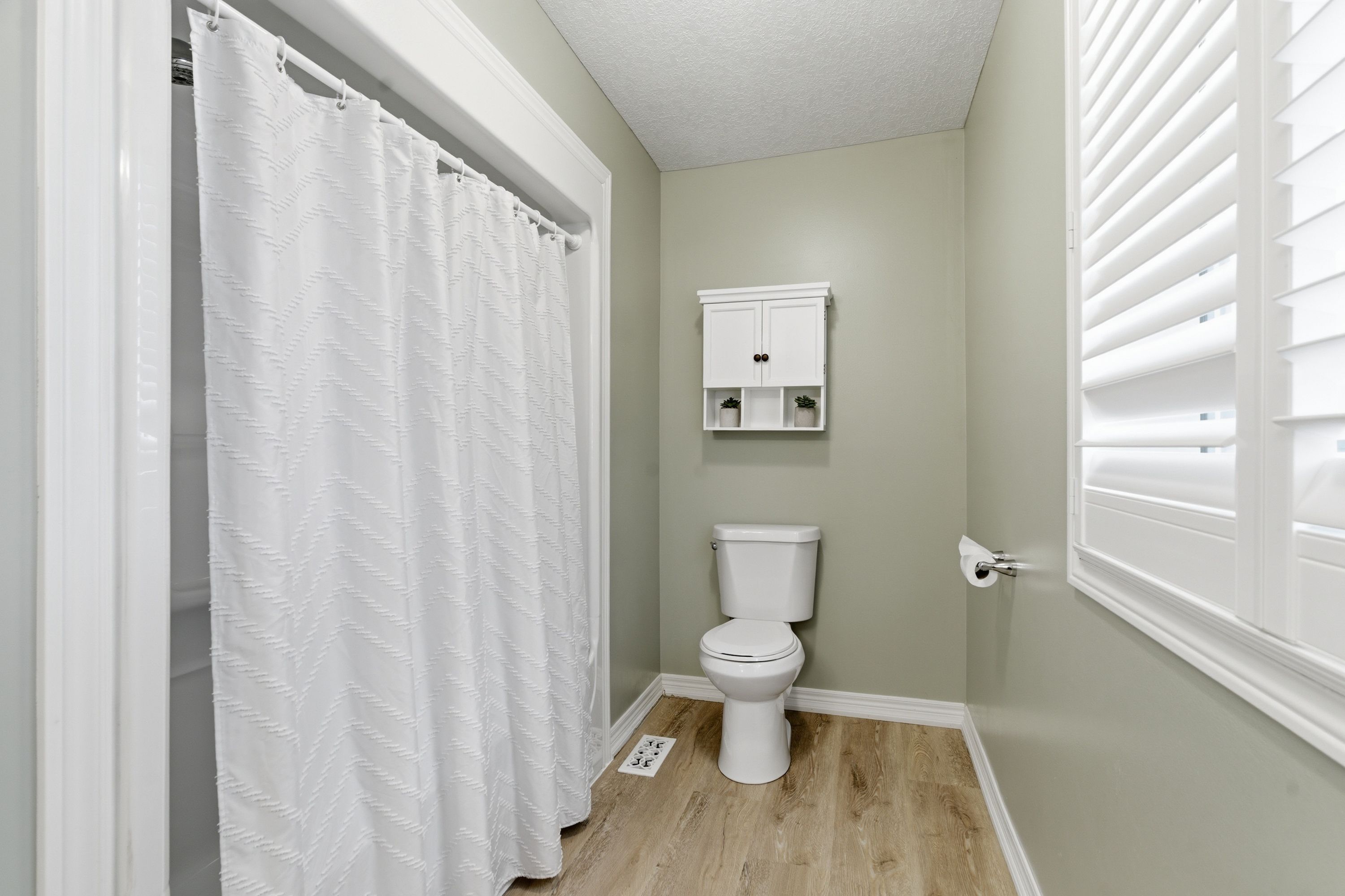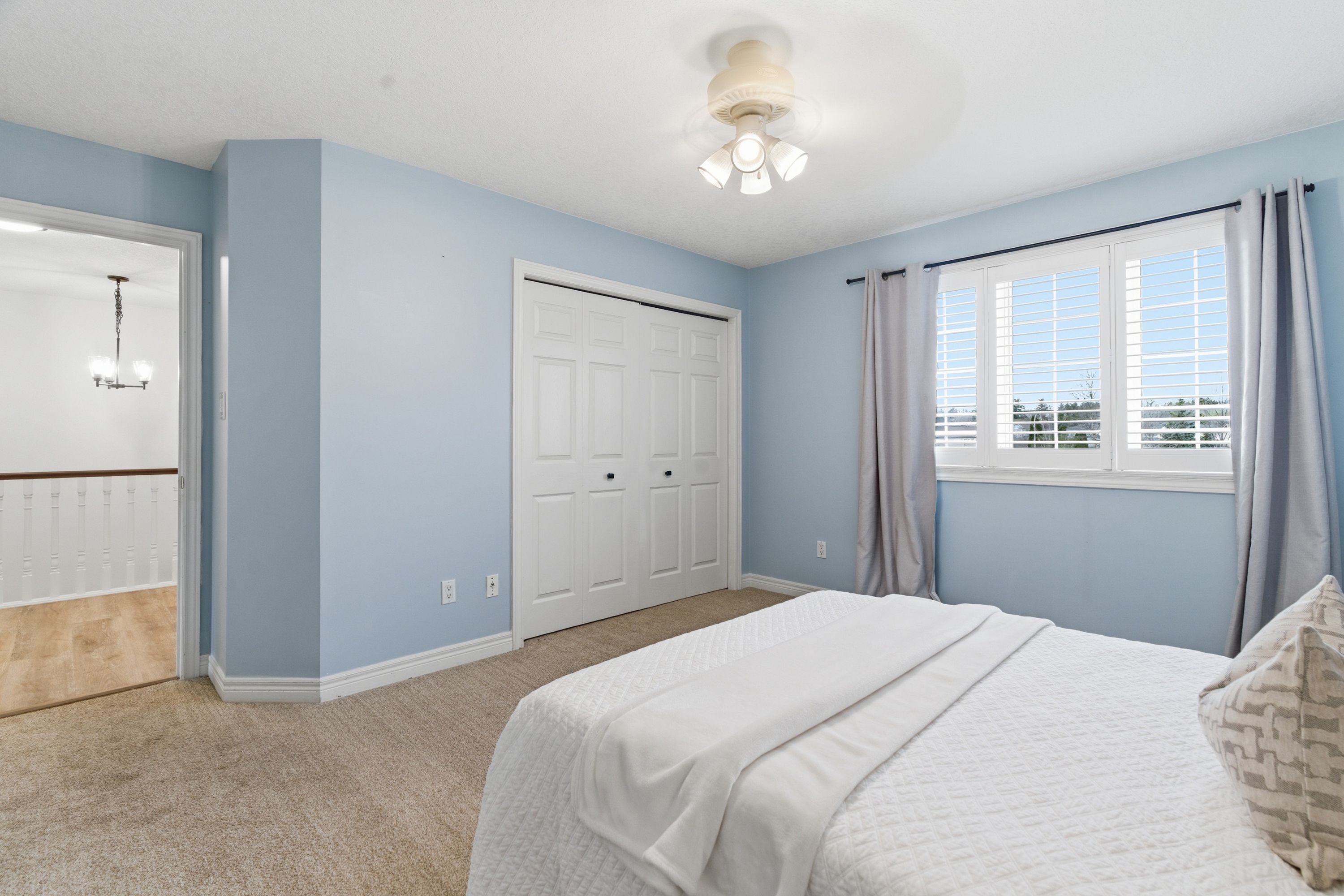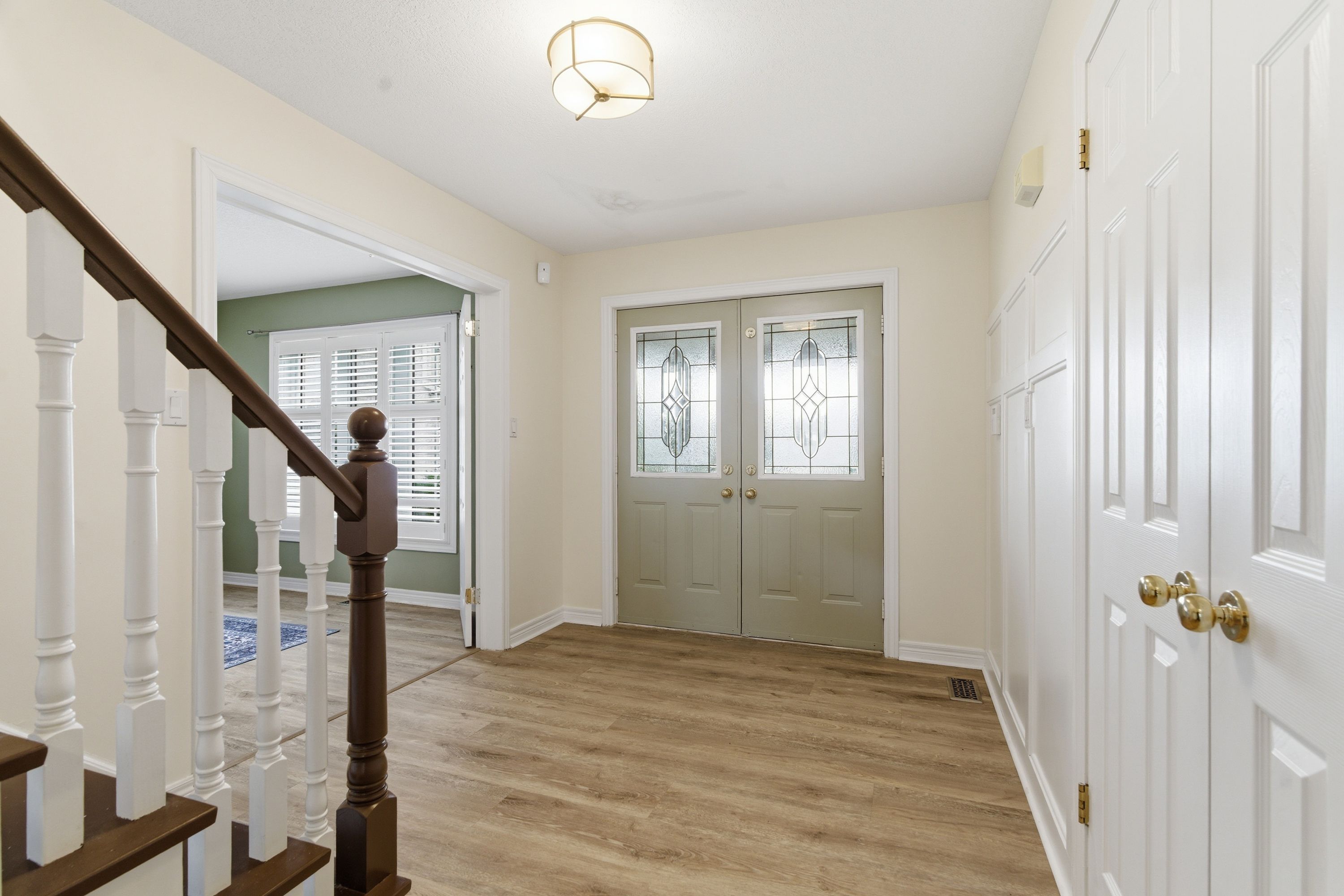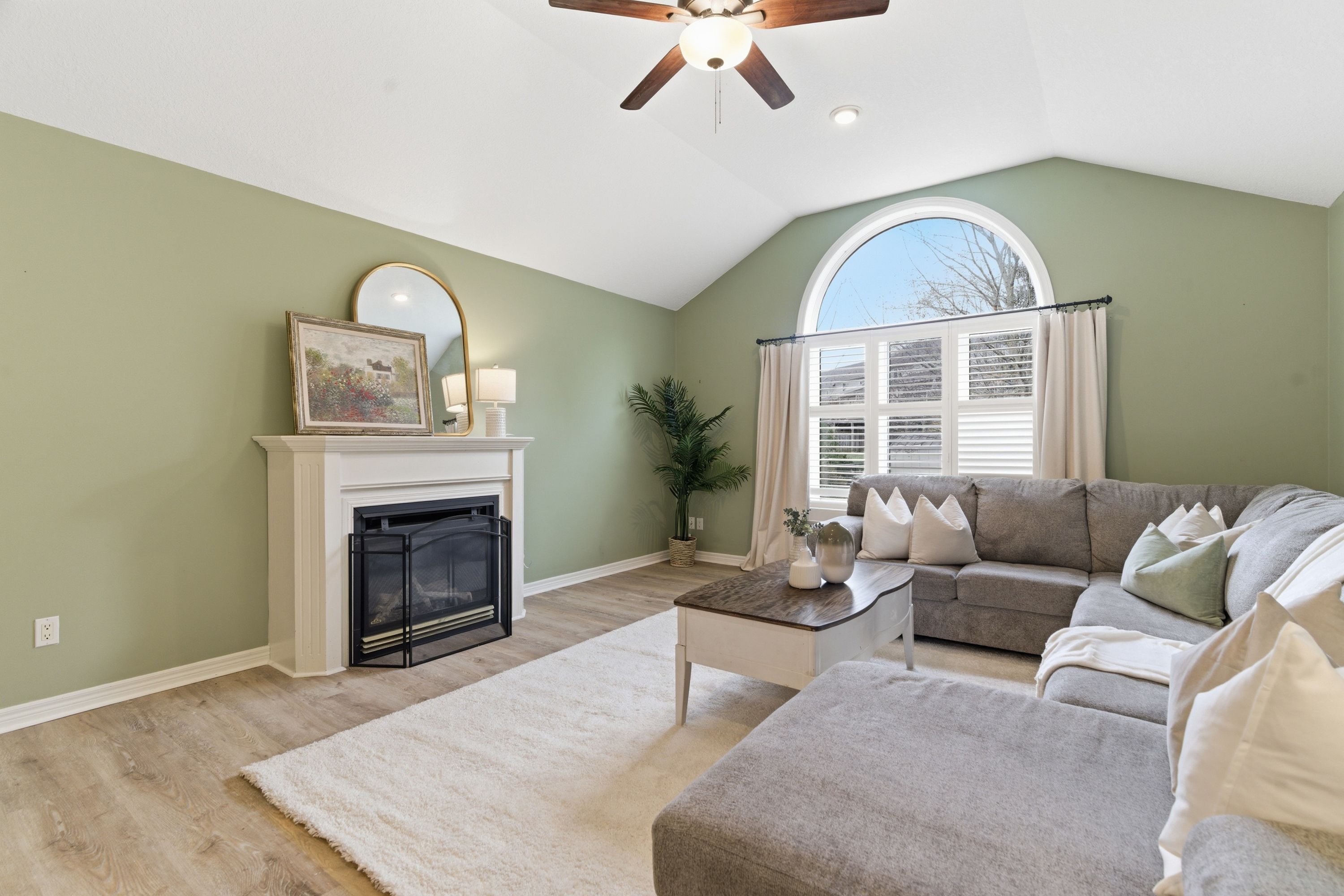 • Open-concept main level with updated flooring and stylish California shutters.