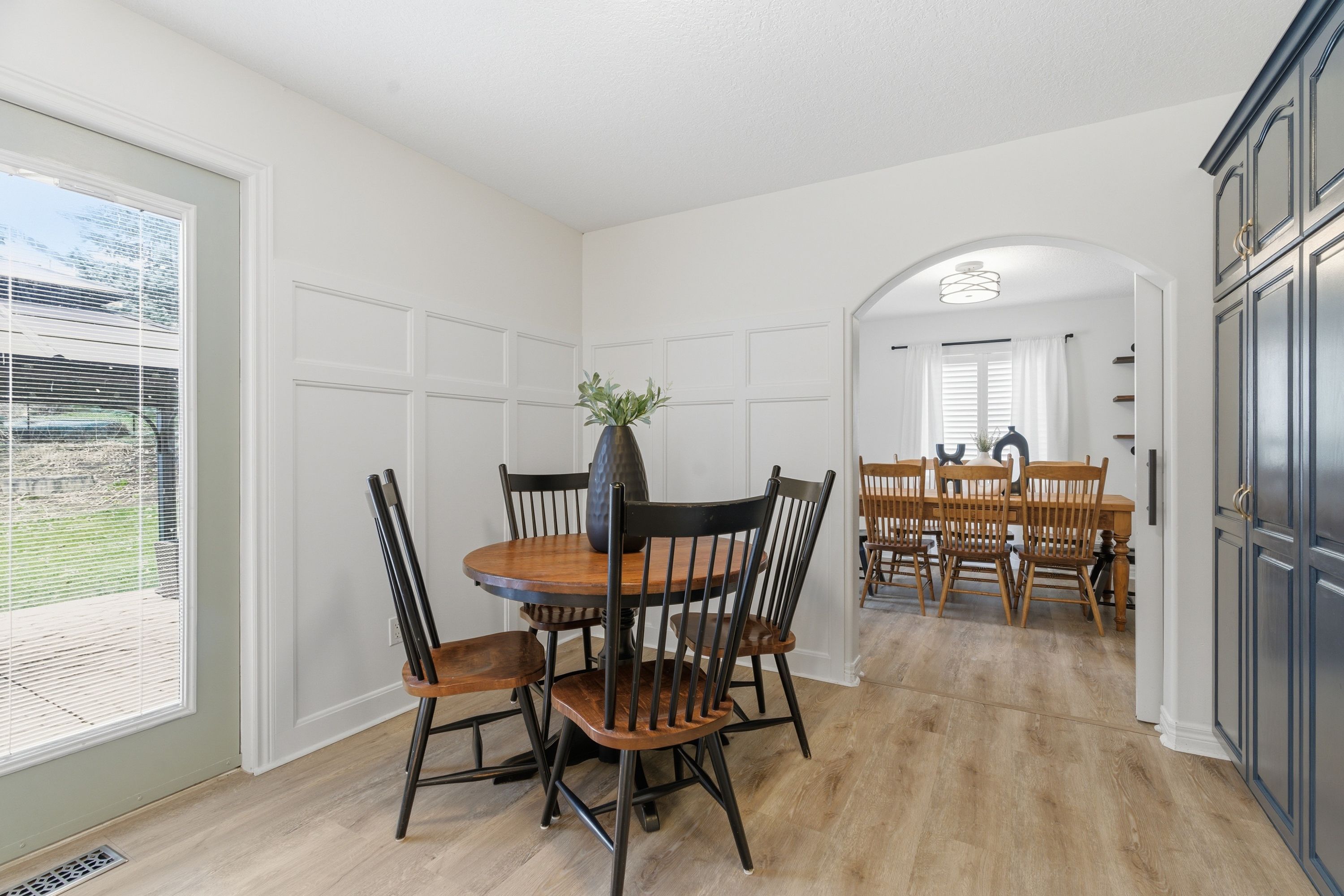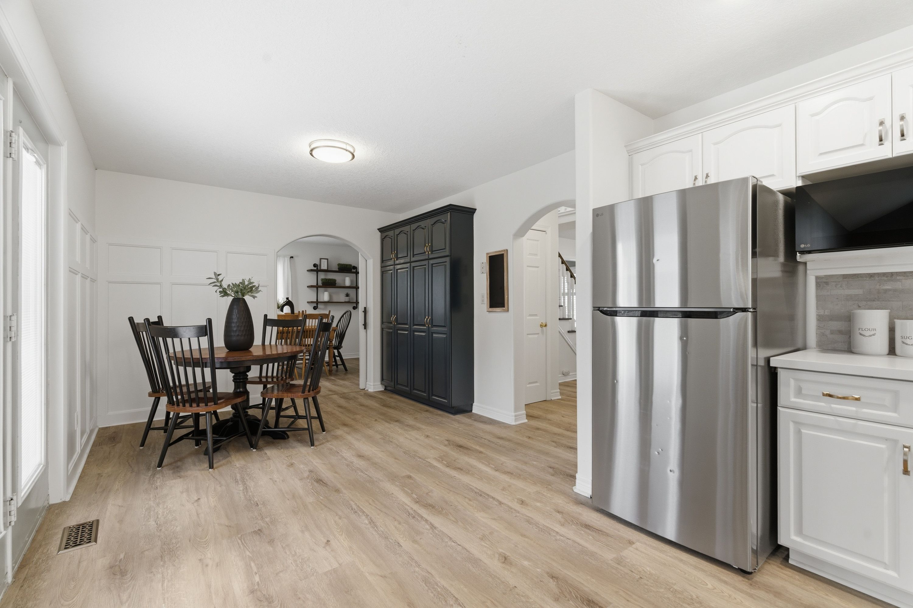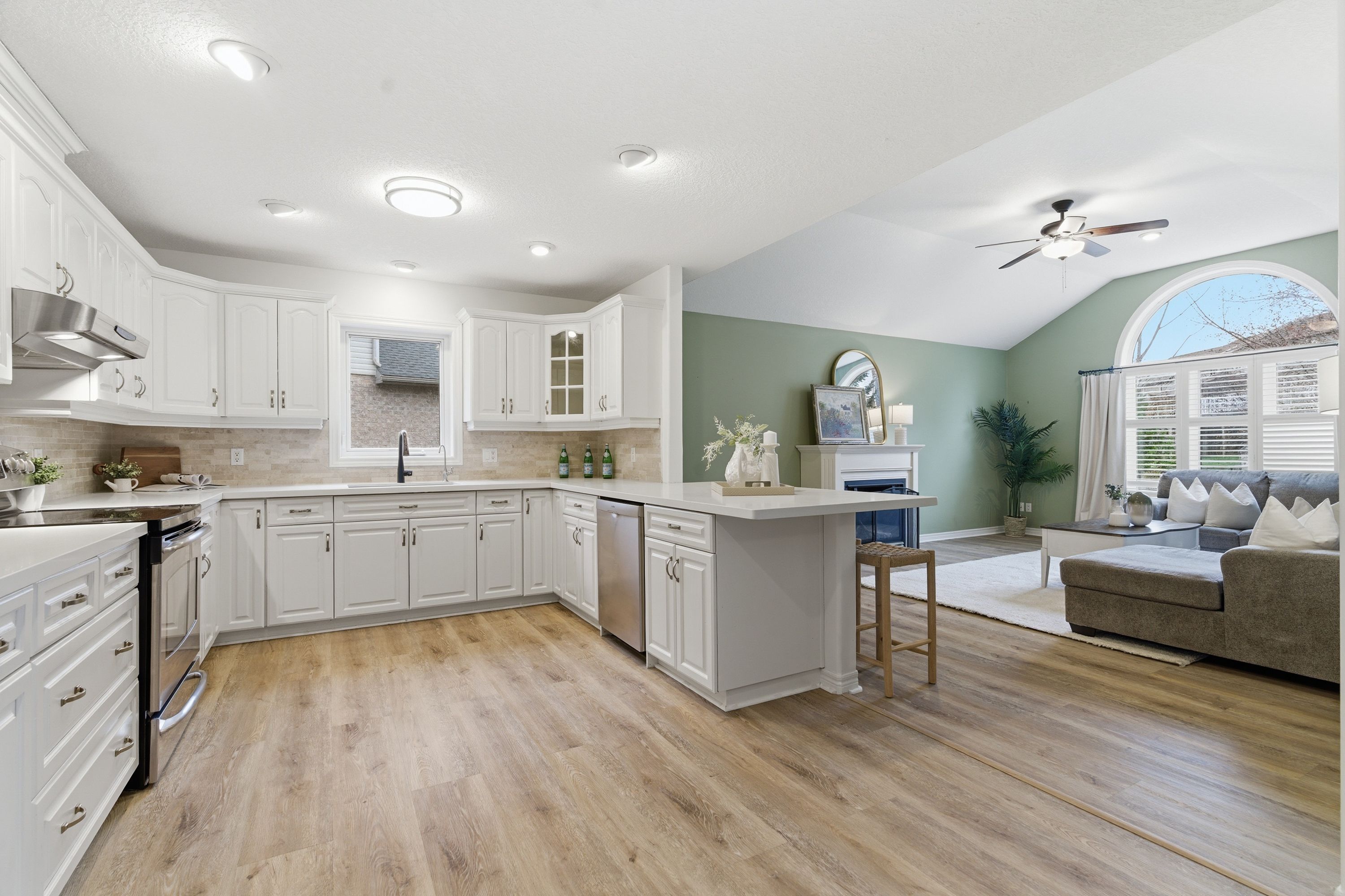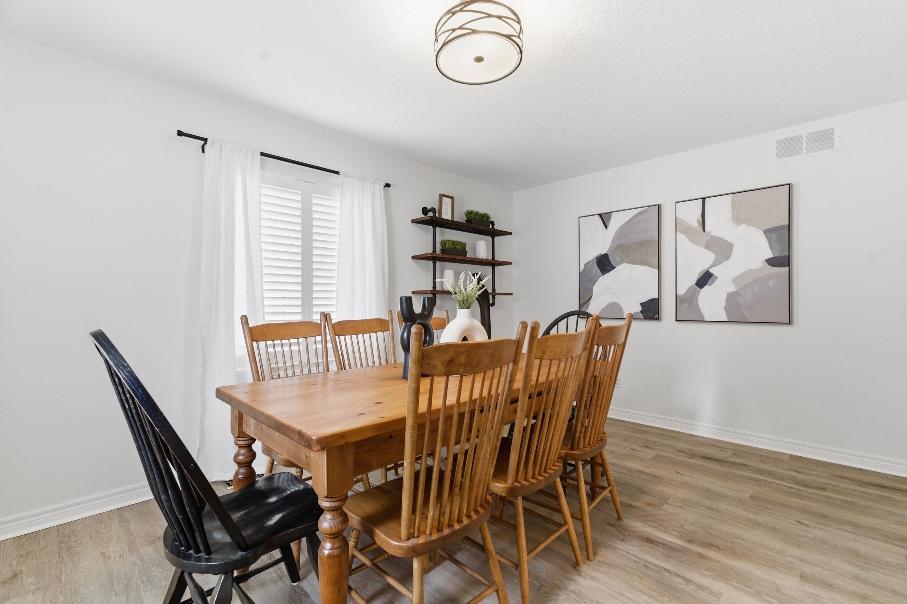 • Open-concept main level with updated flooring and stylish California shutters.