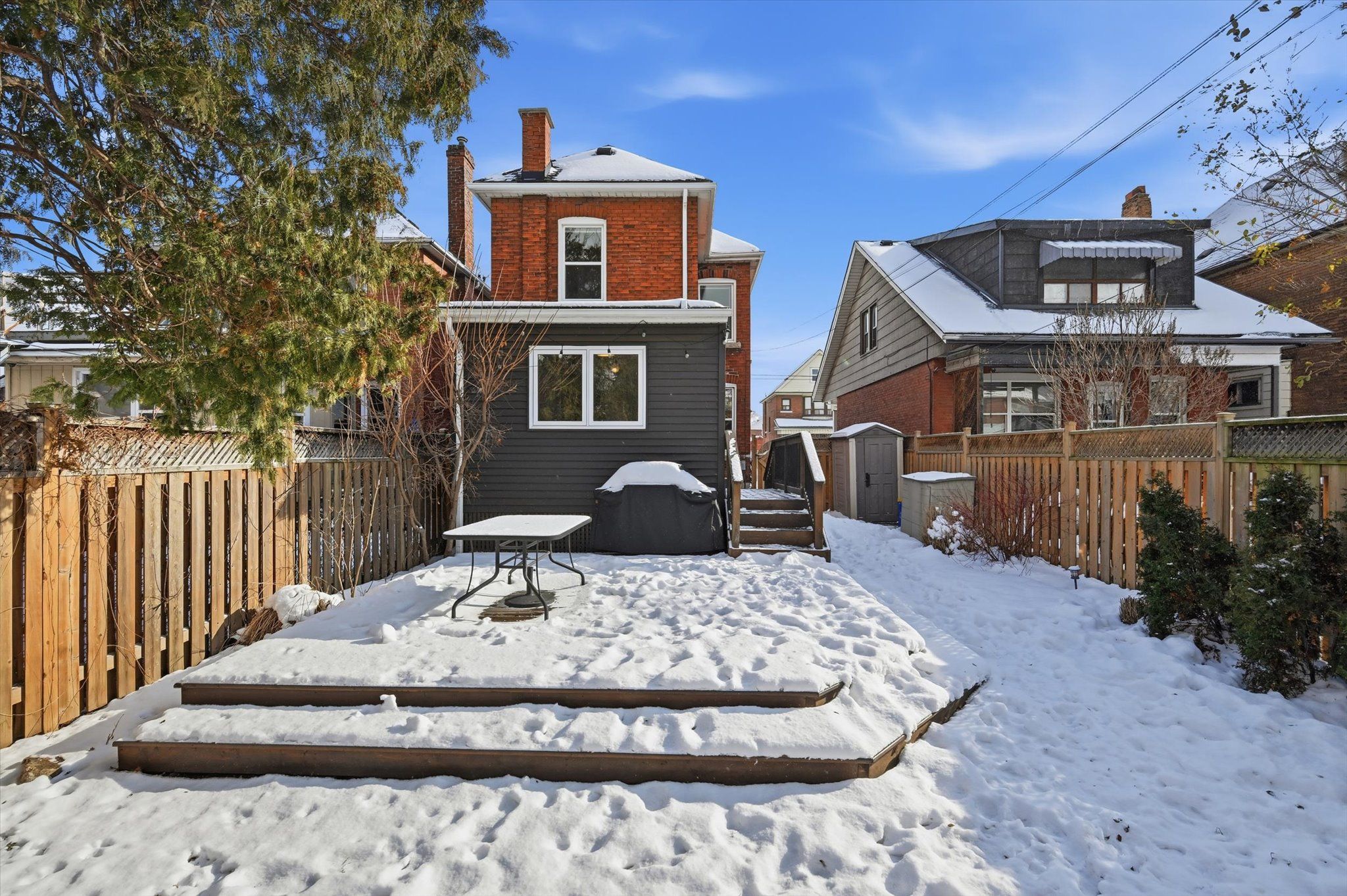 Welcome home! This beautifully renovated detached century home offers 3 bedrooms and 2 full bathrooms, thoughtfully updated from top to bottom, inside and out. Step onto the newly replaced front porch and into a bright, open living and dining area showcasing refinished hardwood floors, crown moulding, and a cozy electric fireplace that highlights the home's timeless charm and character. The white eat-in kitchen has been replaced and features quartz countertops, stainless steel appliances, and direct access to a generous bonus space; perfect as a mudroom and pantry. The private, fully fenced backyard is a true retreat, complete with a newly replaced upper porch and lower deck surrounded by mature trees. Upstairs, the spacious primary bedroom features a bay window and a large closet with built-in organizers. Two additional spacious bedrooms, all with refinished hardwood floors, and a beautifully renovated 4-piece bathroom complete the second level. The fully finished lower level adds exceptional value with a comfortable recreation room, laundry area, large storage room, and a full 3-piece bathroom, ideal for guests or extra living space. Extensive updates include a replaced roof and eaves, siding, exterior doors, windows, driveway, porches, air conditioning, lead water service replacement, and backflow valve. Located in the heart of downtown hamilton, this beautiful, bright and spacious turnkey home is within walking distance to gage park and close to hamilton go, vibrant restaurants, shopping, and quick access to the qew and red hill. A perfect opportunity to own in hamilton's growing and dynamic market, do not miss it!