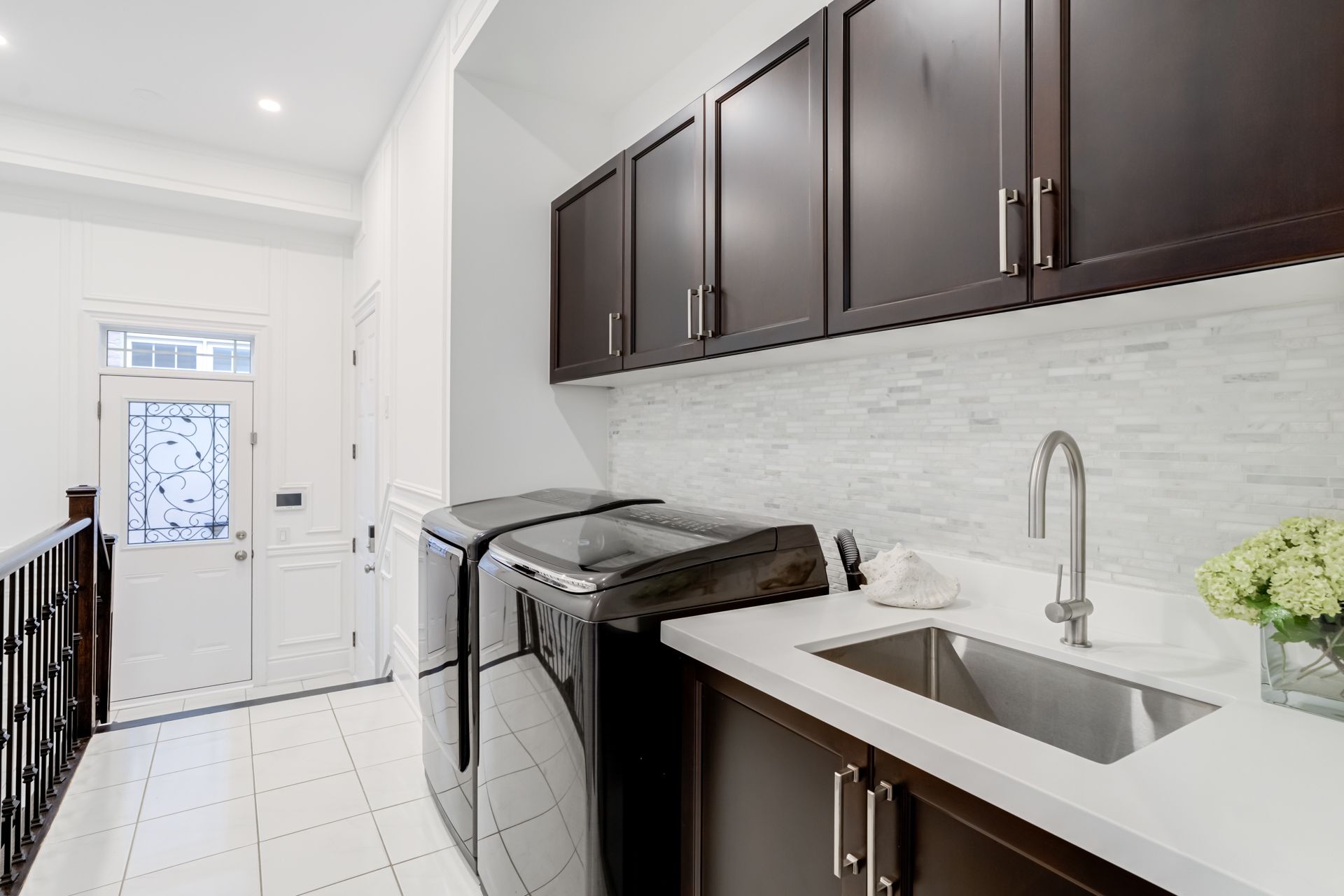 • Three-car tandem garage with new epoxy flooring and ample storage.