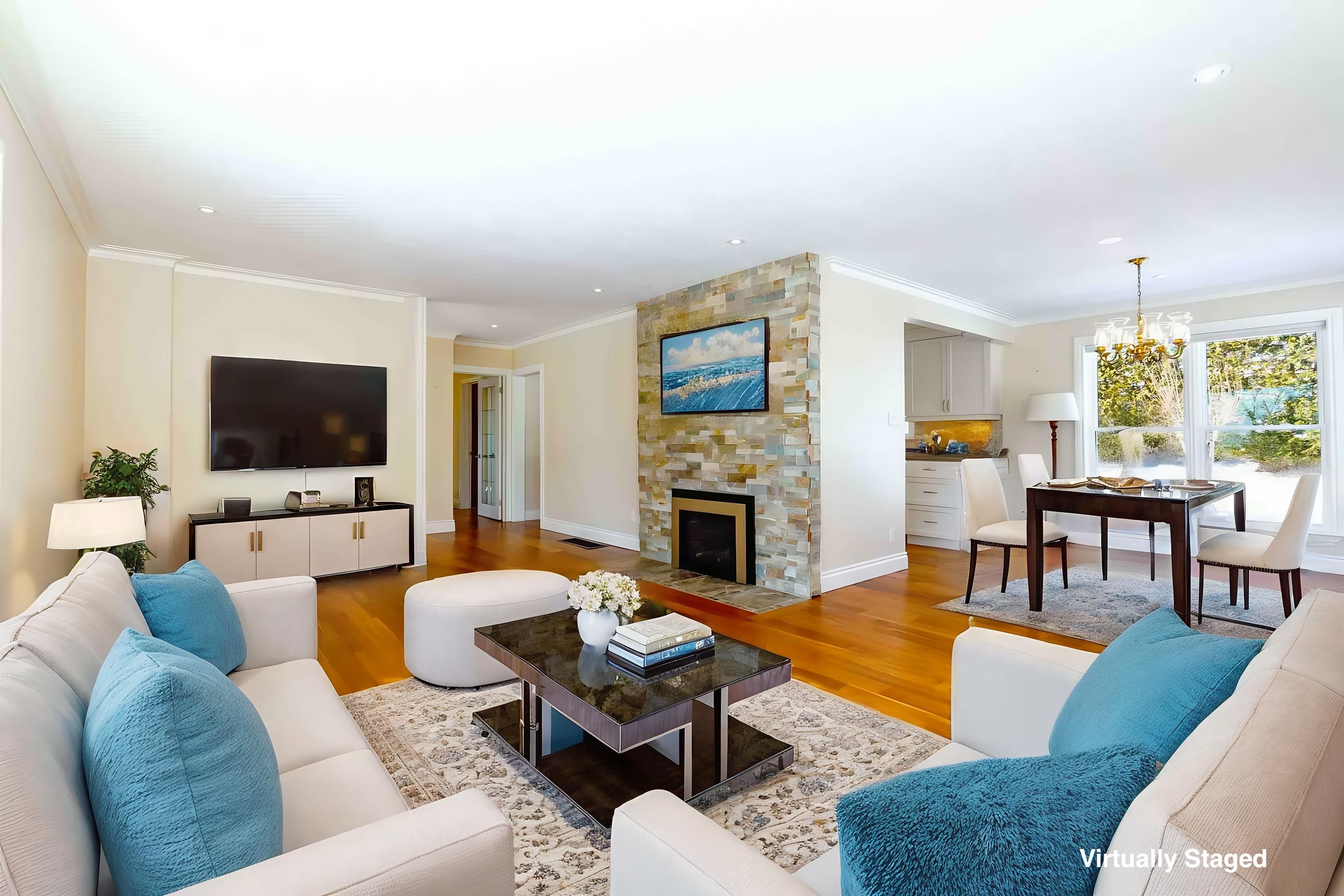 • Sun-filled living room featuring panoramic views and a cozy gas fireplace.