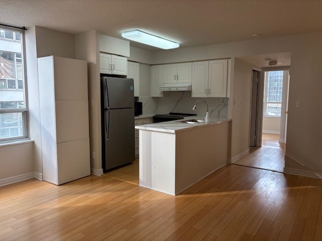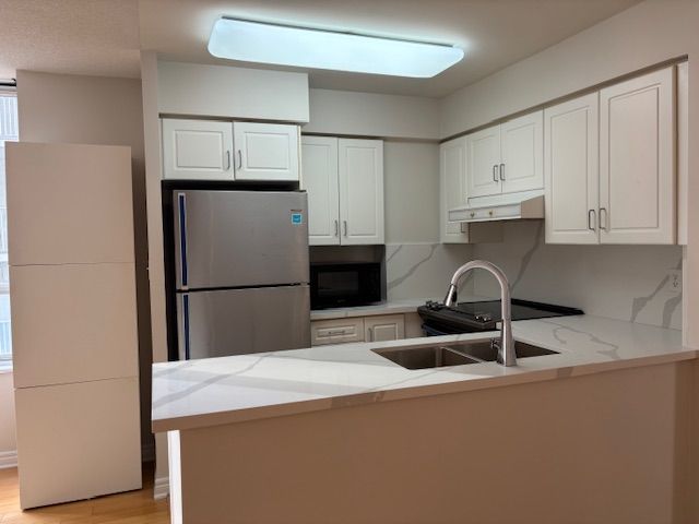 ** updated renovated unit.** very spacious and bright 2-bdrm corner unit at yonge/eglington, separate living and dining rooms, new appliances new fresh painting throughout, new quarte counter top and new quarte bathroom vanity & counter top. Open concept kitchen, bamboo floor throughout, steps to subway ,school, mall, restaurants and super markets, all utilities included heat, air conditioning and hydro, open balcony, floor to ceiling windows in bdrms, 24-hr. Concierge, good school area, amenities include: exercise rm, golf driving cage, party rm and library.